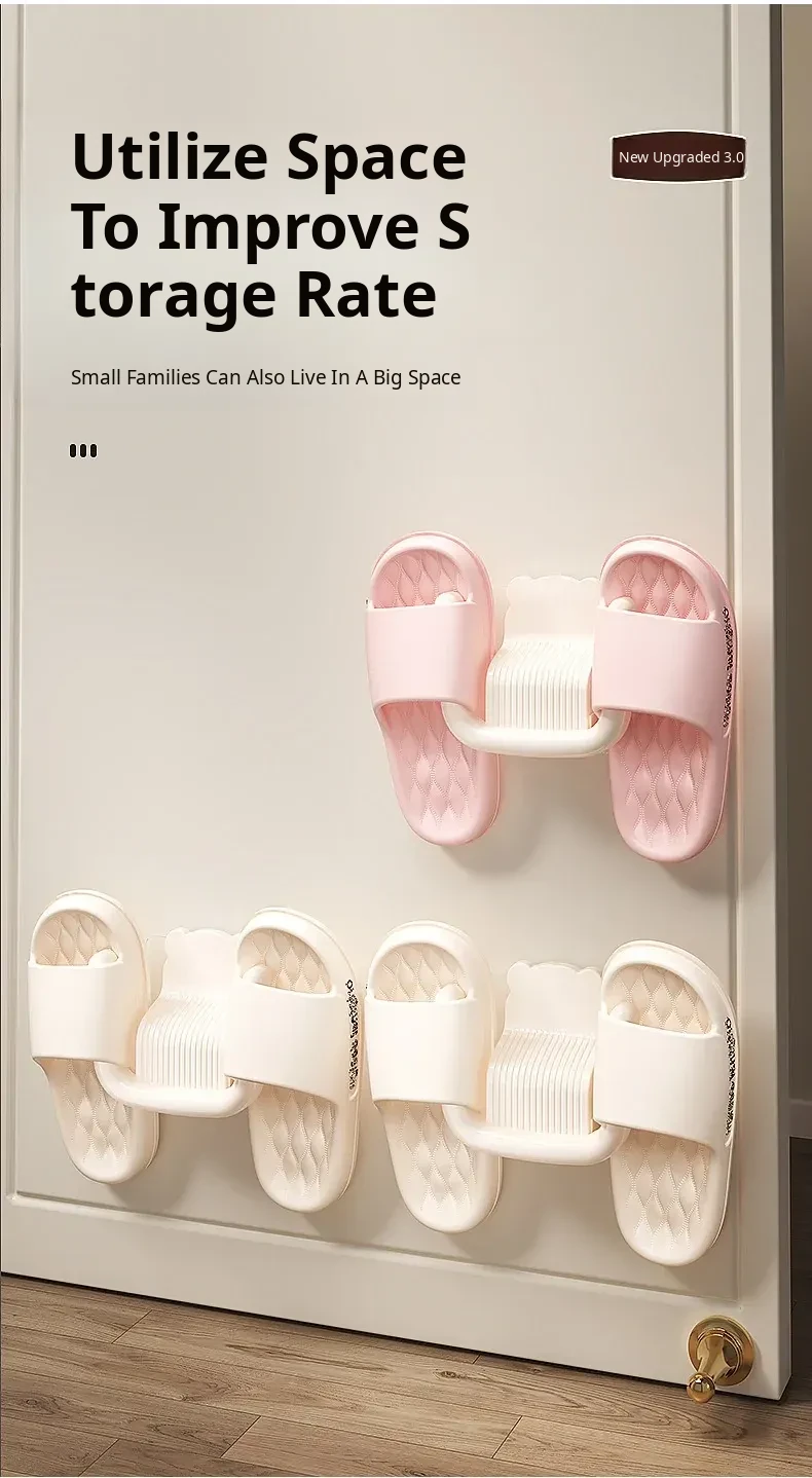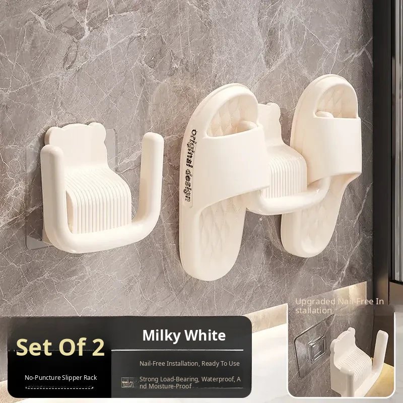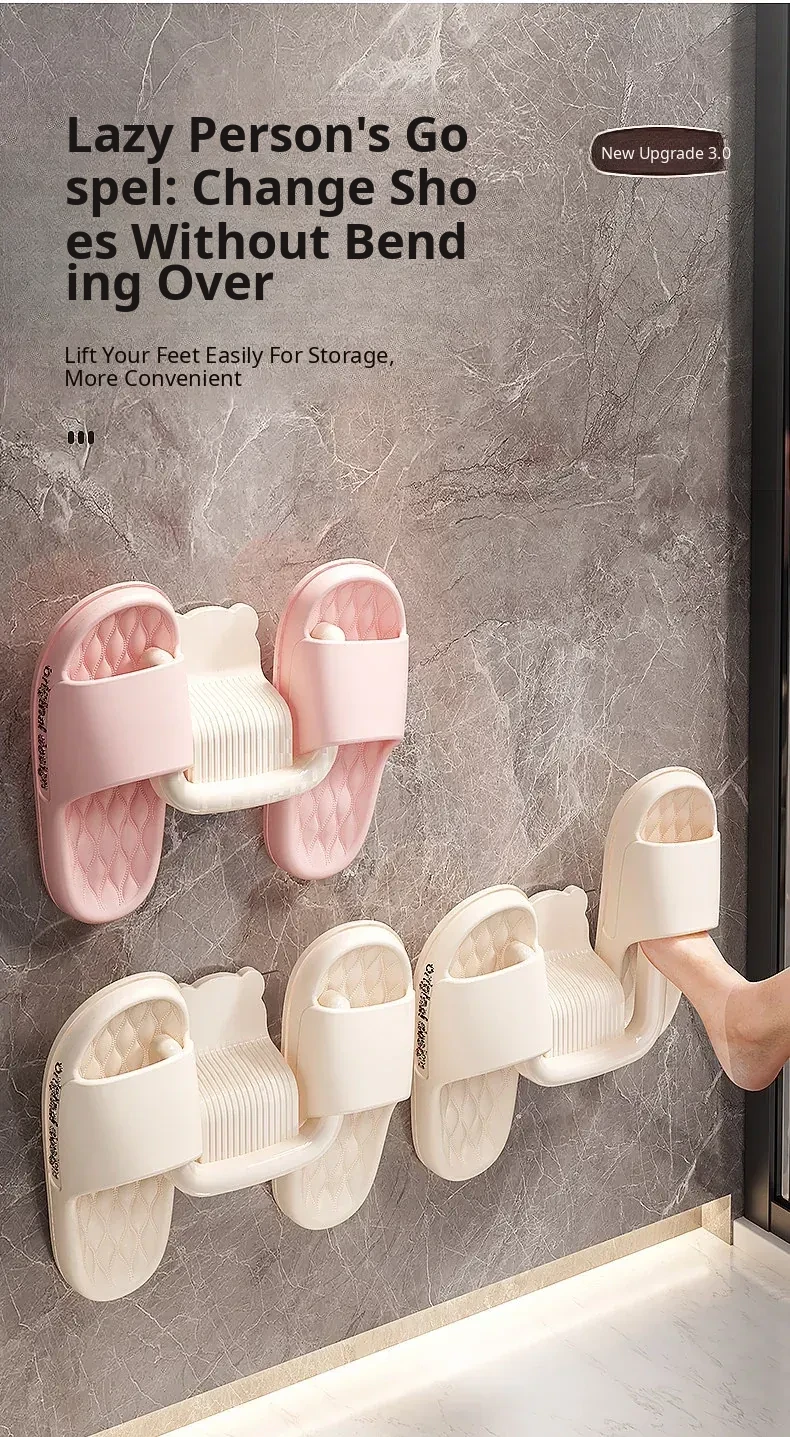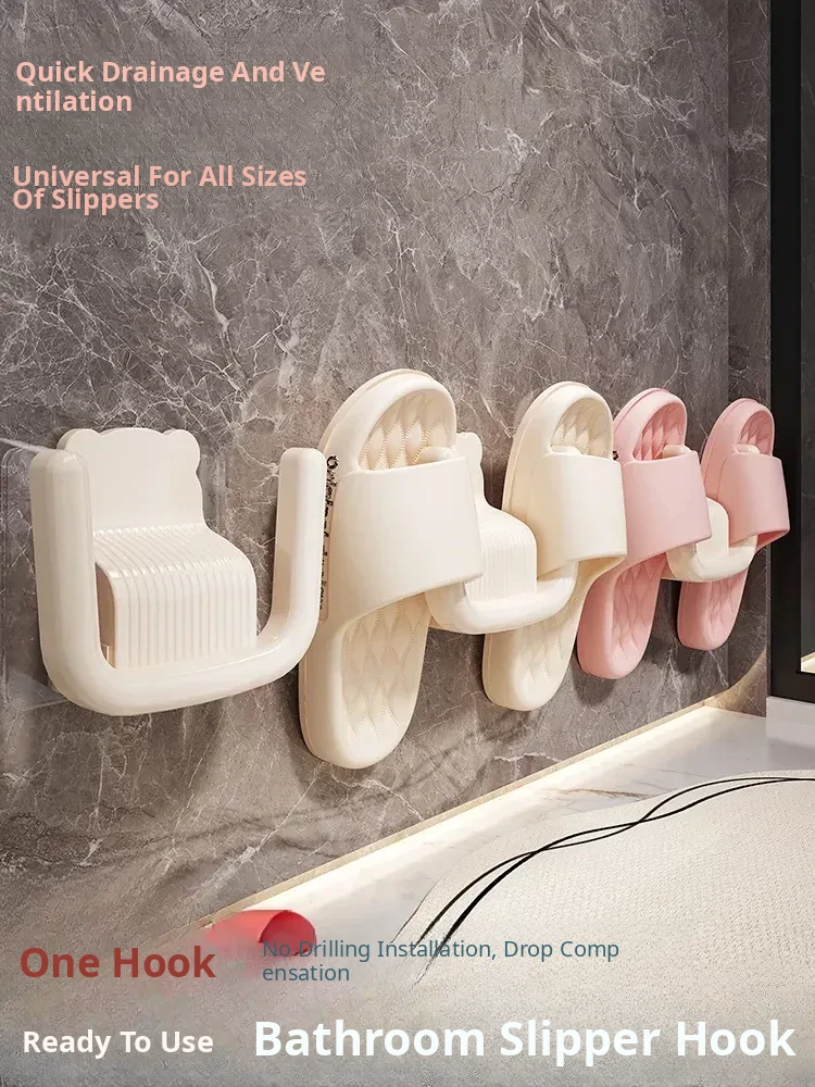 No-Drill Wall-Mounted Bathroom Slipper Rack - Space-Saving Shoe Storage for Behind Door, Waterproof Hanging Hooks for Wet Slippers, Perfect for Organizing Your Bathroom!