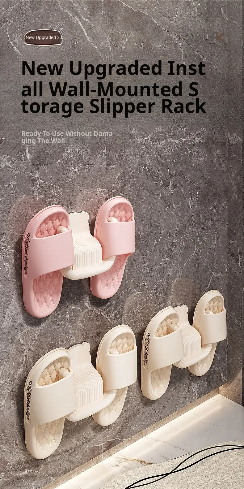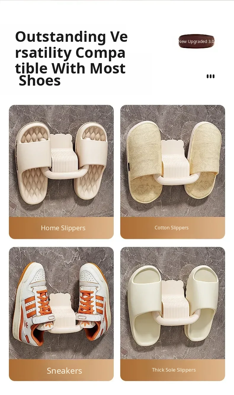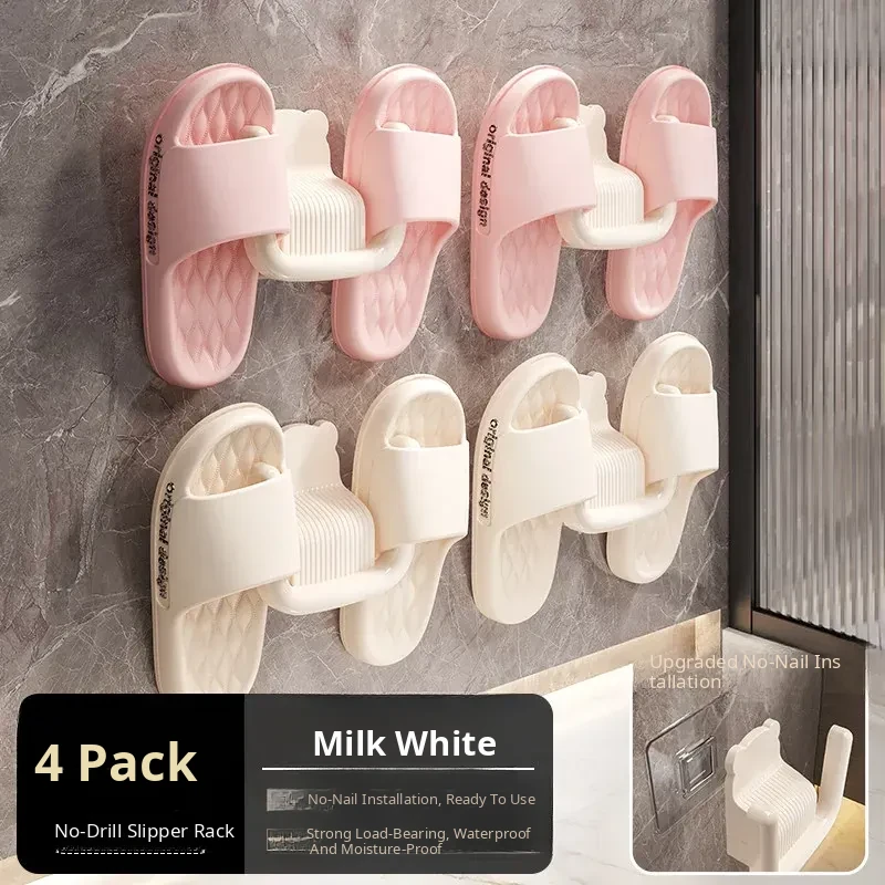 No-Drill Wall-Mounted Bathroom Slipper Rack - Space-Saving Shoe Storage for Behind Door, Waterproof Hanging Hooks for Wet Slippers, Perfect for Organizing Your Bathroom!