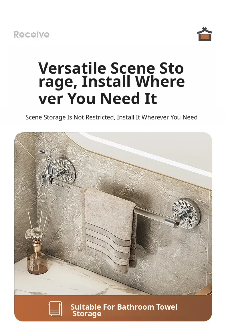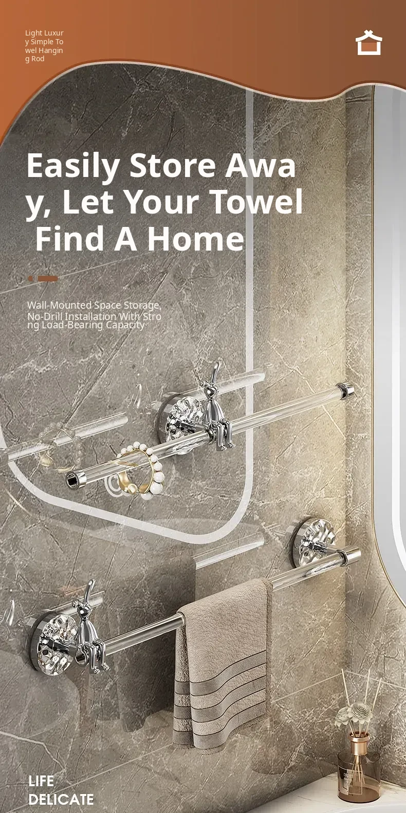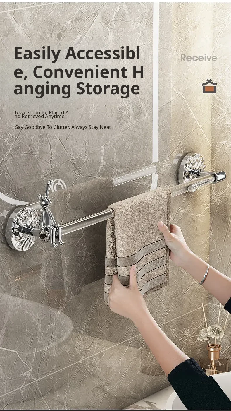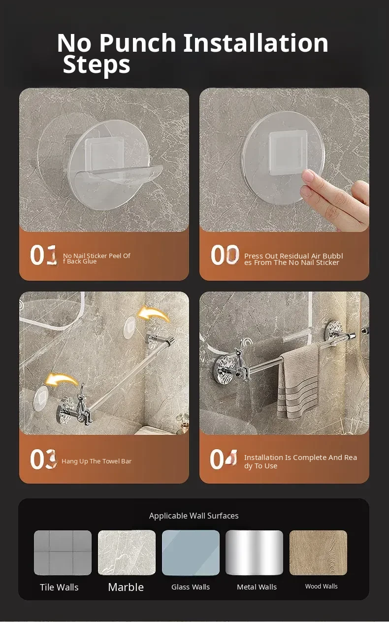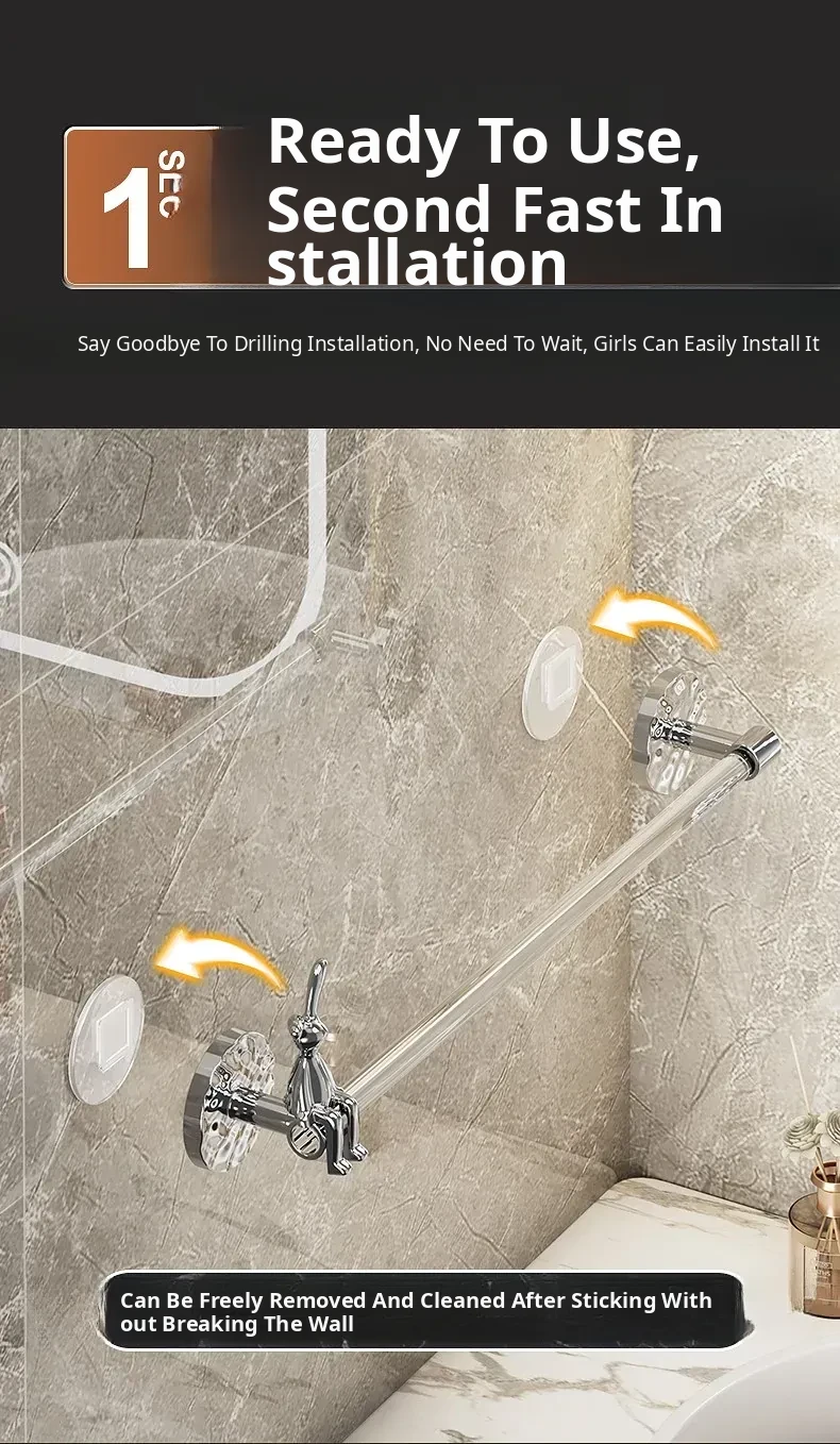No-Drill Wall-Mounted Bathroom Towel Rack - Elegant Space-Saving Towel Holder for Bath Towels and Essentials - Perfect for Modern Bathrooms and Toilets