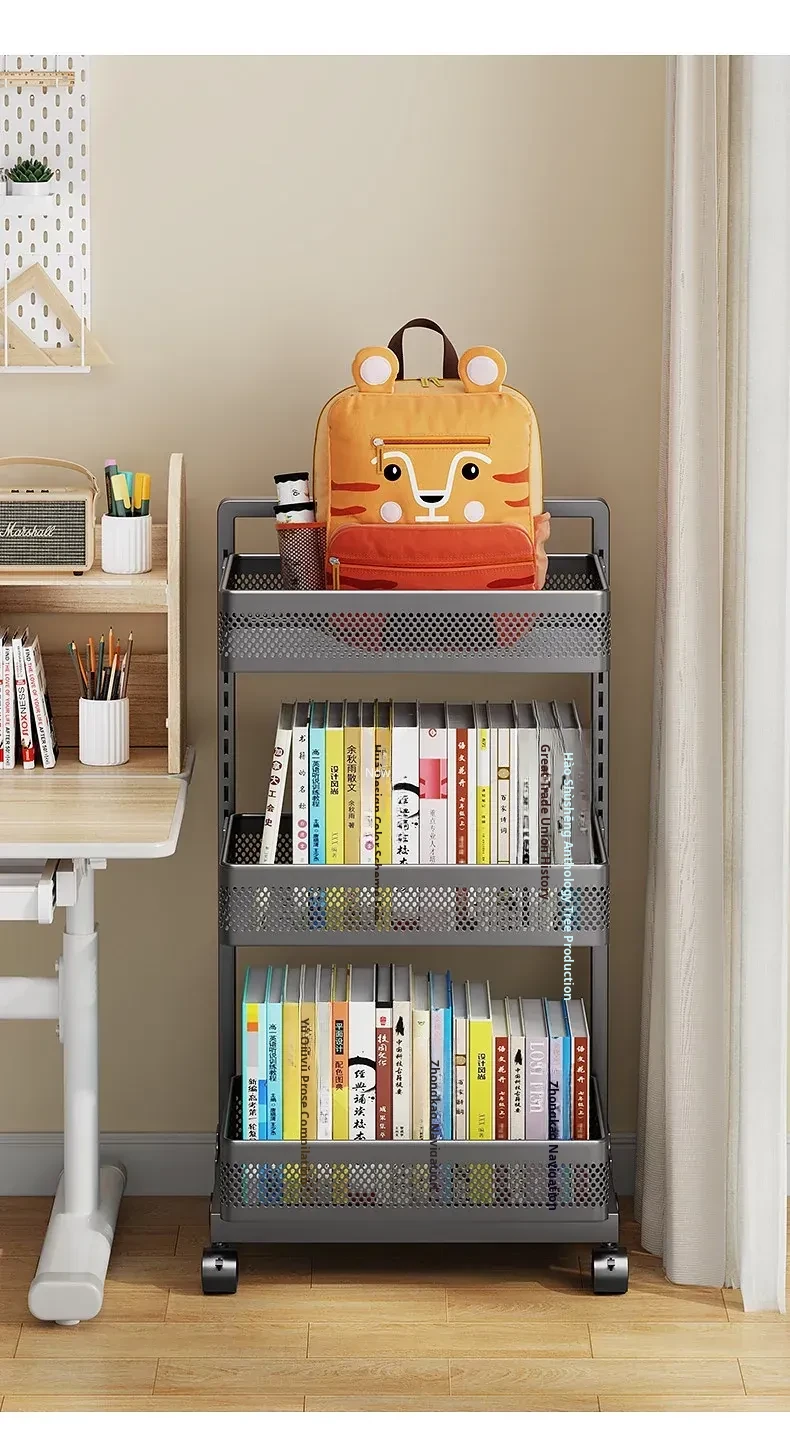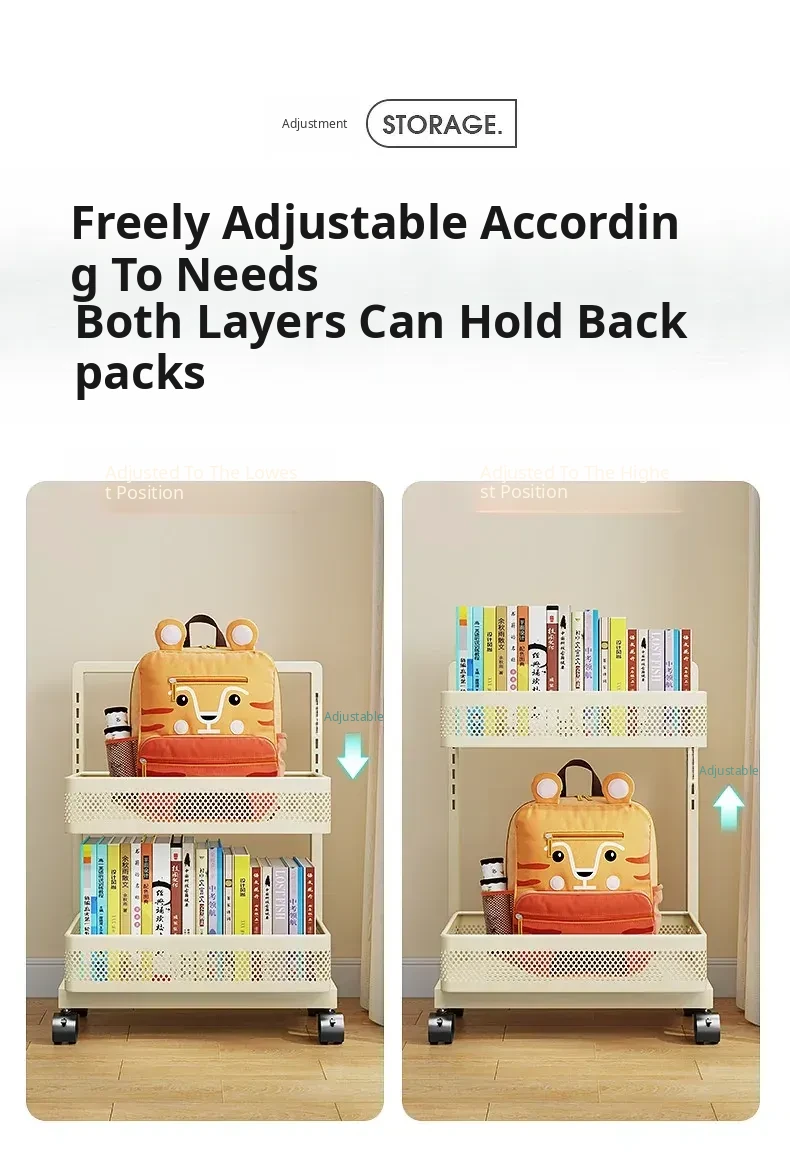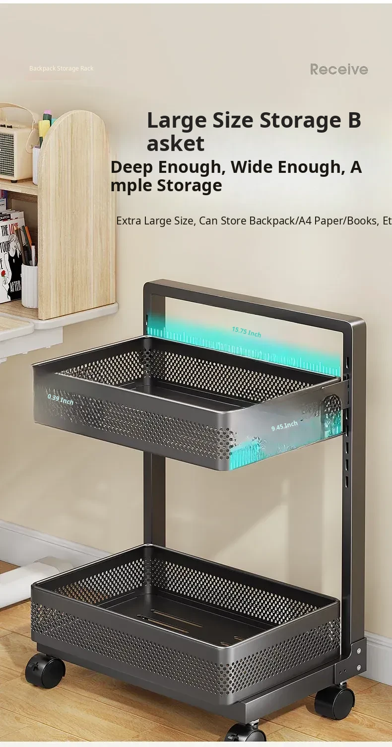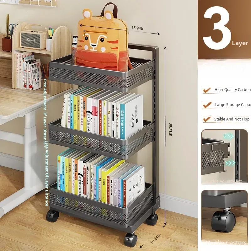 Portable Multi-Layer Bookshelf Trolley - Mobile Storage Rack for Books, Perfect Under-Desk Organizer for Students' Backpacks and Supplies
