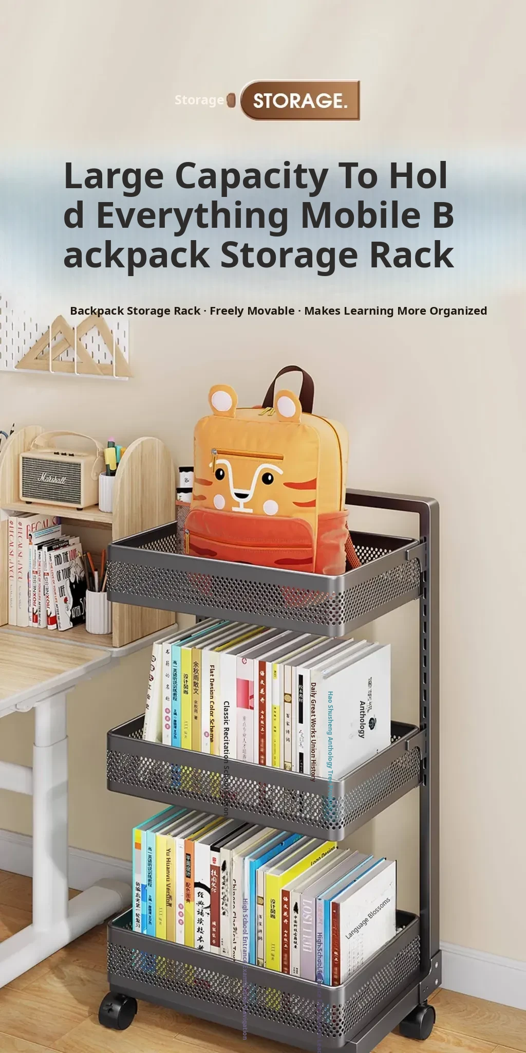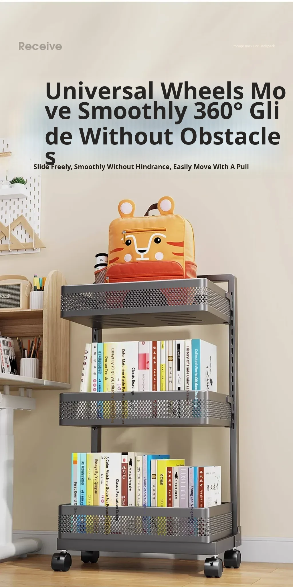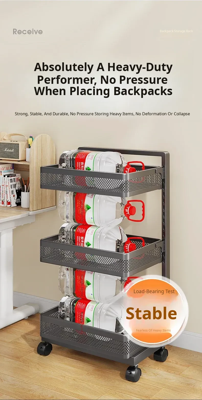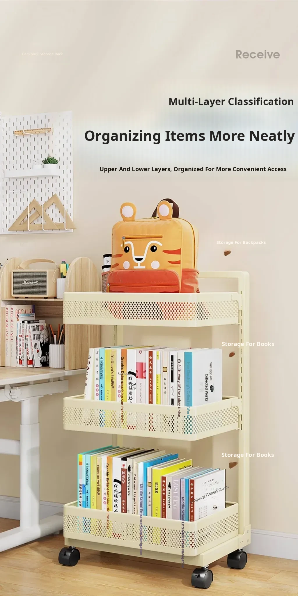 Portable Multi-Layer Bookshelf Trolley - Mobile Storage Rack for Books, Perfect Under-Desk Organizer for Students' Backpacks and Supplies