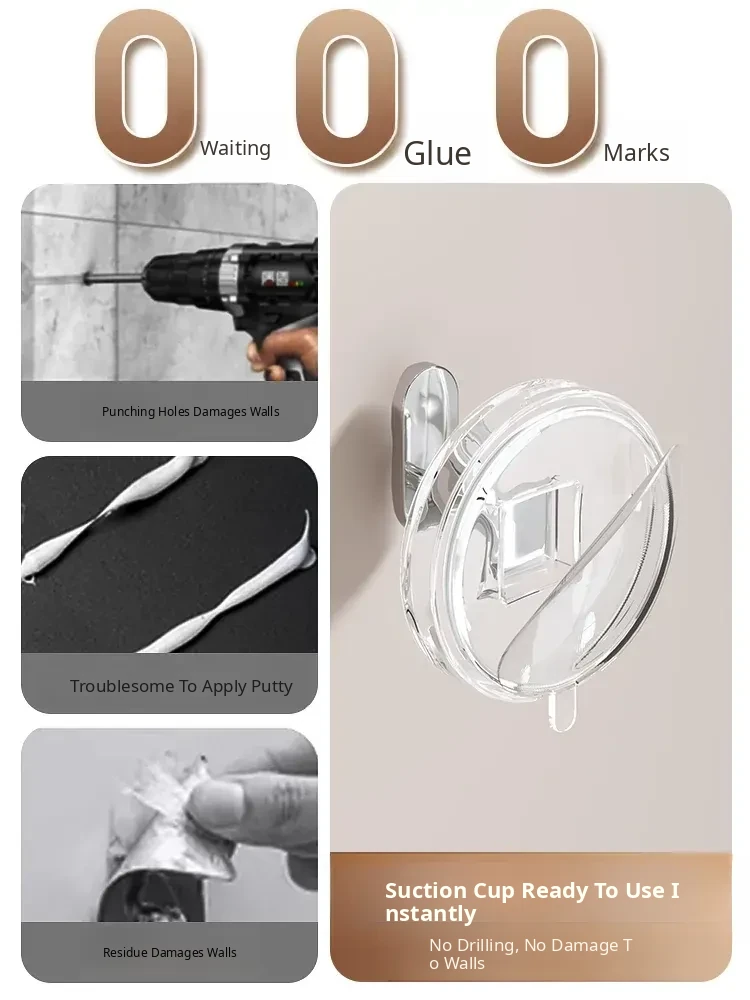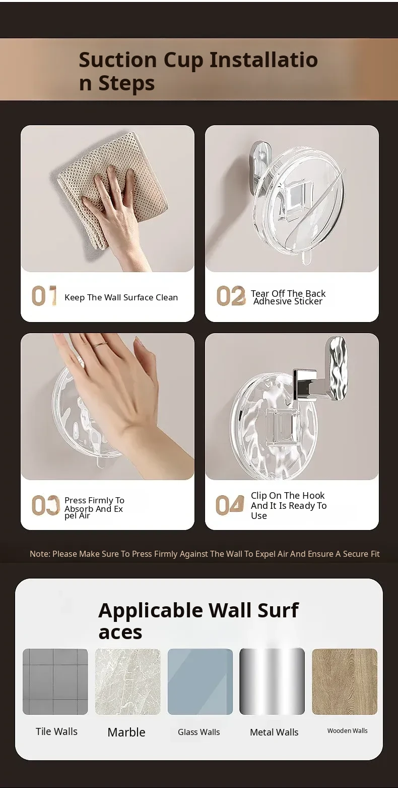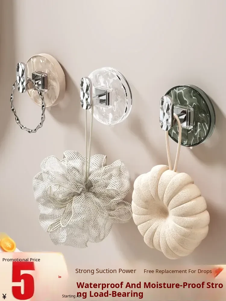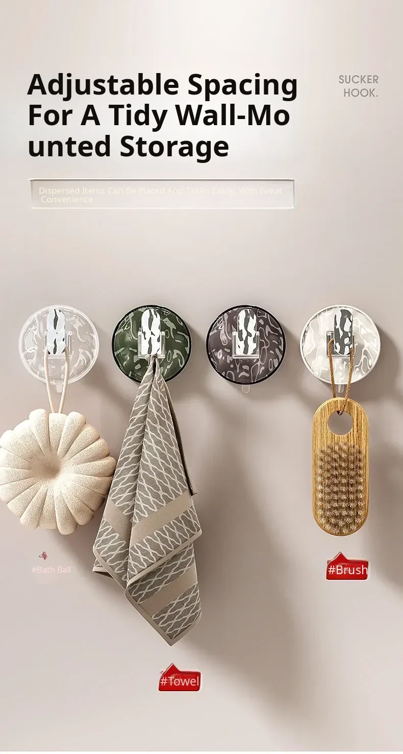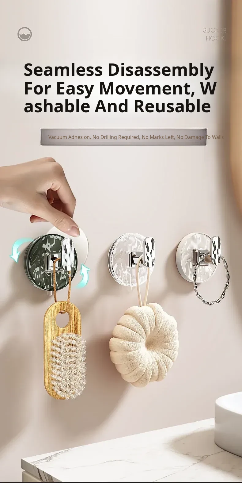 Powerful Suction Cup Hooks - No Drill, Heavy-Duty Adhesive Wall Hooks for Bathroom and Toilet - Damage-Free Towel Holders for Walls and Doors