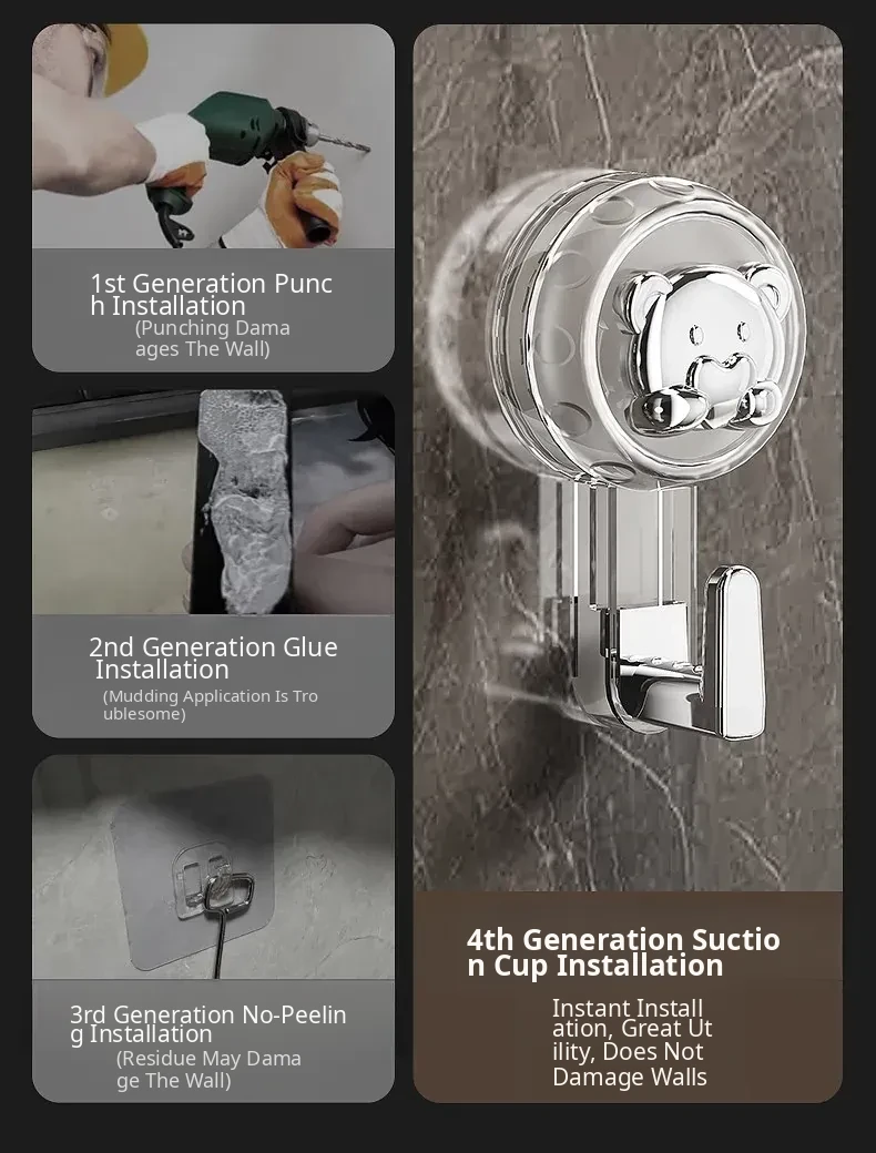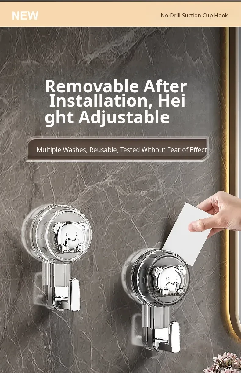 Powerful Suction Hooks - No Drill, No Damage! Strong Adhesive Wall Hooks for Kitchen and Bathroom - Vacuum-Sealed, Zero Trace Towel Adhesive Hooks