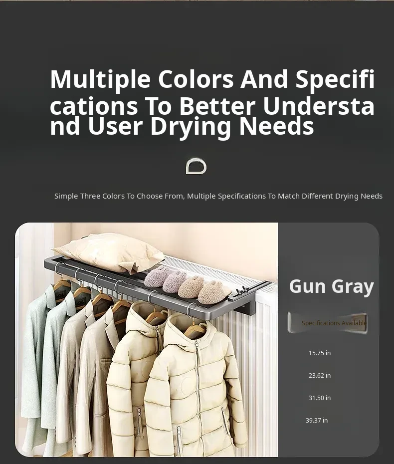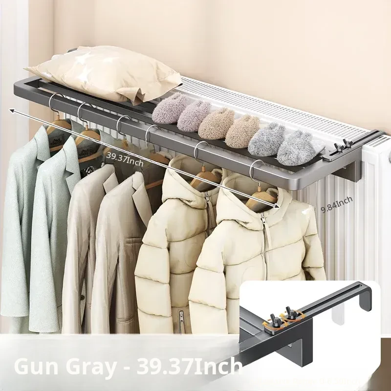 Gun Ash [39.37in Clothes Drying Rack] Suitable for Radiators with a Thickness ≤ 6.30in