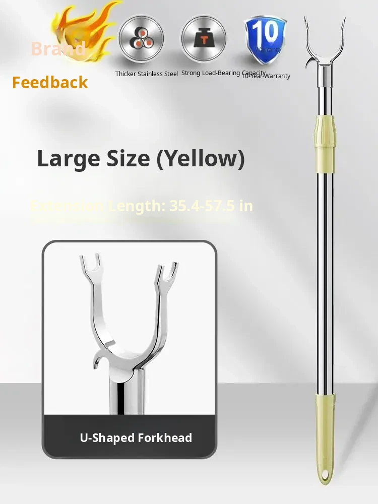[Yellow Long Style] Aluminum Alloy Clothes Pole [Retractable 35.43in-57.48in]
