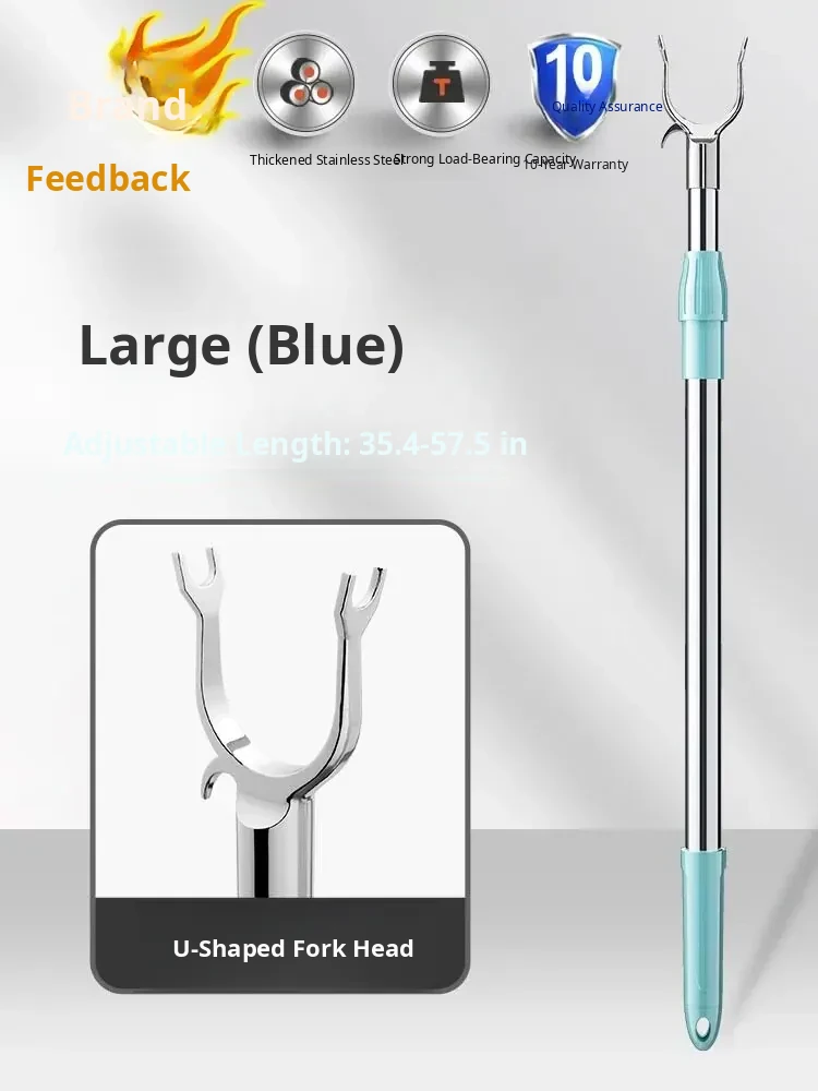 [Blue Long Style] Aluminum Alloy Clothes Pole [Retractable 35.43in-57.48in]