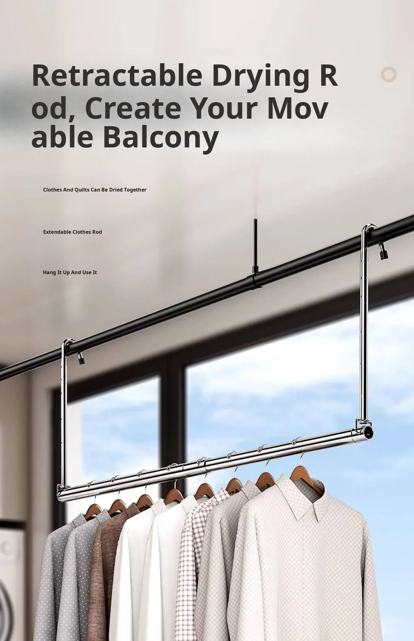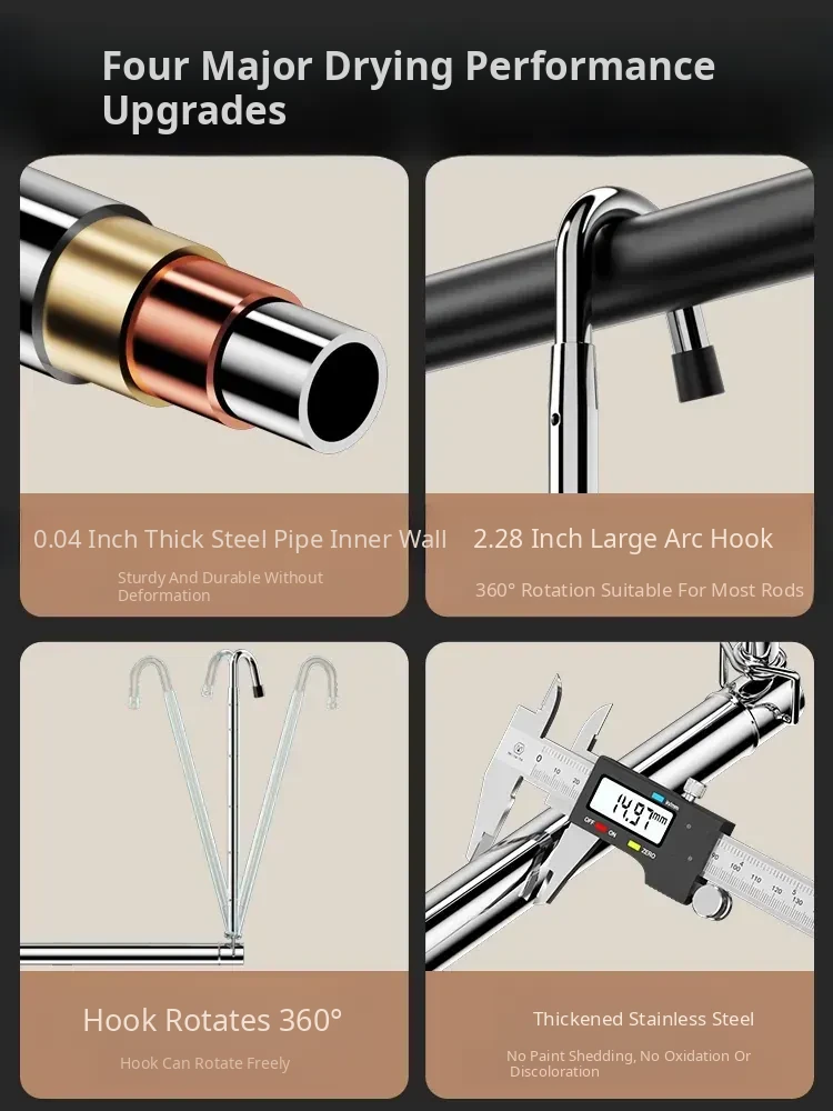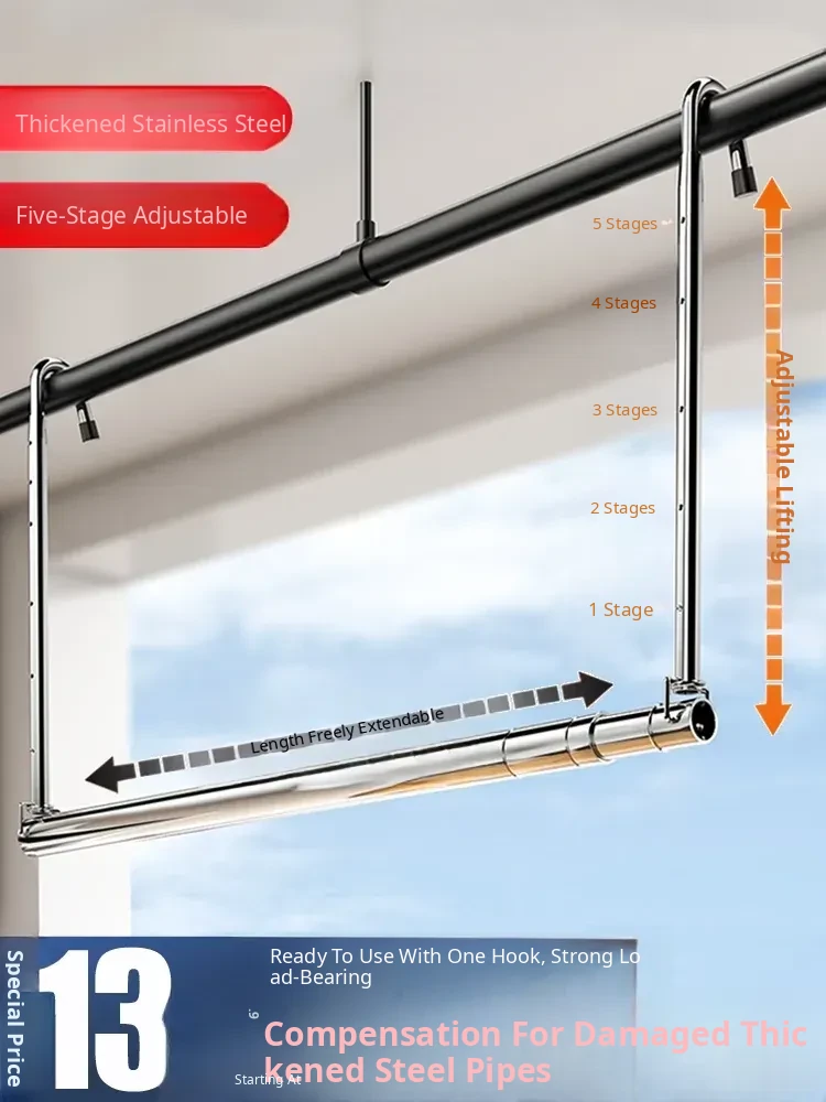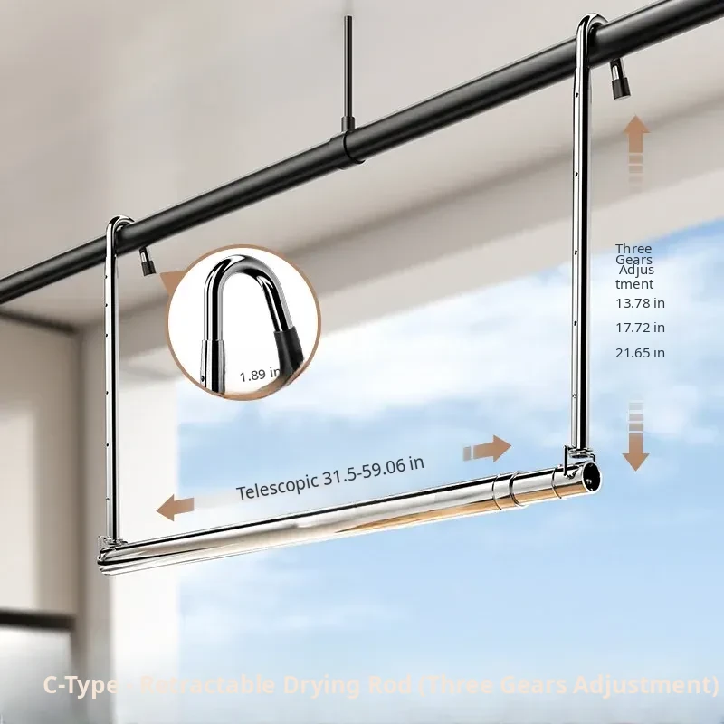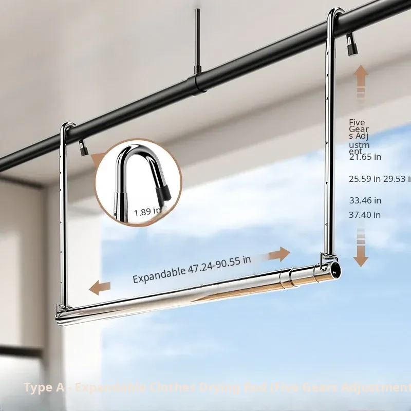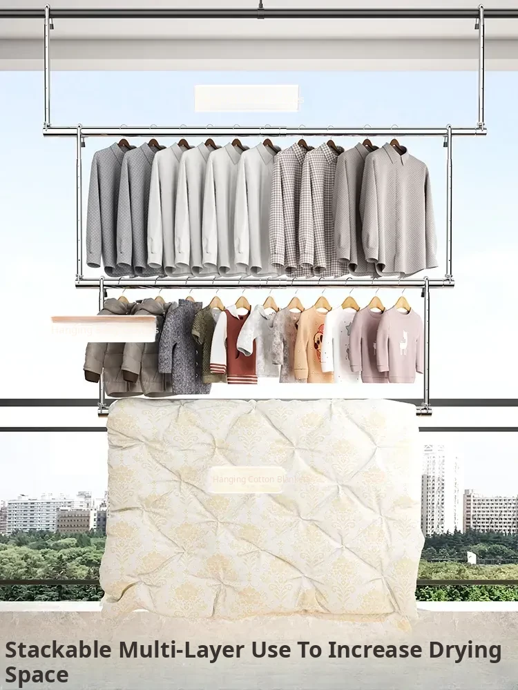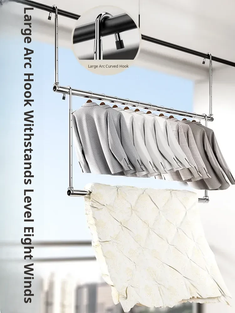 Retractable Stainless Steel Clothes Drying Rack for Home Balcony - No Drill, Liftable Design Perfect for Hanging Blankets and Laundry