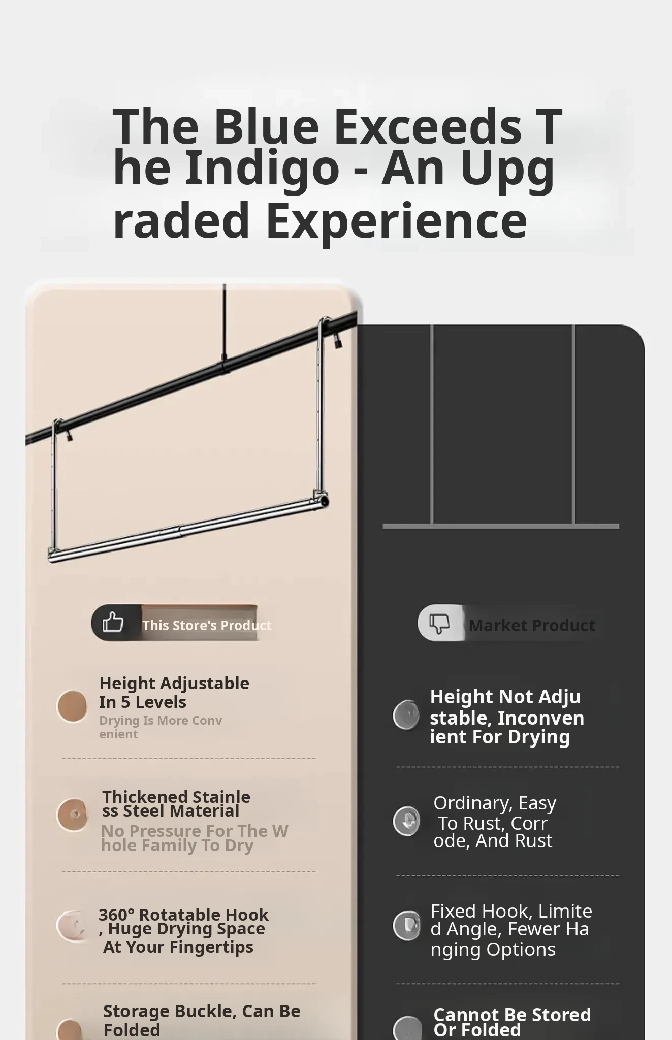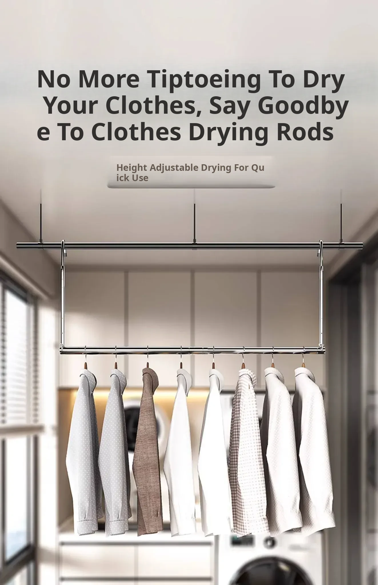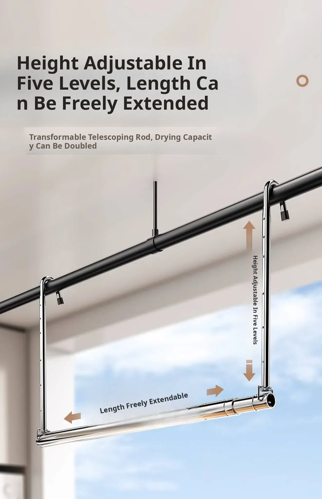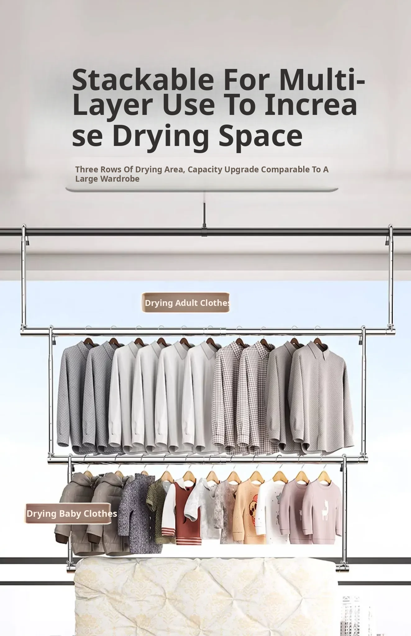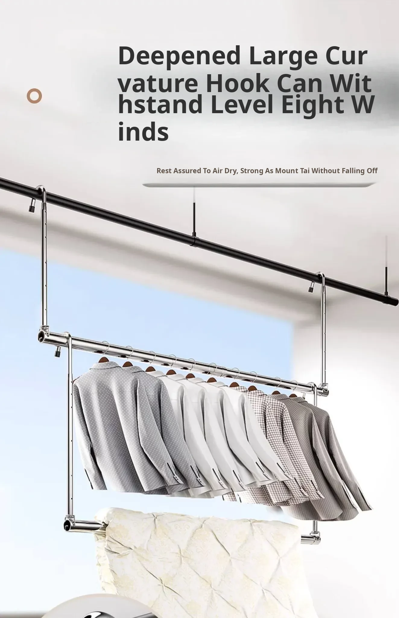 Retractable Stainless Steel Clothes Drying Rack for Home Balcony - No Drill, Liftable Design Perfect for Hanging Blankets and Laundry