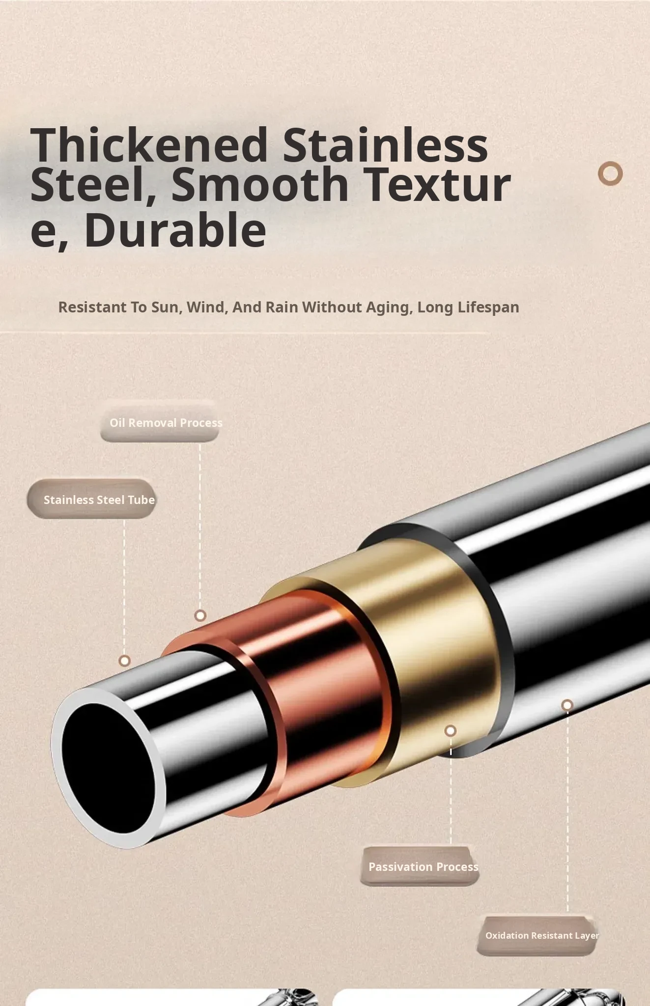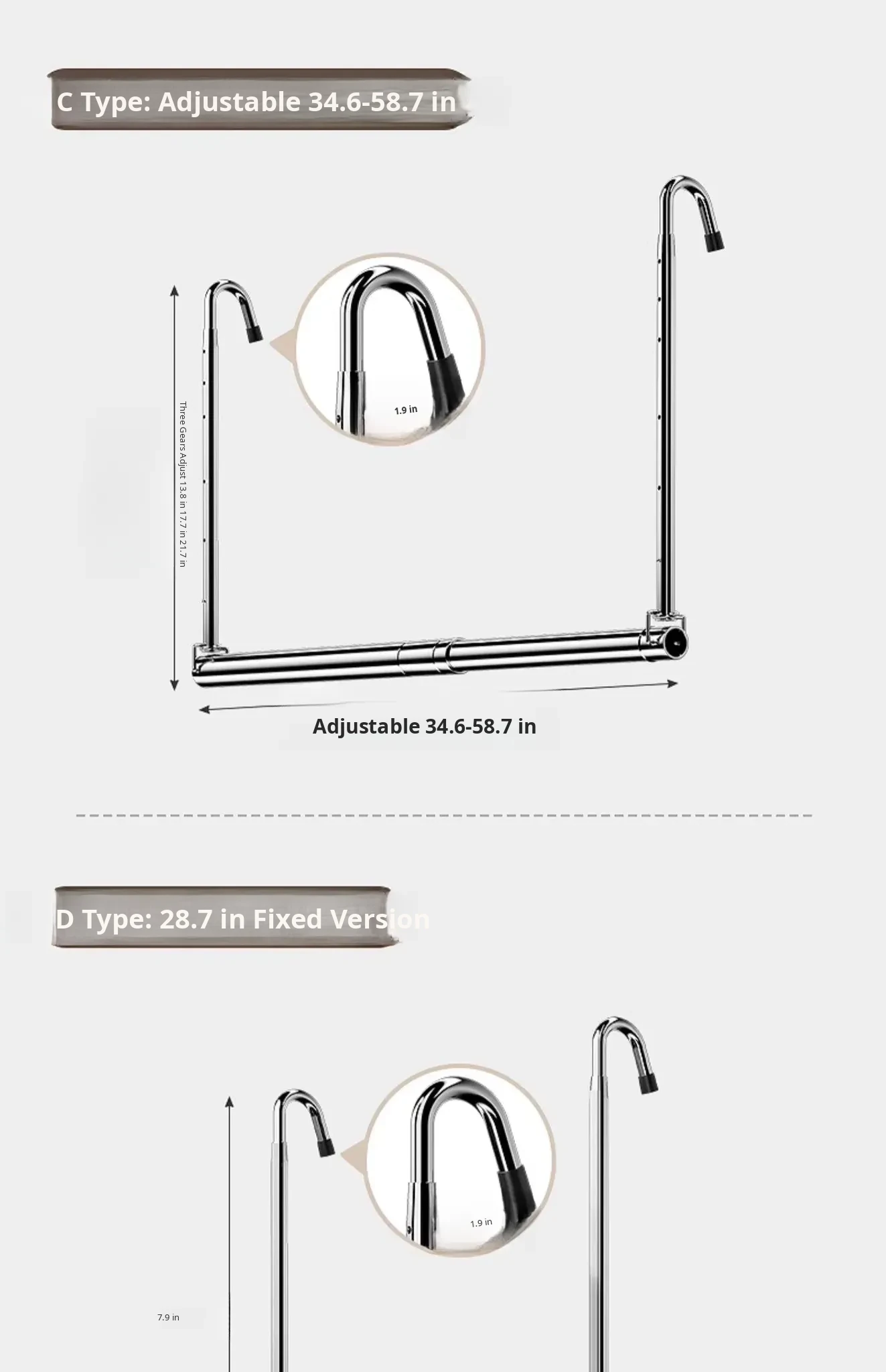 [Three-Speed Adjustment] Retractable 34.65in-58.66in [Thickened and Bold Stainless Steel]