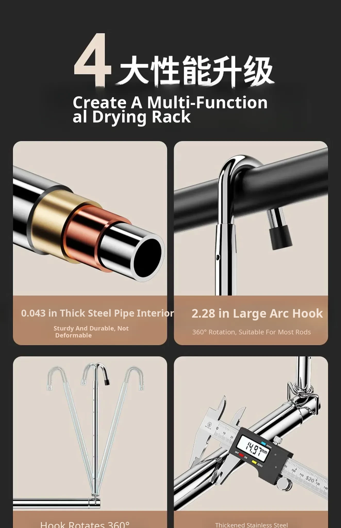 [Four-Speed Adjustment] Retractable 40.55in-74.41in [Thickened and Bold Stainless Steel]