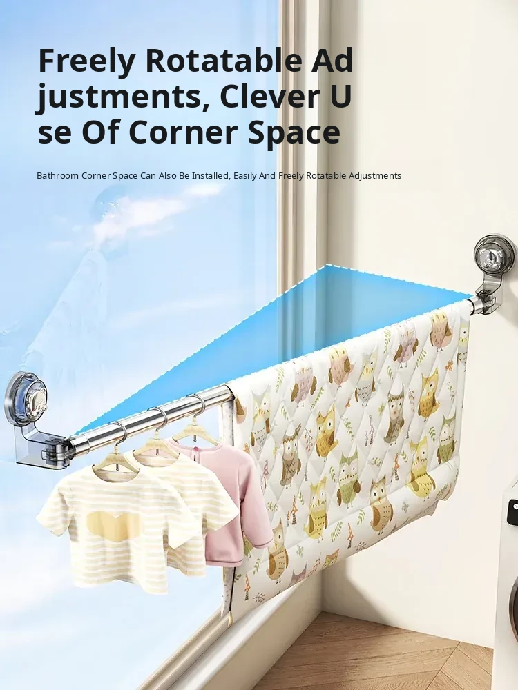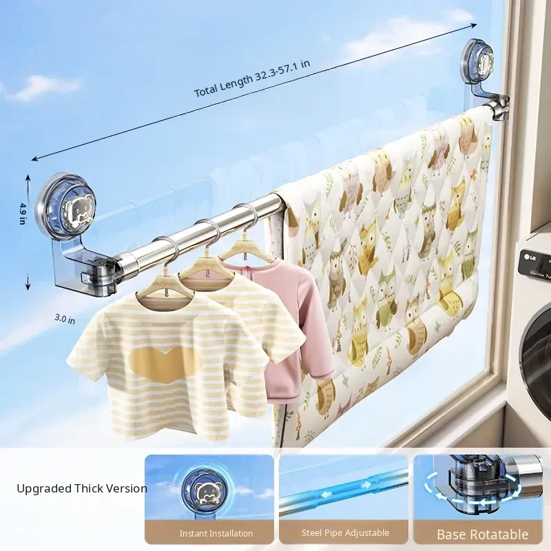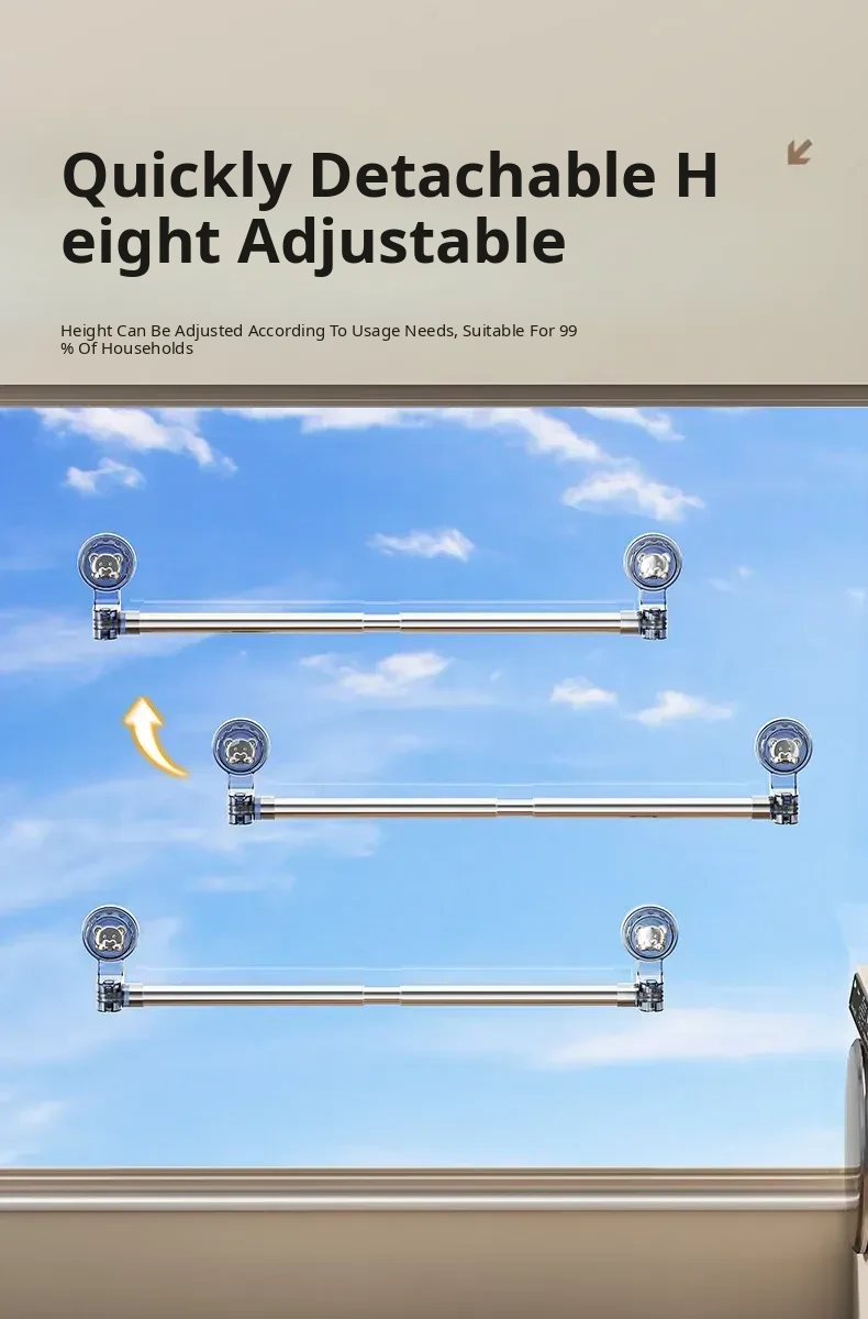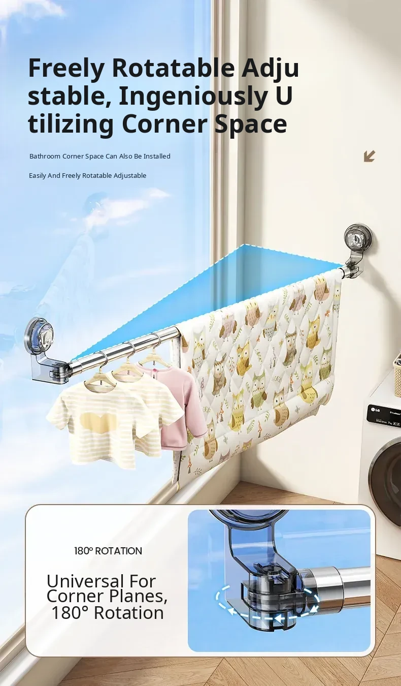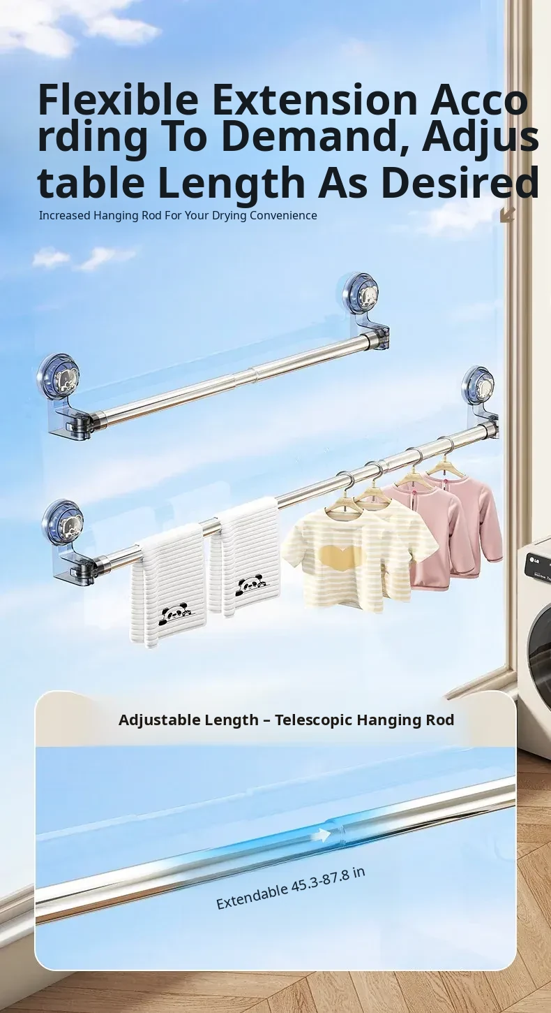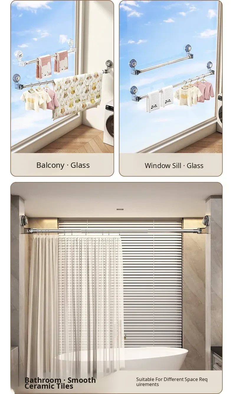 Retractable Suction Clothes Drying Rack – No Drilling Required, Perfect for Balconies and Indoor Use, Hang Bedding and Clothes Effortlessly!
