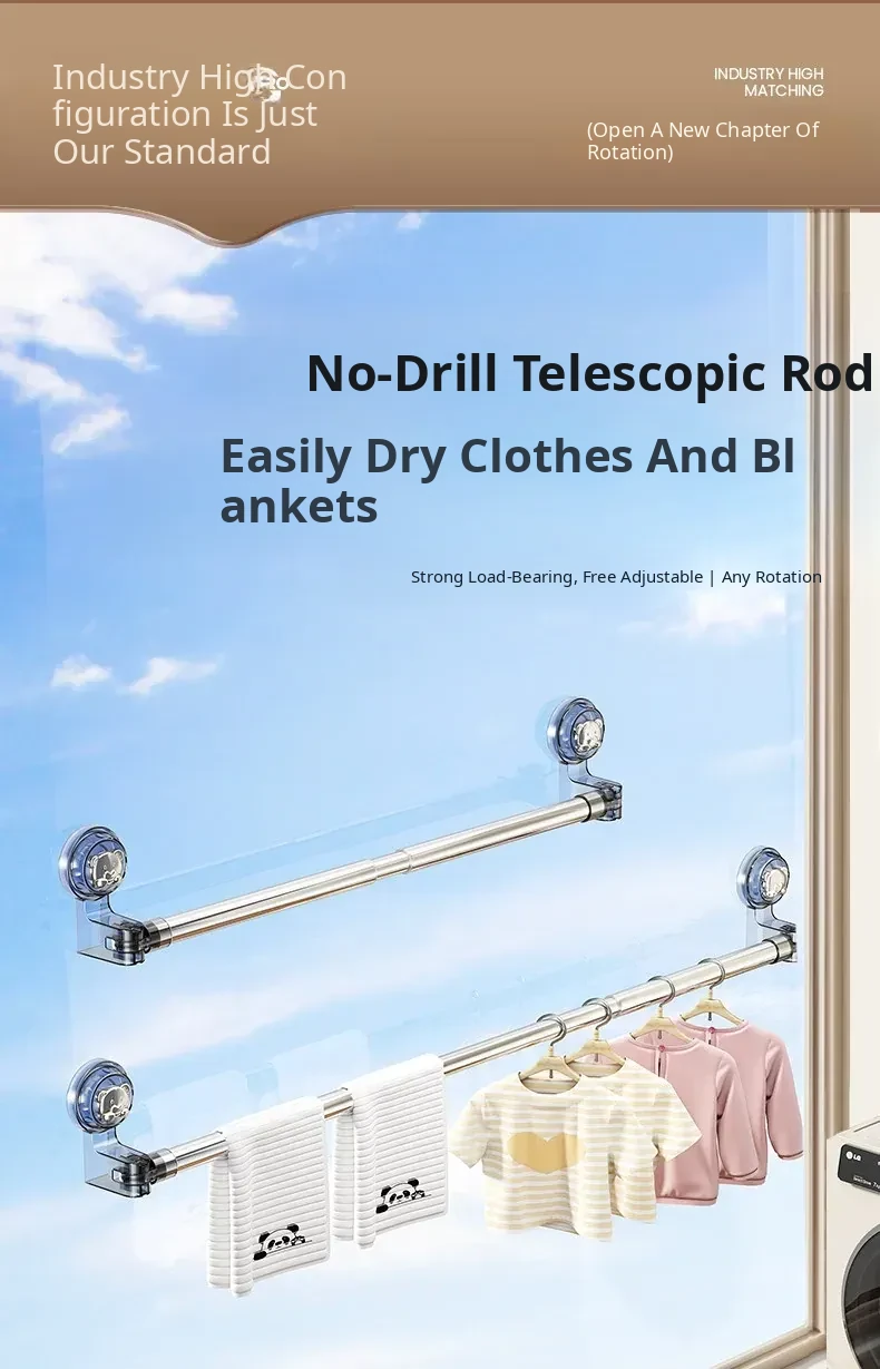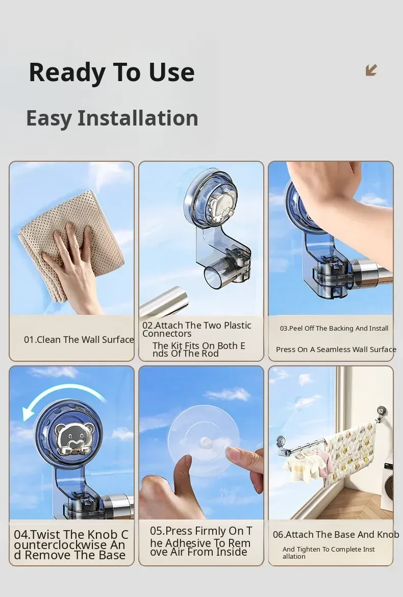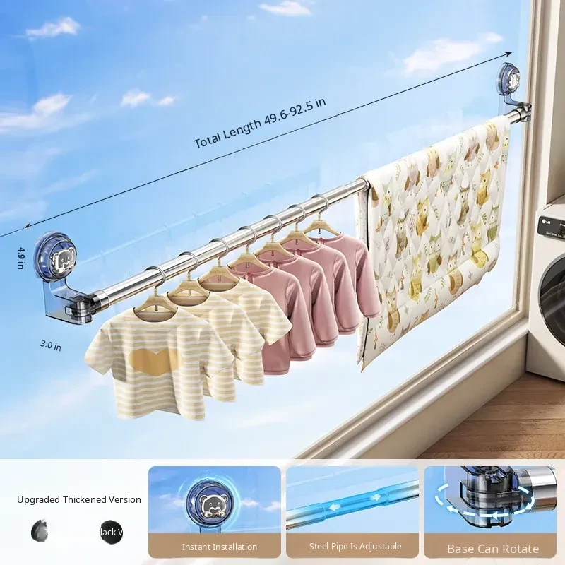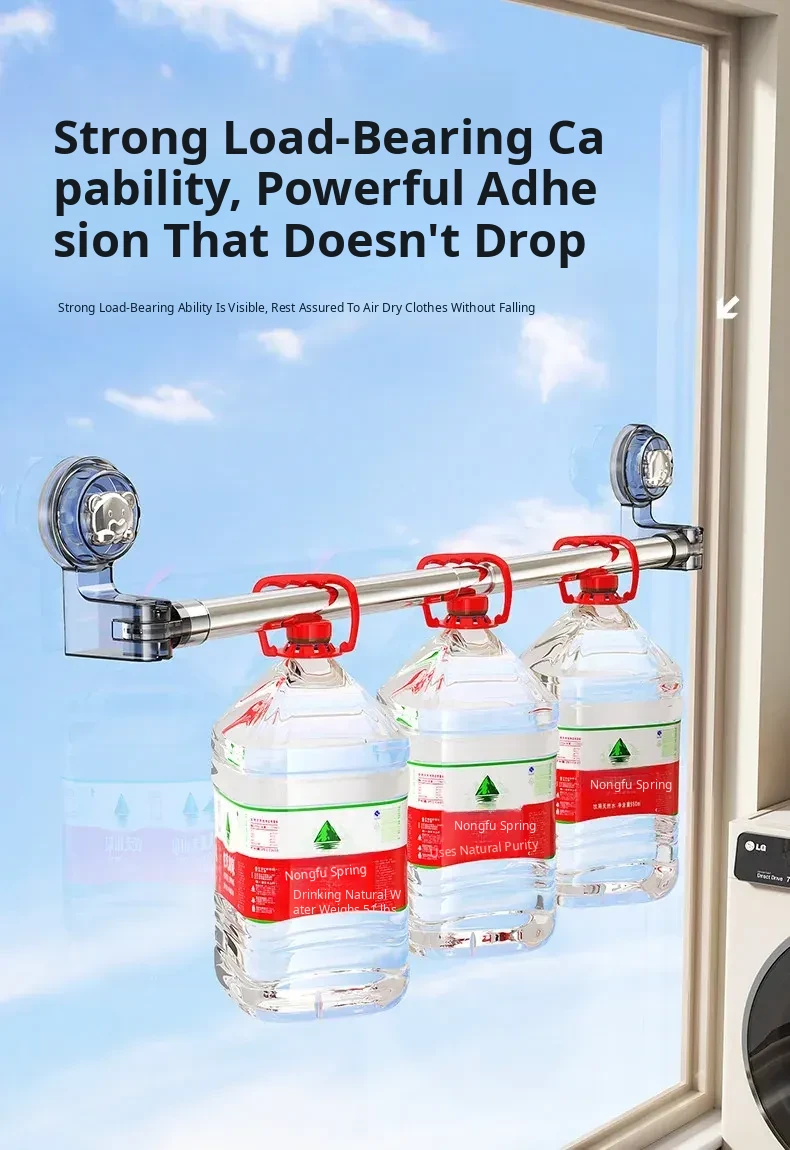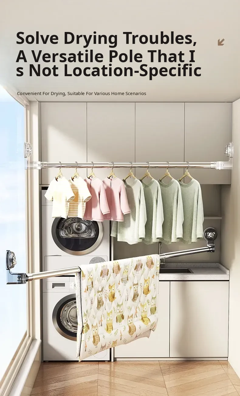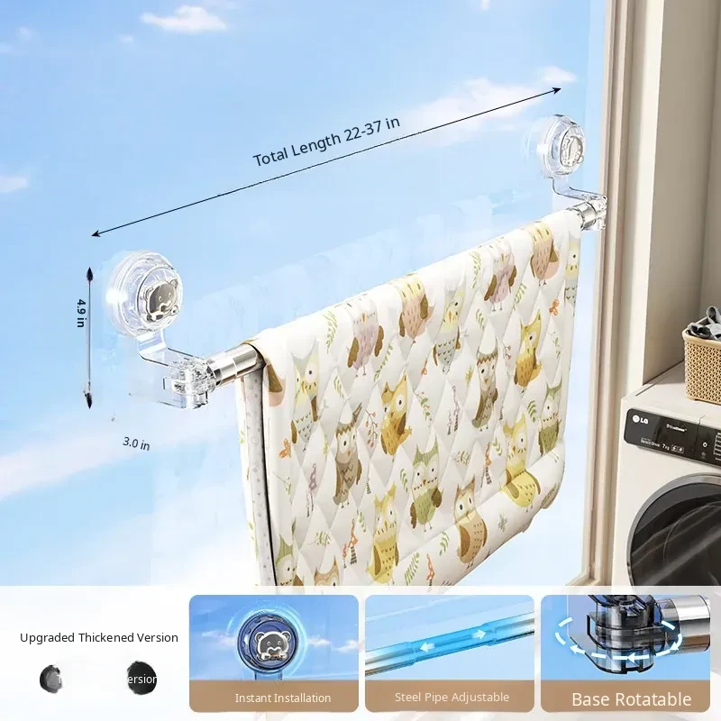 Retractable Suction Clothes Drying Rack – No Drilling Required, Perfect for Balconies and Indoor Use, Hang Bedding and Clothes Effortlessly!