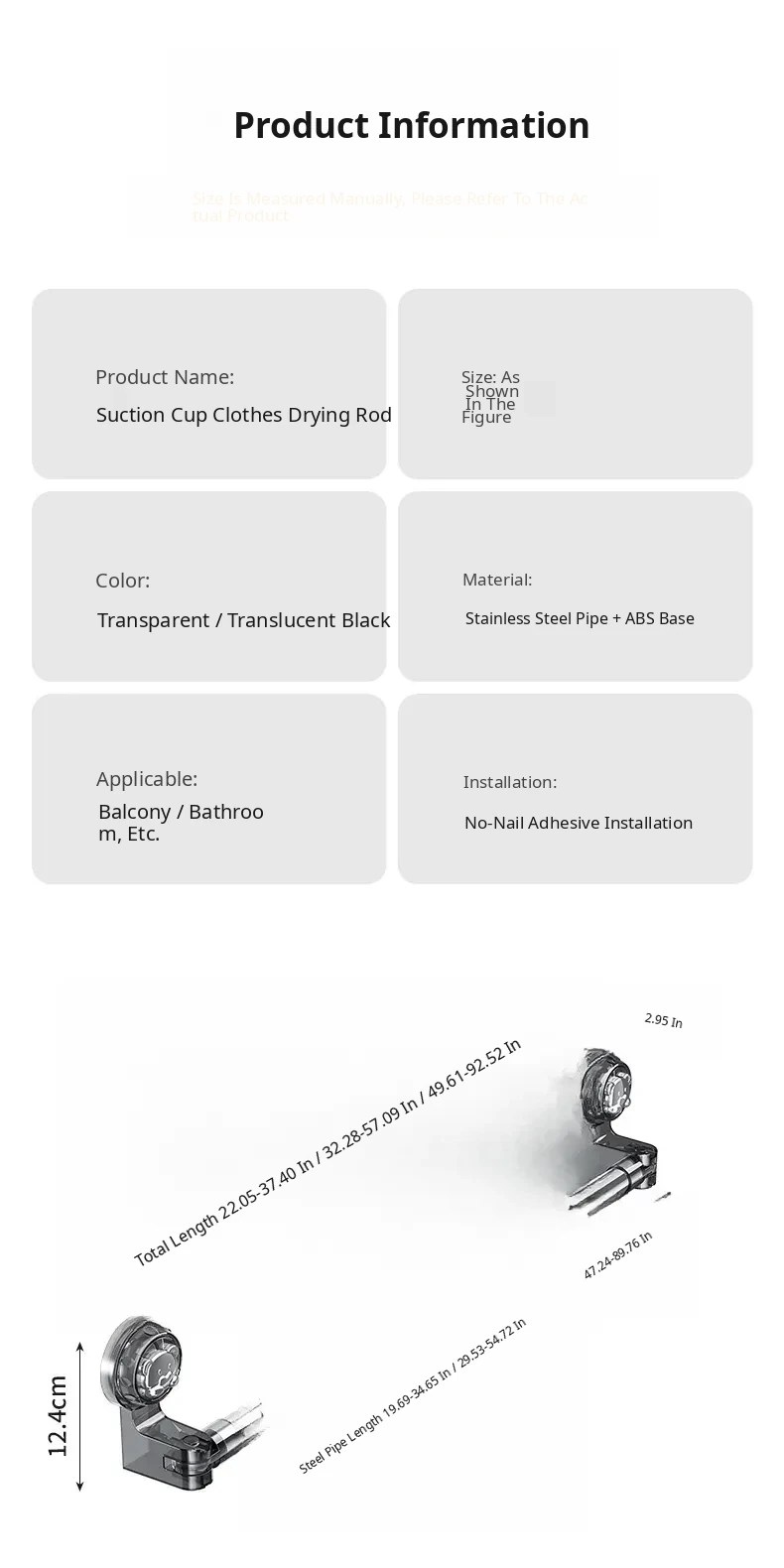 Transparent Black ● Suction Cup Clothes Drying Rack [Retractable 47.24in-94.49in]