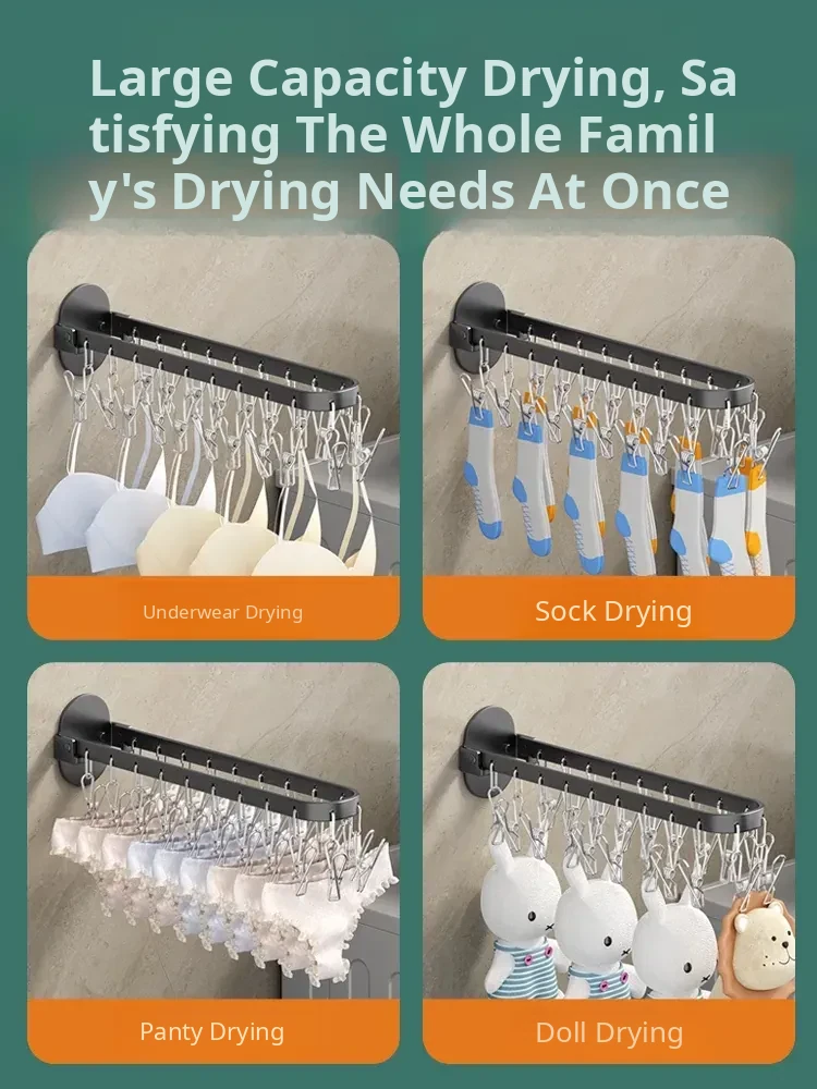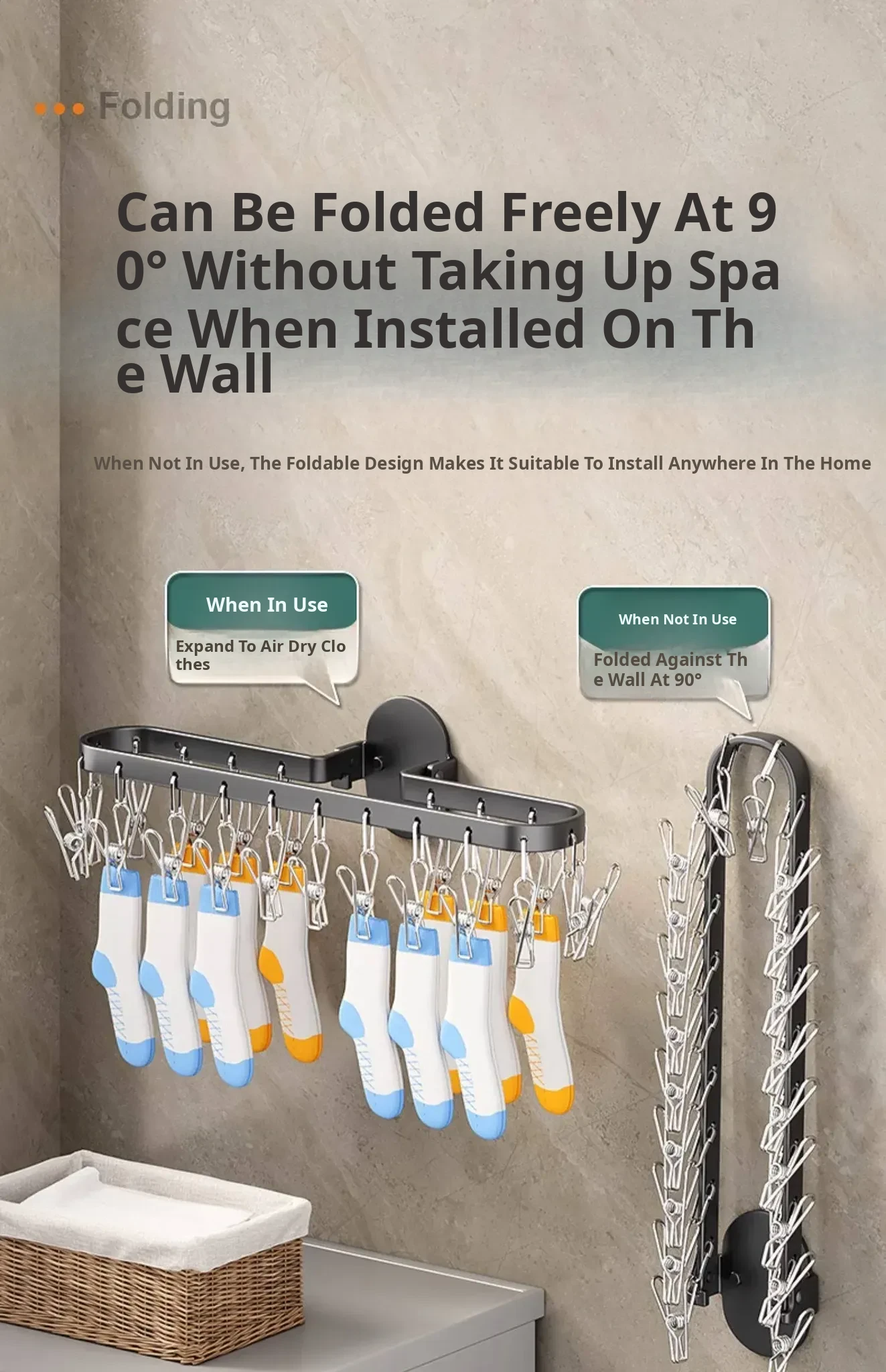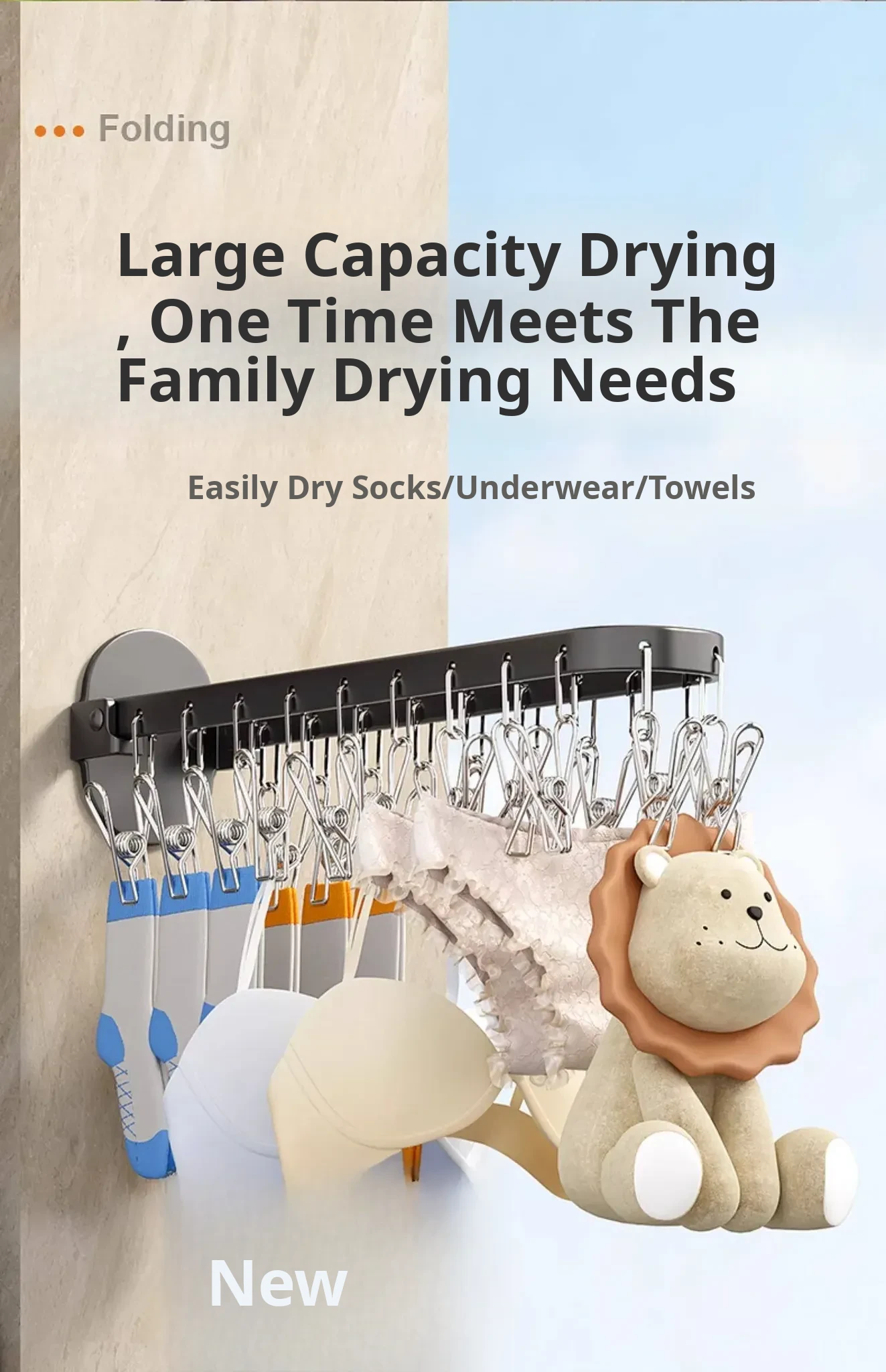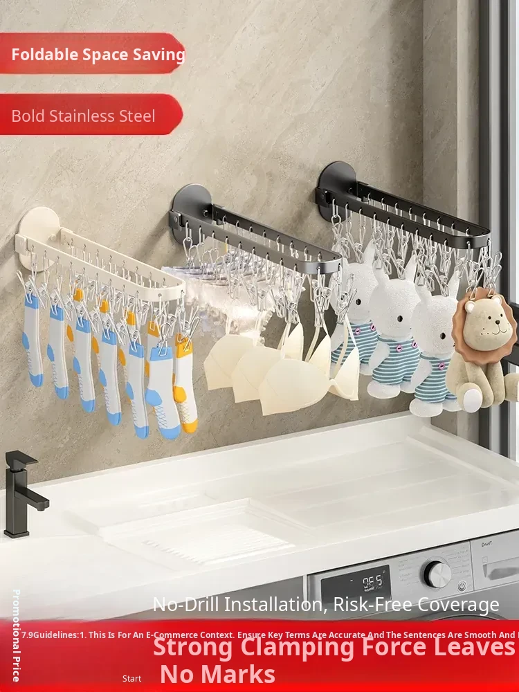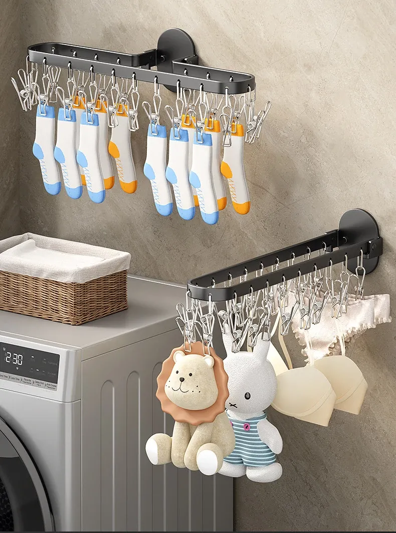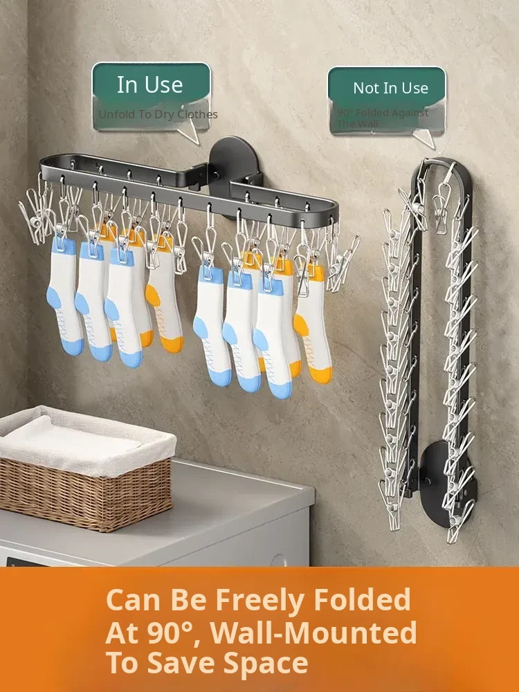 Socks Drying Rack - Multi-Clip Foldable Clothes Hanger for Home Use, No Drill Required, Perfect for Balconies! Ideal for Efficiently Drying Socks and Keeping Your Space Organized!