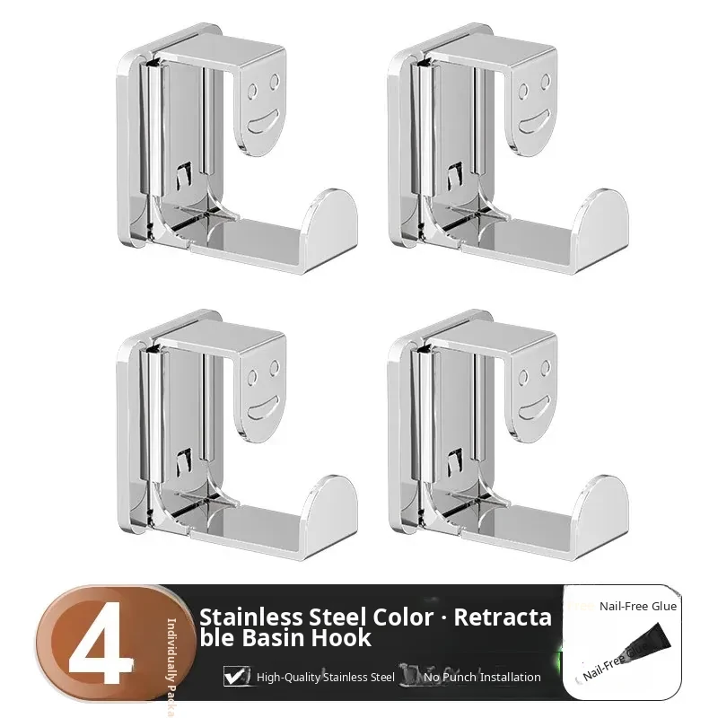 [Bright Silver] Retractable Basin Hook-4 Pack