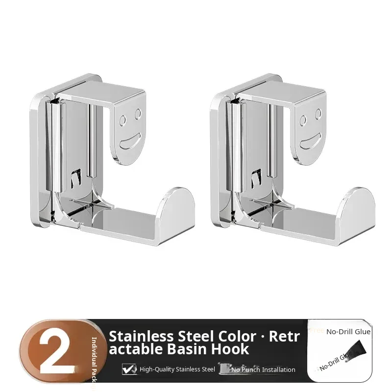 [Bright Silver] Retractable Basin Hook-2 Pack