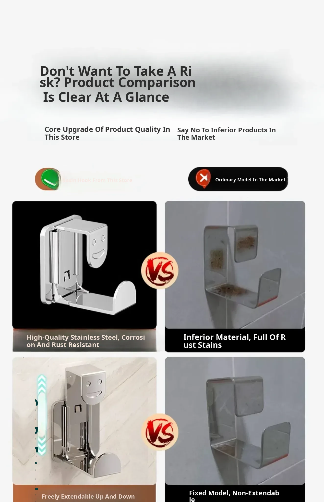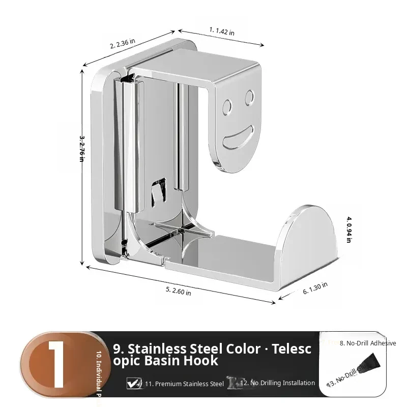 [Bright Silver] Retractable Basin Hook-1 Pack