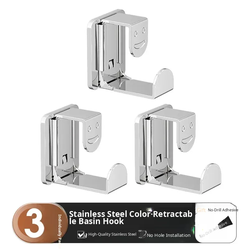 [Bright Silver] Retractable Basin Hook-3 Pack