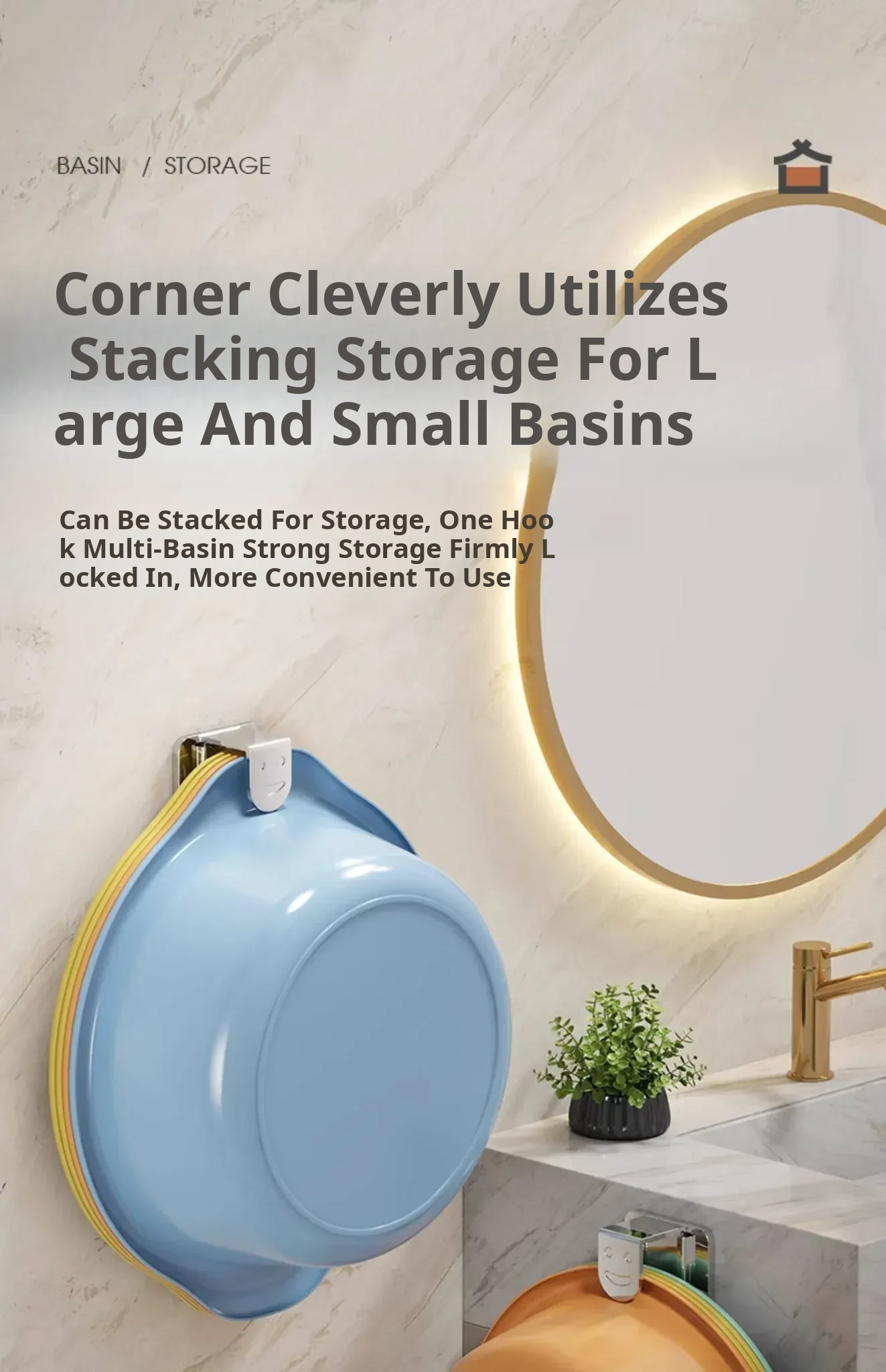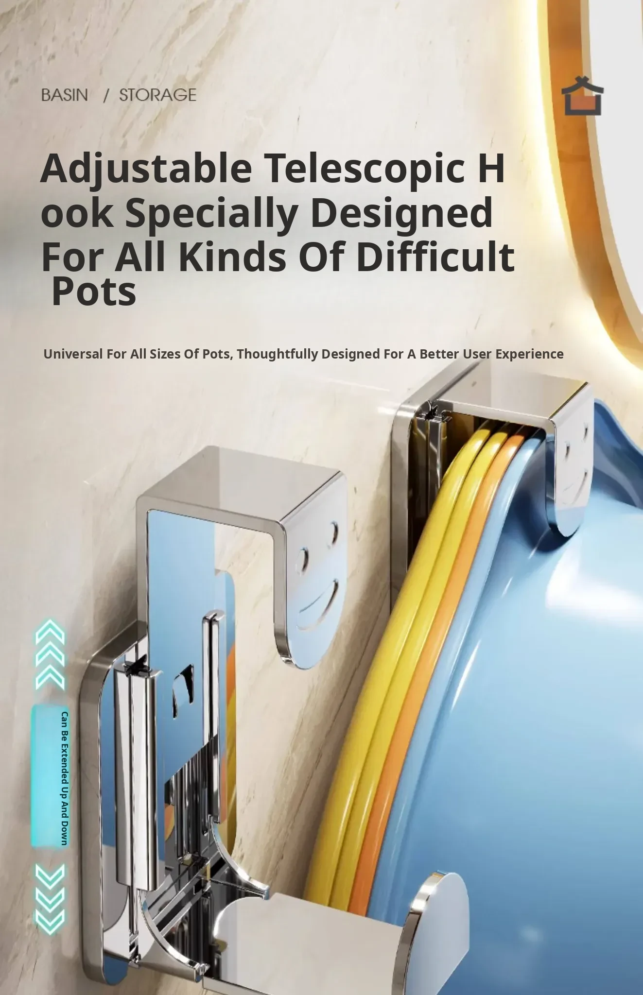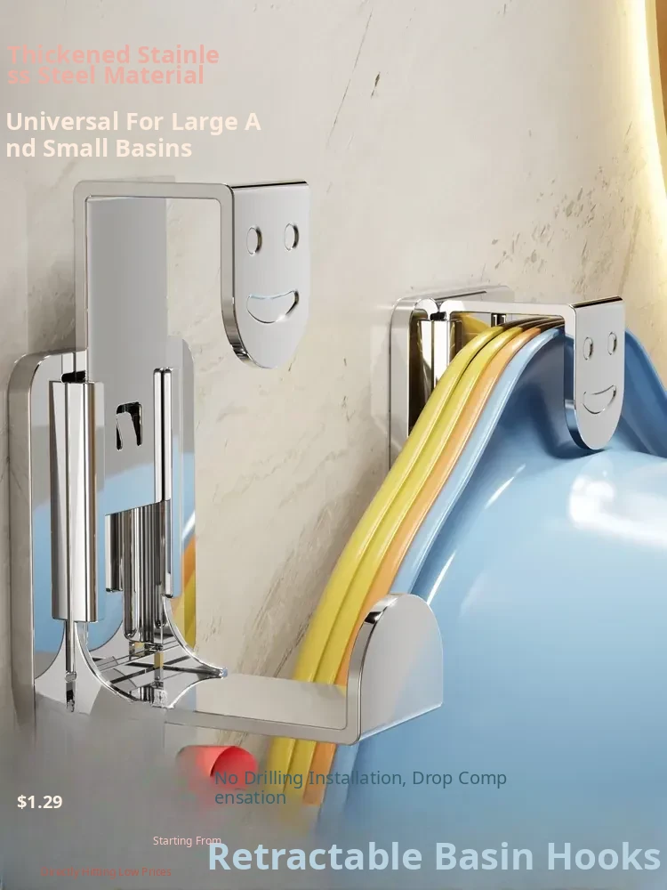 Stainless Steel Basin Hook - No Drill Bathroom Storage Rack for Washbasin and Toilet Essentials - Convenient Hanging Organizer for Your Bathroom Space