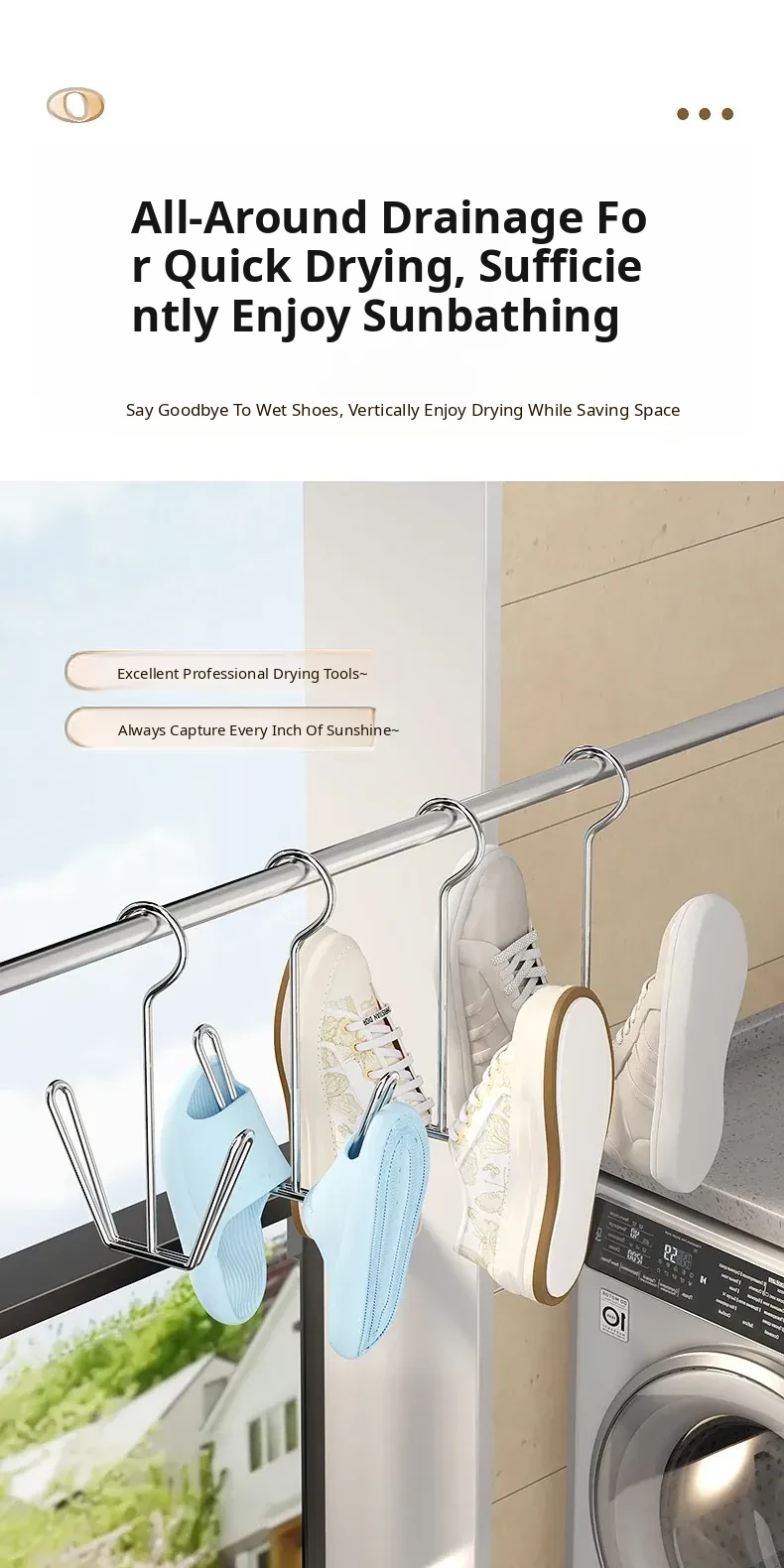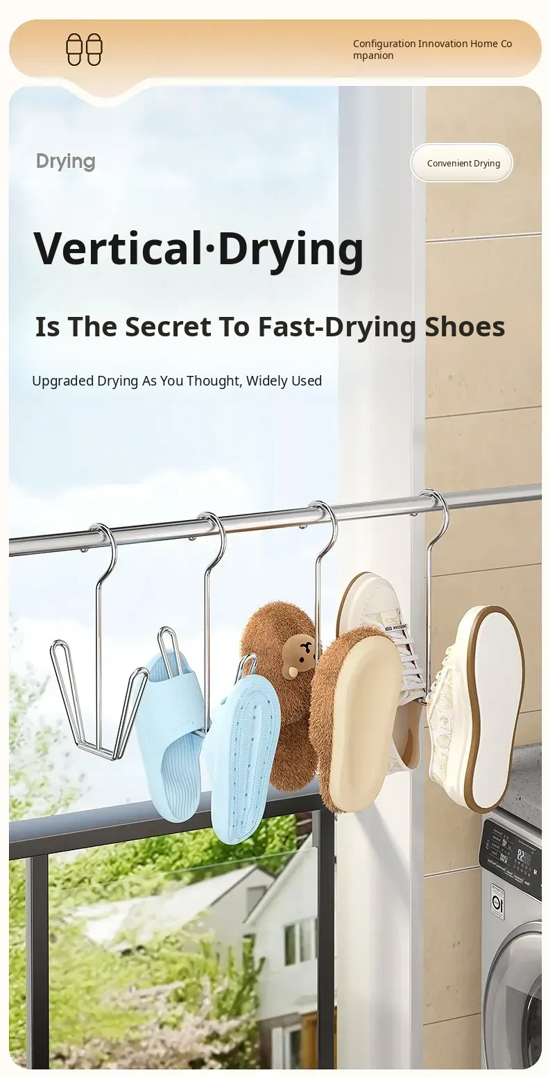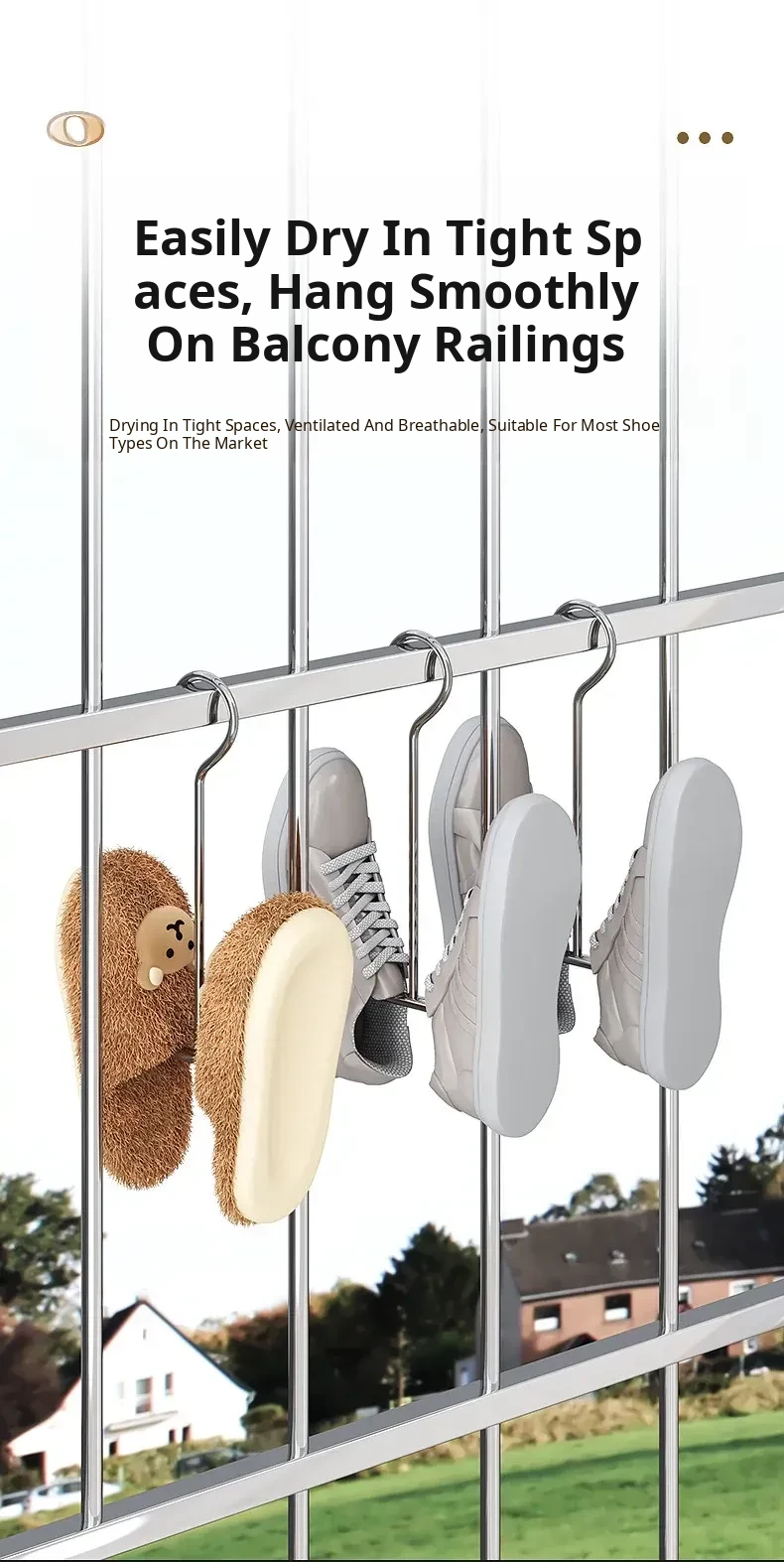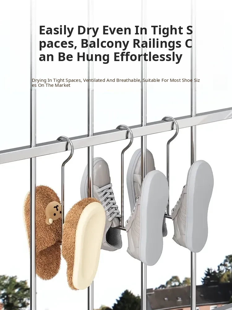 Stainless Steel Shoe Drying Rack - Outdoor Balcony Shoe Dryer with Windproof Hooks, Multi-functional Shoe Drying Solution for Home Use