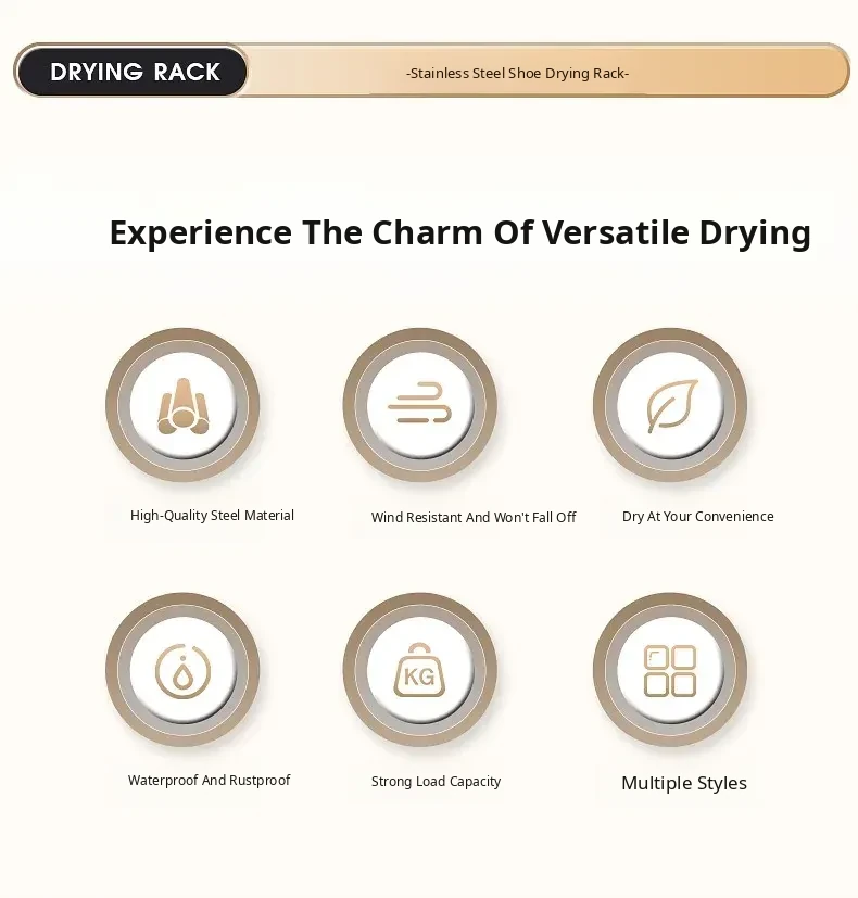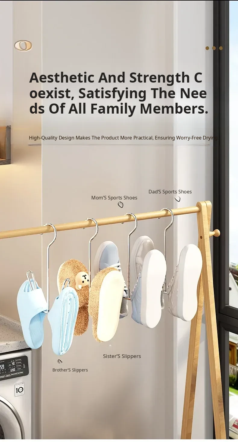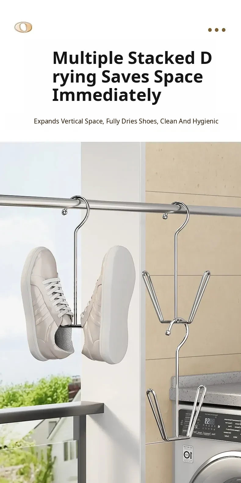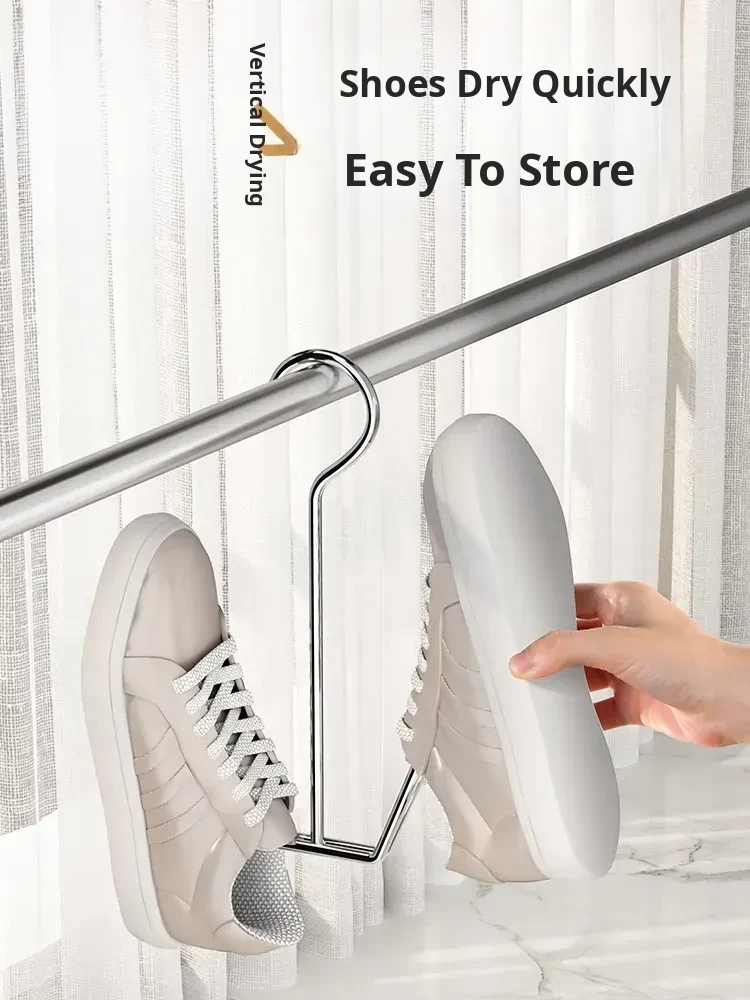 Stainless Steel Shoe Drying Rack - Outdoor Balcony Shoe Dryer with Windproof Hooks, Multi-functional Shoe Drying Solution for Home Use