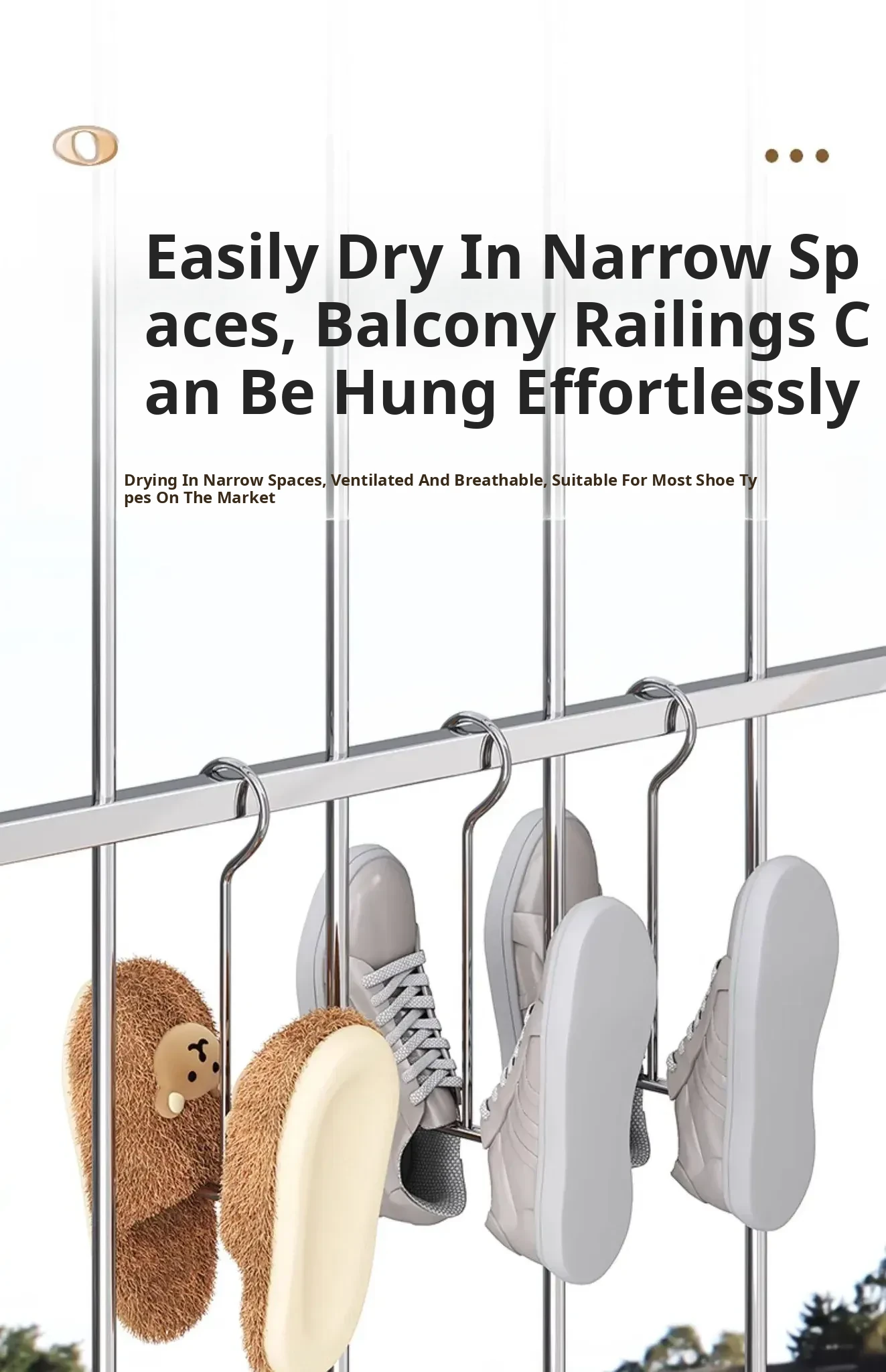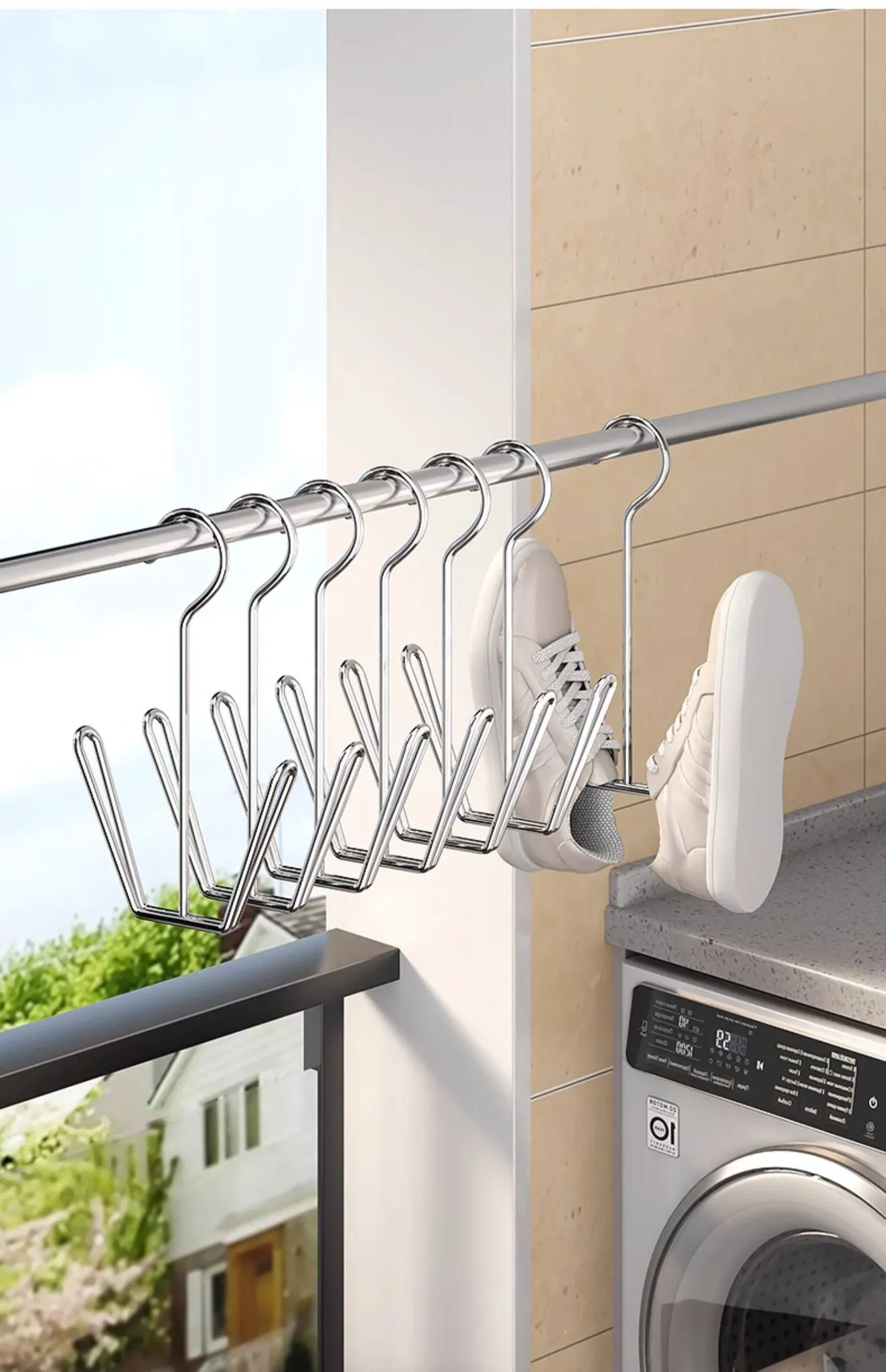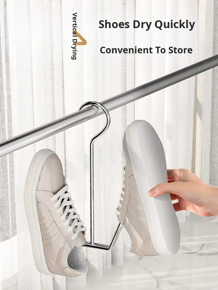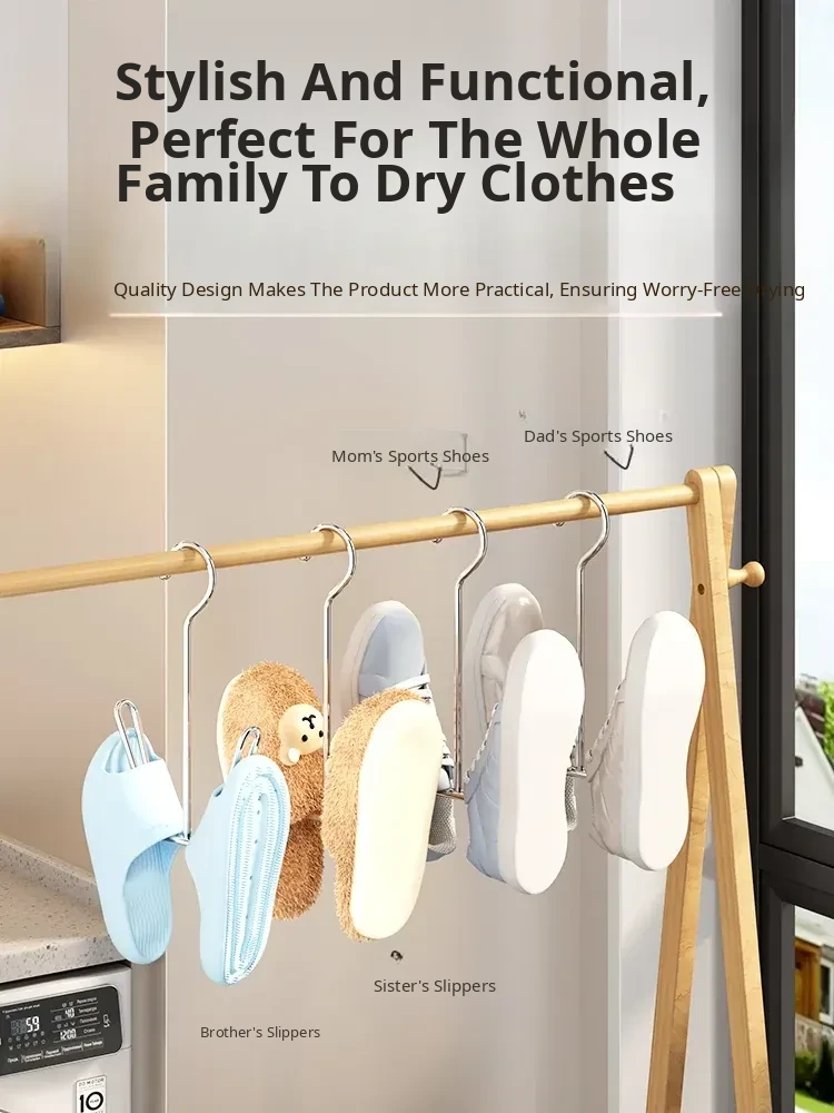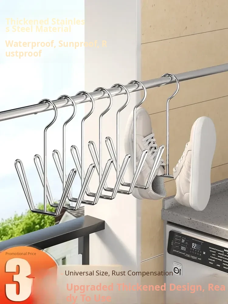 Stainless Steel Shoe Drying Rack - Outdoor Clothesline for Shoes with Windproof Guard, Perfect for Home Balconies, Convenient Hanging Hooks for Sandals and More