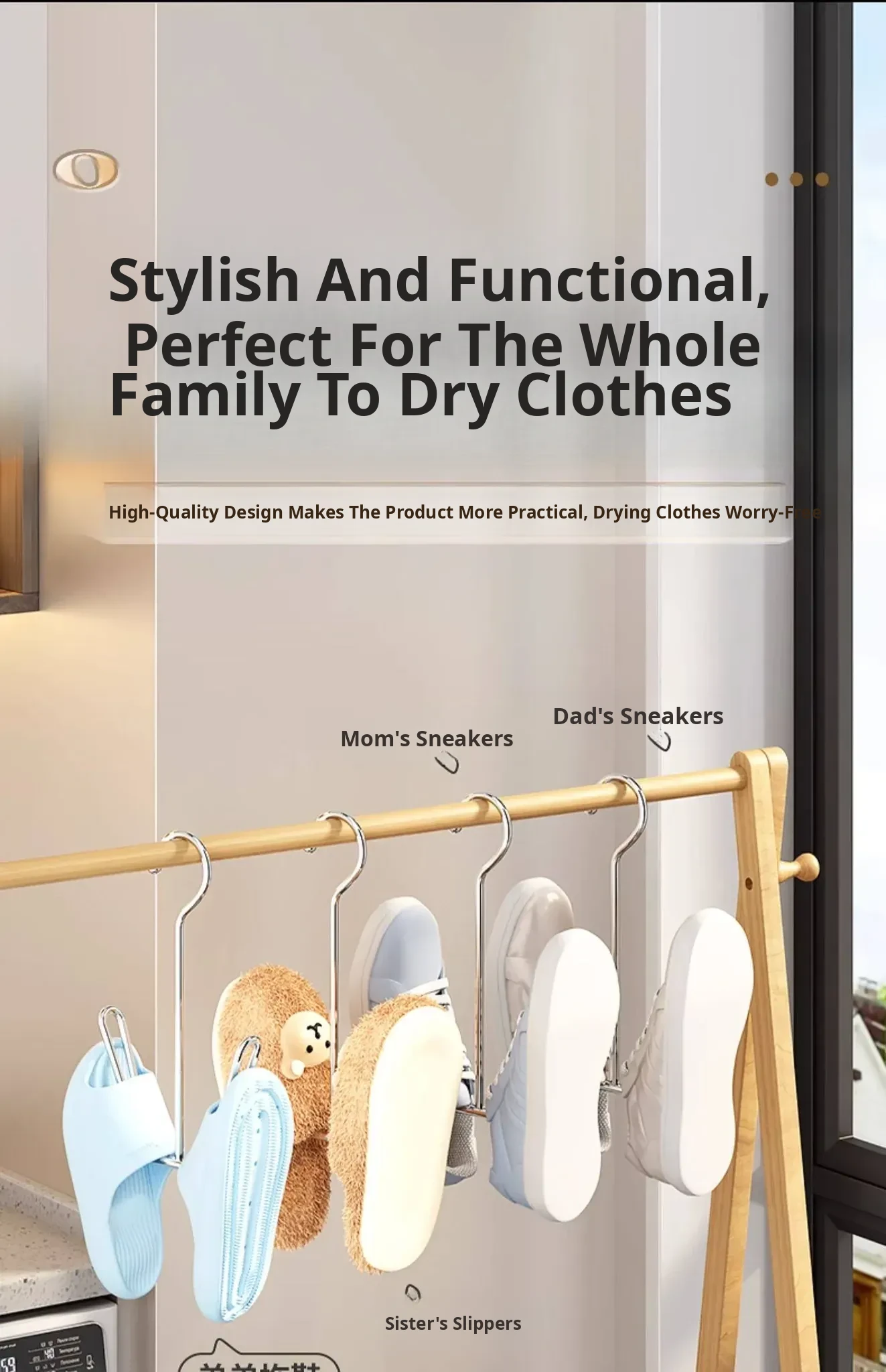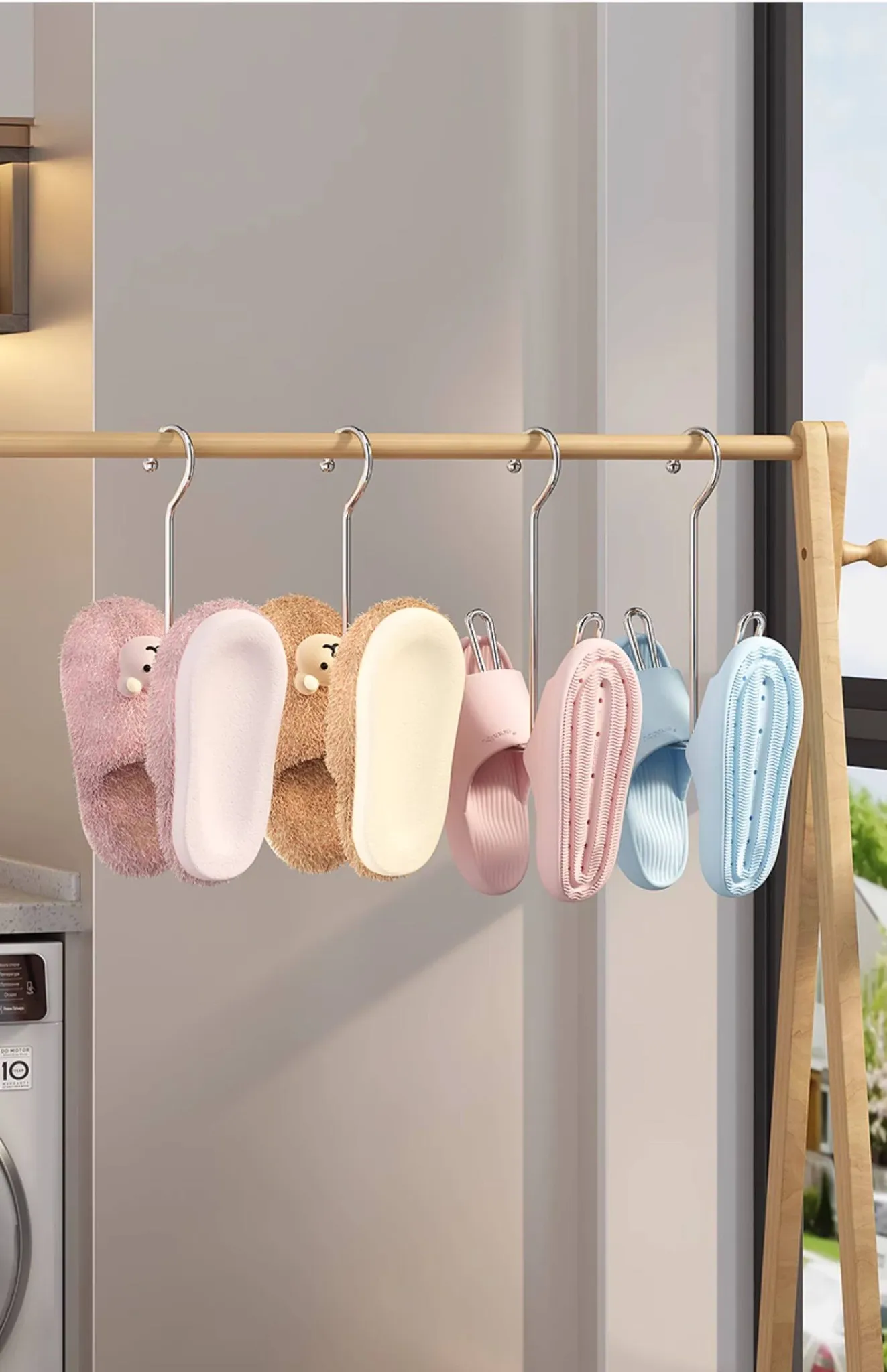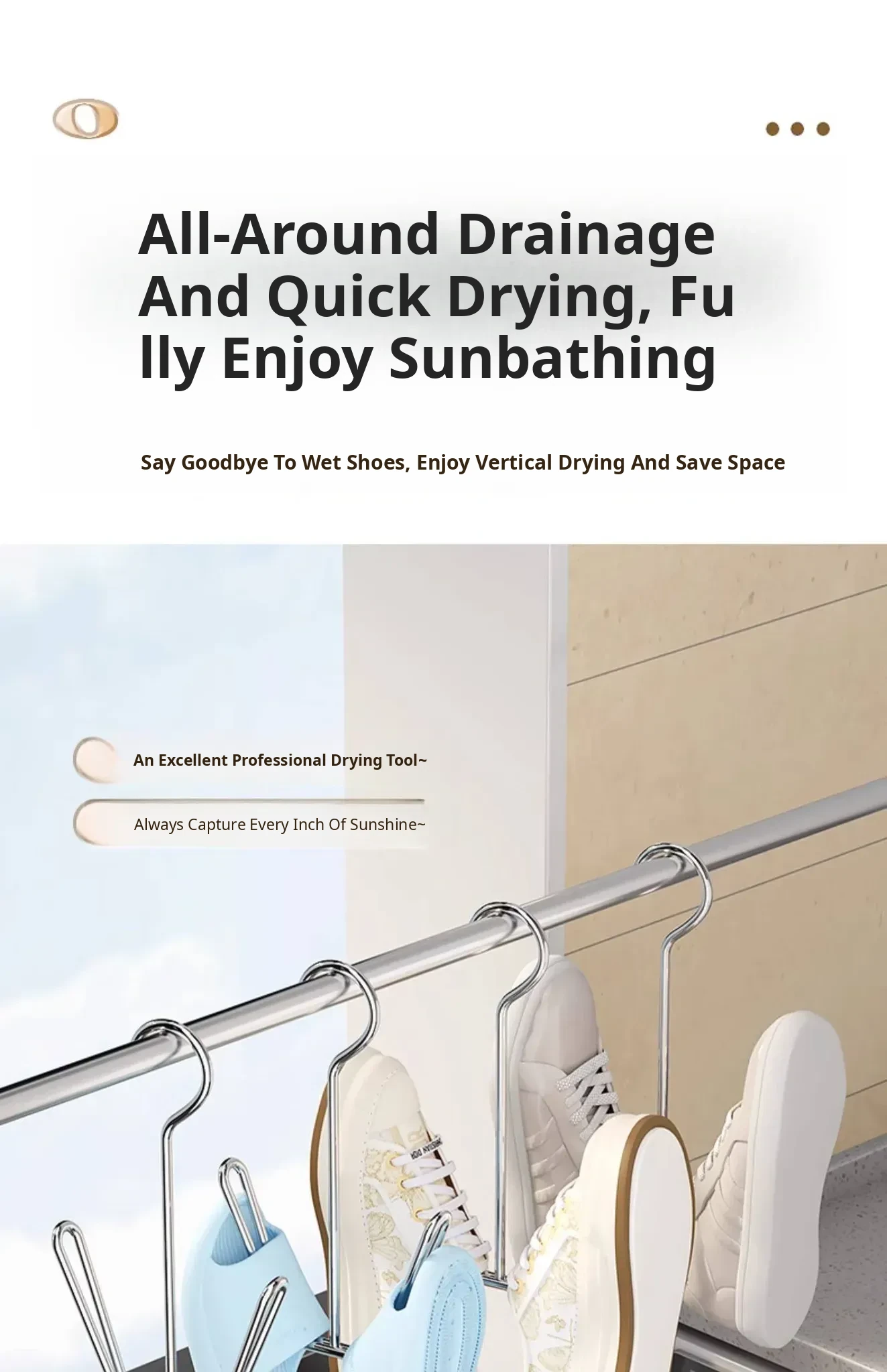 Stainless Steel Shoe Drying Rack - Outdoor Clothesline for Shoes with Windproof Guard, Perfect for Home Balconies, Convenient Hanging Hooks for Sandals and More