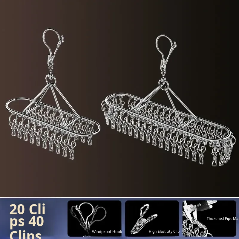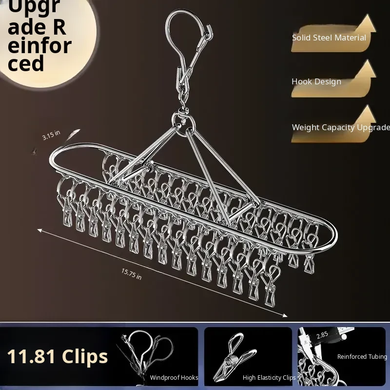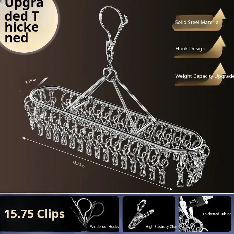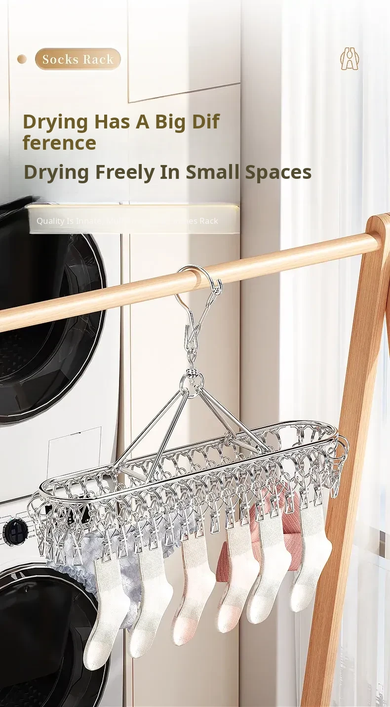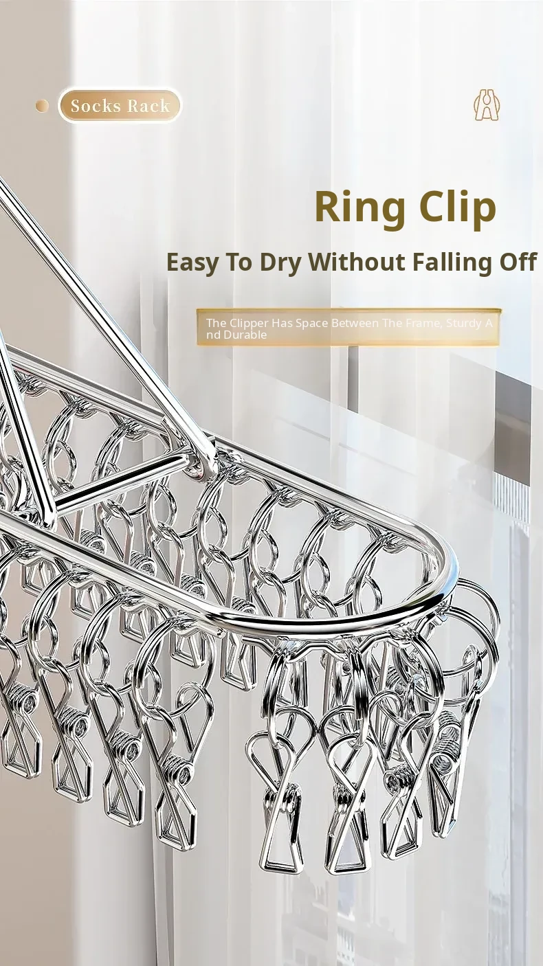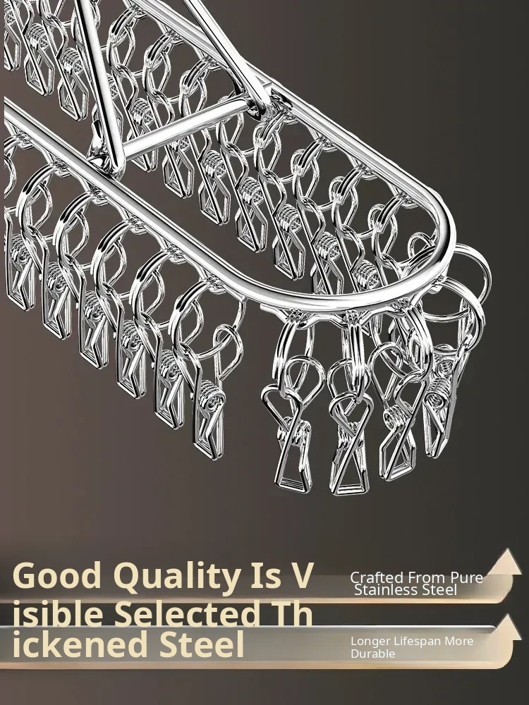 Stainless Steel Sock Drying Rack with Multiple Clips - Windproof, No Trace Magic Clothes Hanger for Home Use, Versatile Indoor/Outdoor Underwear and Panties Drying Solution for Your Balcony.