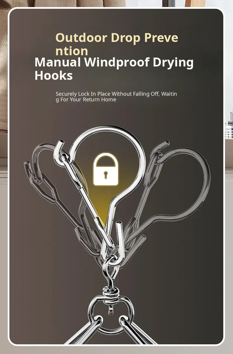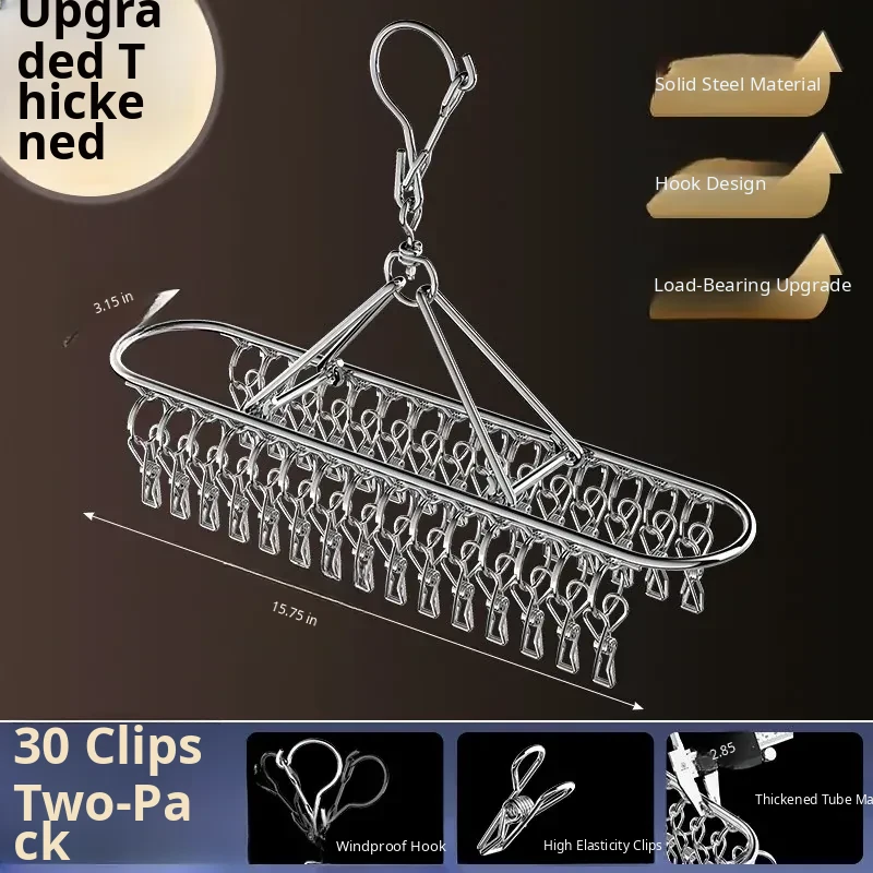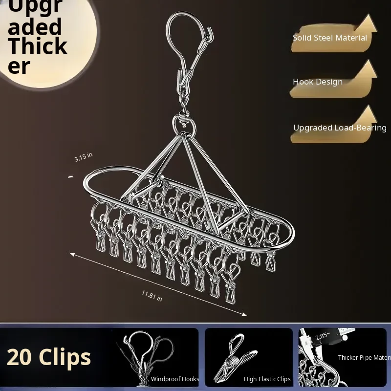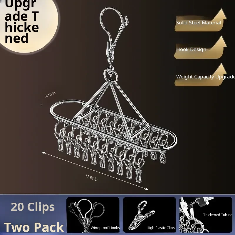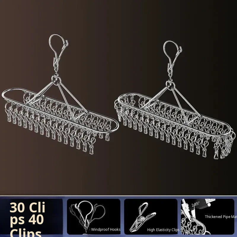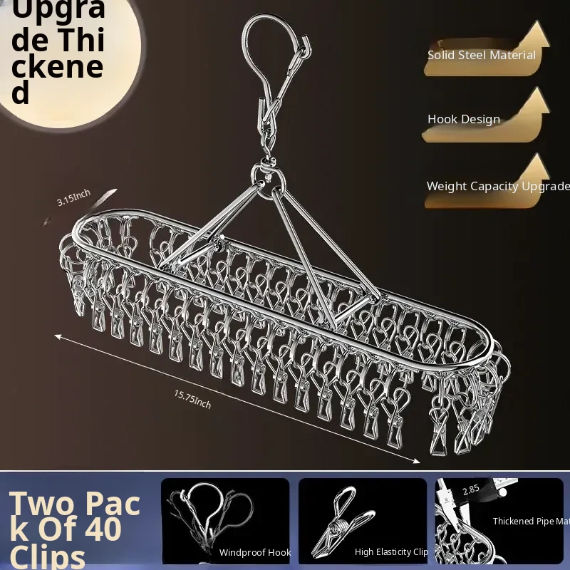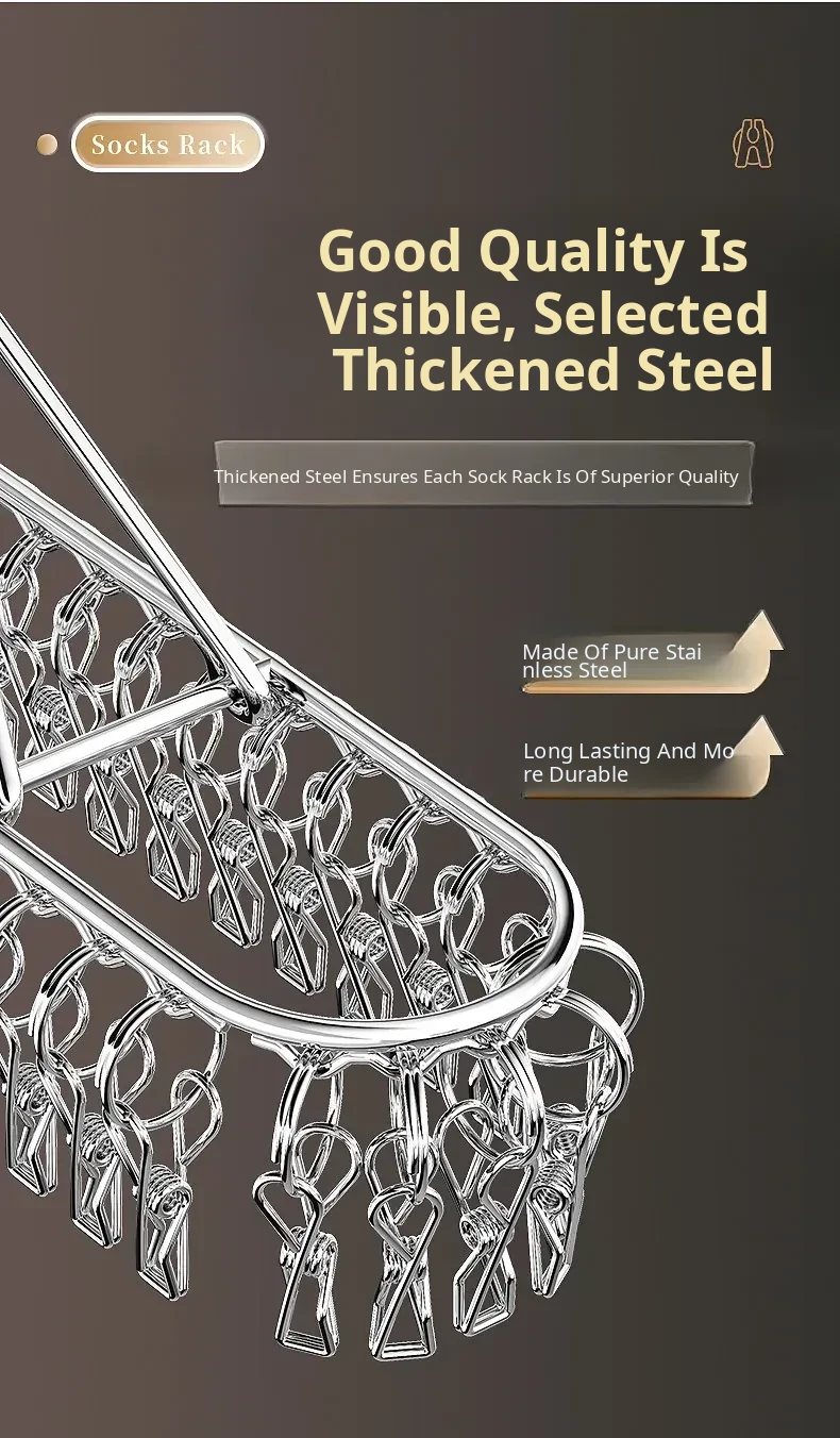 Stainless Steel Sock Drying Rack with Multiple Clips - Windproof, No Trace Magic Clothes Hanger for Home Use, Versatile Indoor/Outdoor Underwear and Panties Drying Solution for Your Balcony.
