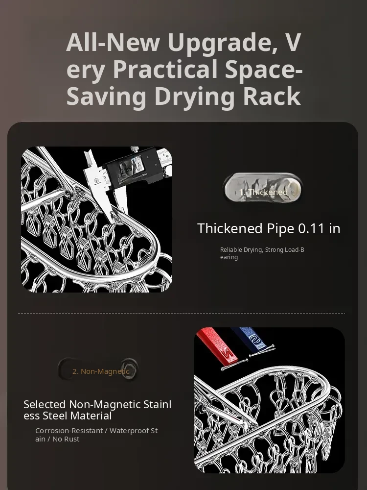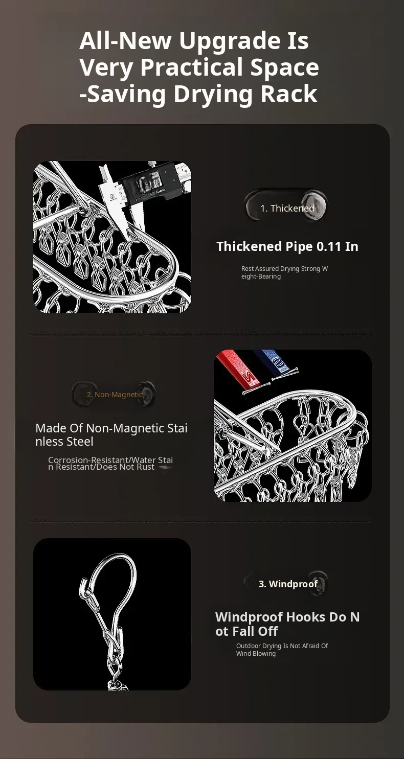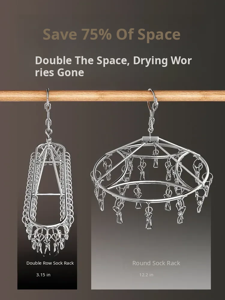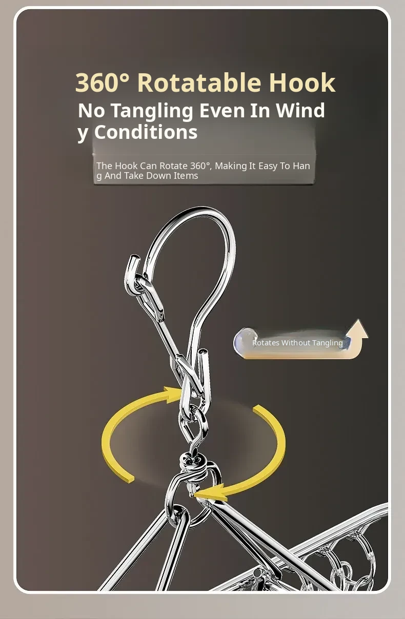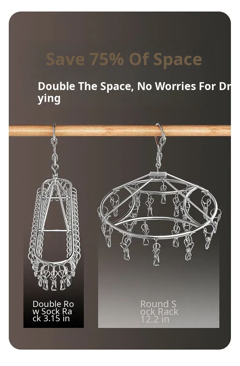 Stainless Steel Sock Drying Rack with Multiple Clips - Windproof, No Trace Magic Clothes Hanger for Home Use, Versatile Indoor/Outdoor Underwear and Panties Drying Solution for Your Balcony.