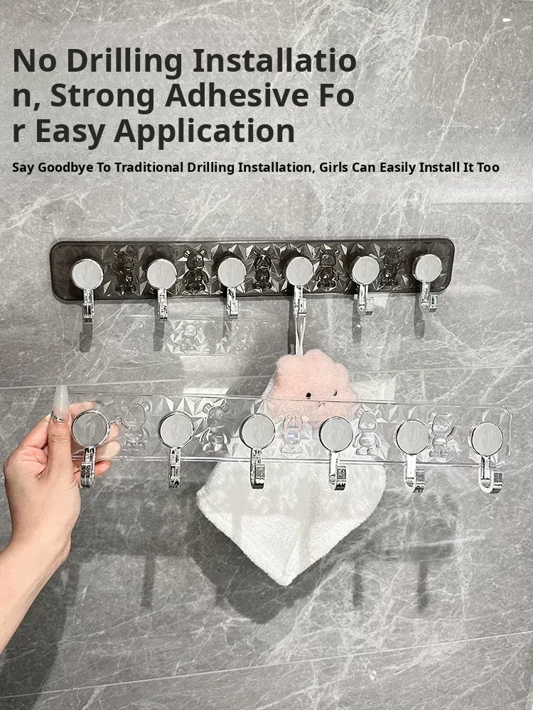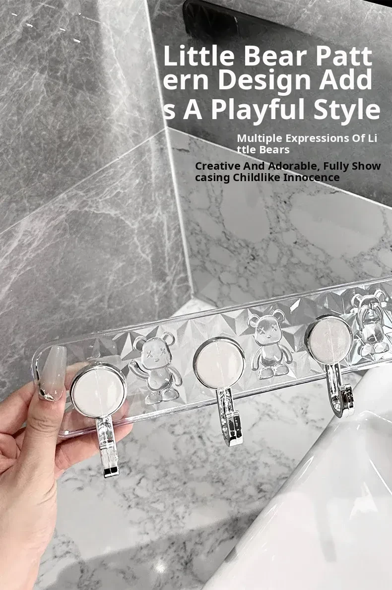 Transparent Color [Single Pack] Bear-Shaped Connected Hooks