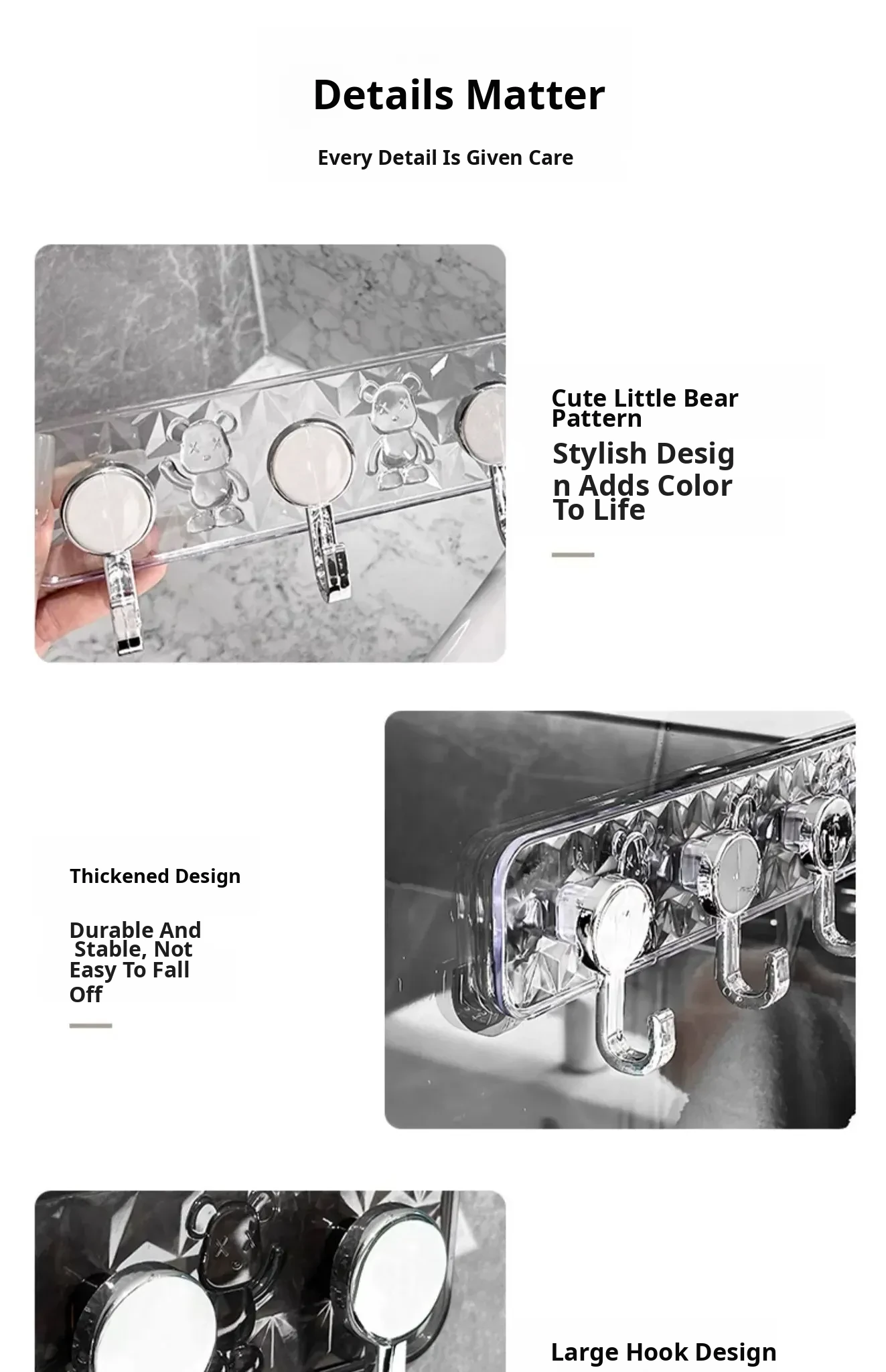 Transparent Color [2 Pack] Bear Row Hook