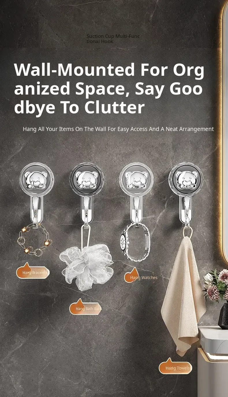 Strong Vacuum Suction Hooks for Bathroom - No Drill, No Trace! Perfect for Hanging Towels on Kitchen Doors and Walls - Durable, Easy to Use, and Ideal for Any Home.