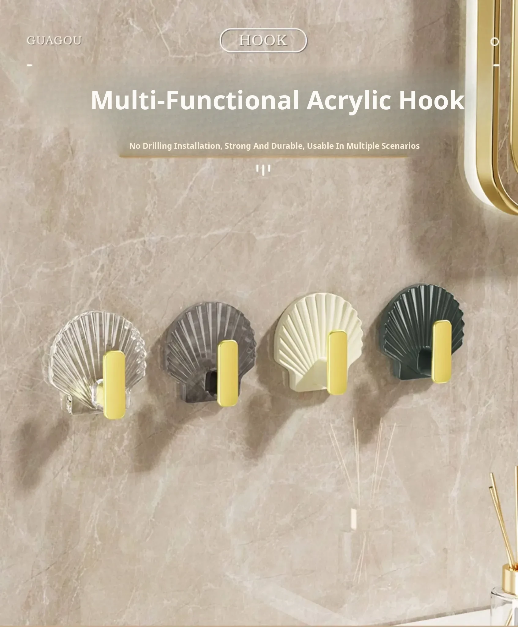 Transparent Color [4 Pack] Light Luxury Shell Hook