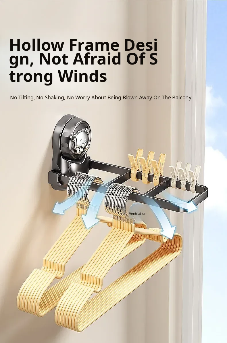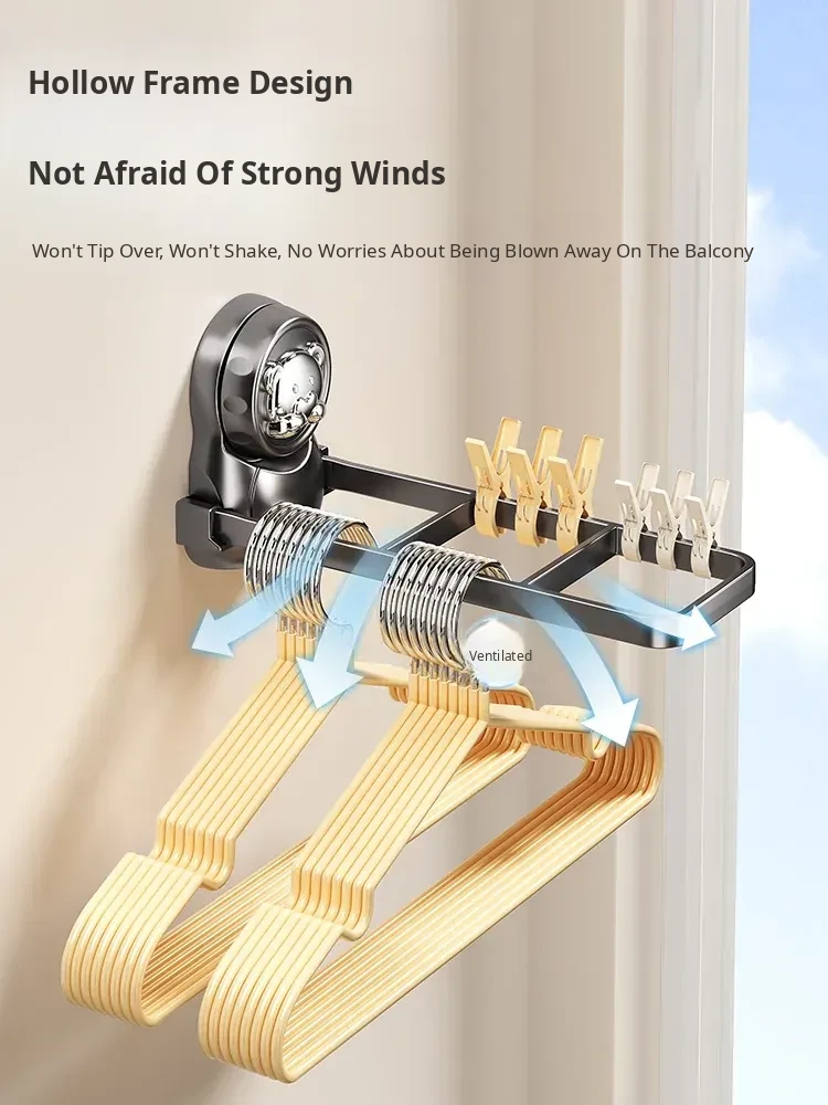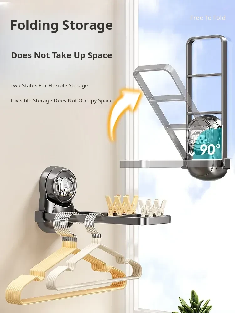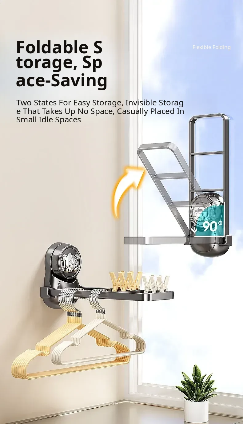 Suction Cup Balcony Clothes Hanger - Space-Saving, No Drill, Multi-Functional Wall-Mounted Foldable Hanger for Home Use, Perfect for Organizing Clothes Without Leaving Marks