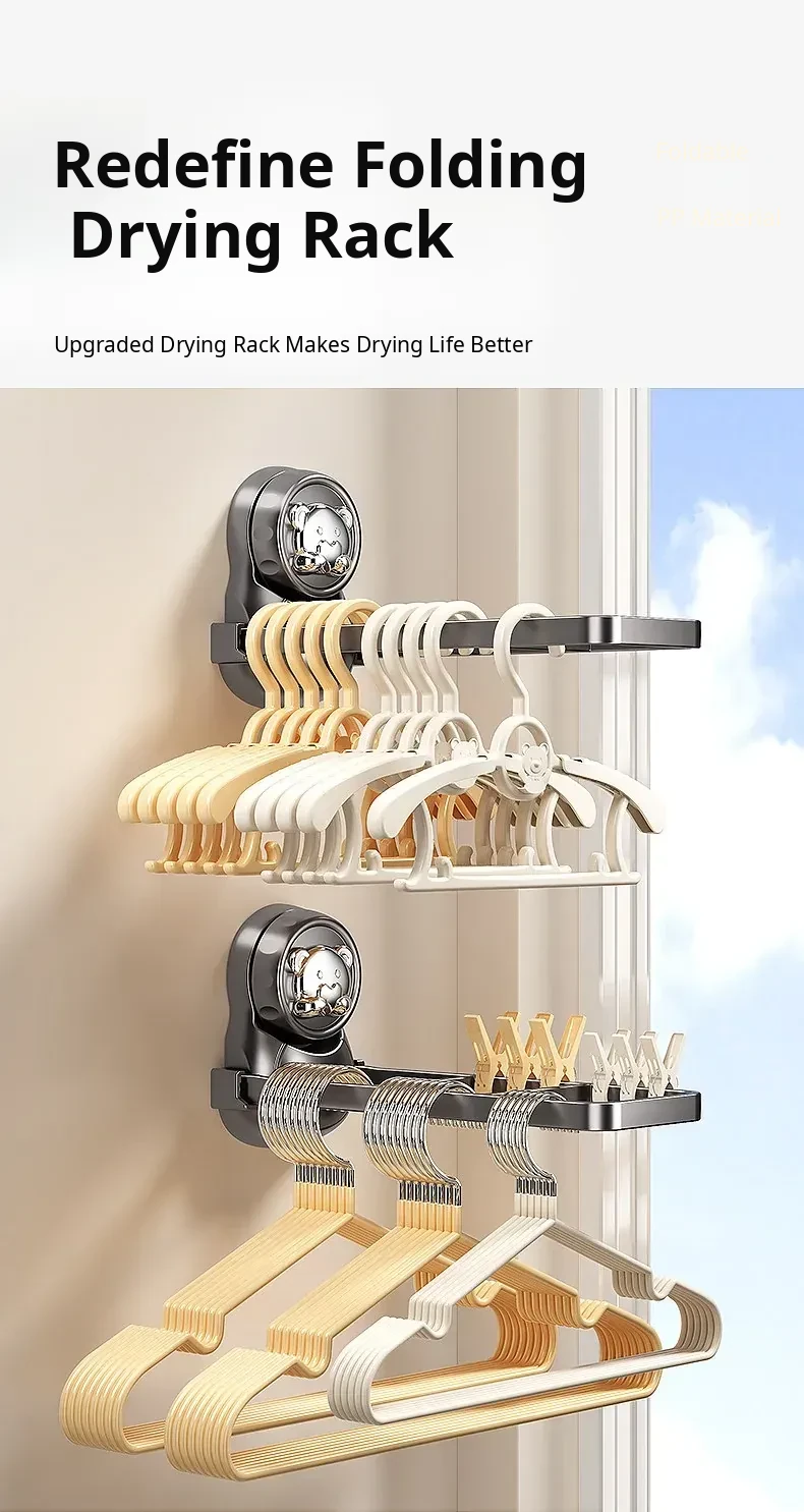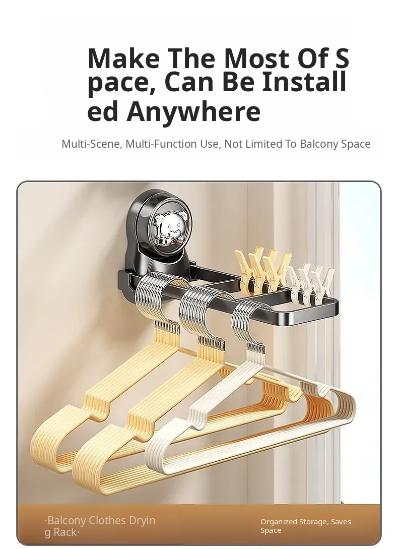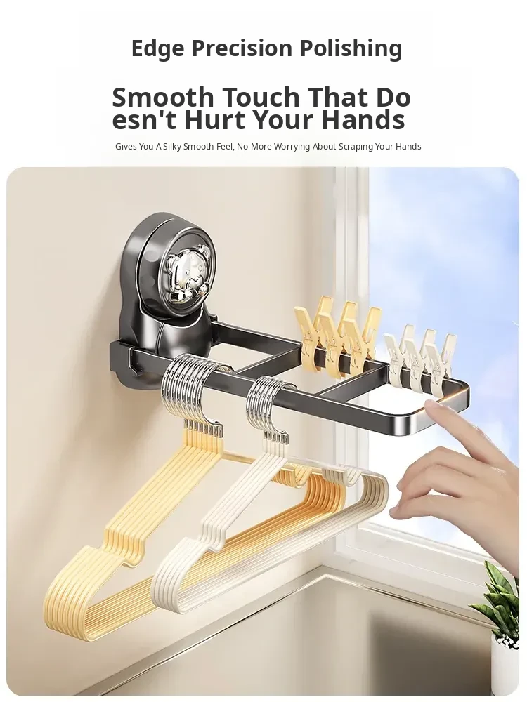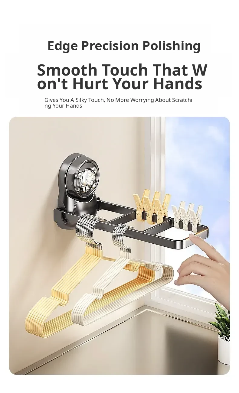 Suction Cup Balcony Clothes Hanger - Space-Saving, No Drill, Multi-Functional Wall-Mounted Foldable Hanger for Home Use, Perfect for Organizing Clothes Without Leaving Marks