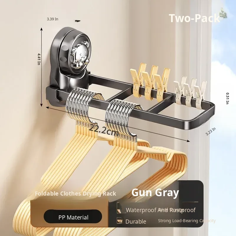 Gun Gray-Suction Cup Folding Clothes Drying Rack [2 Pack]