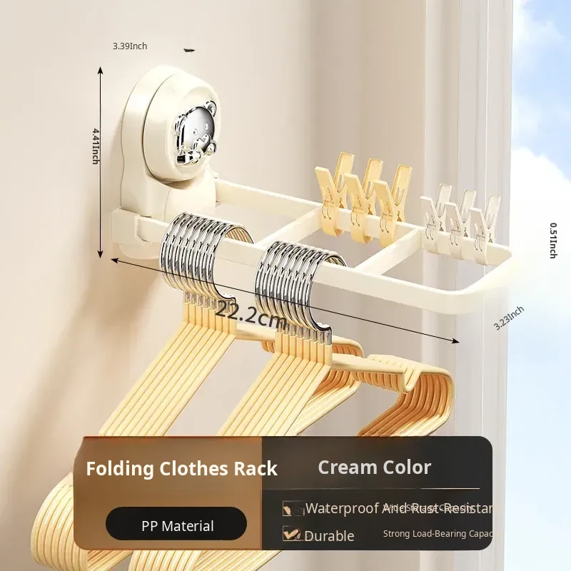 Cream Color-Suction Cup Folding Clothes Drying Rack [1 Pack]