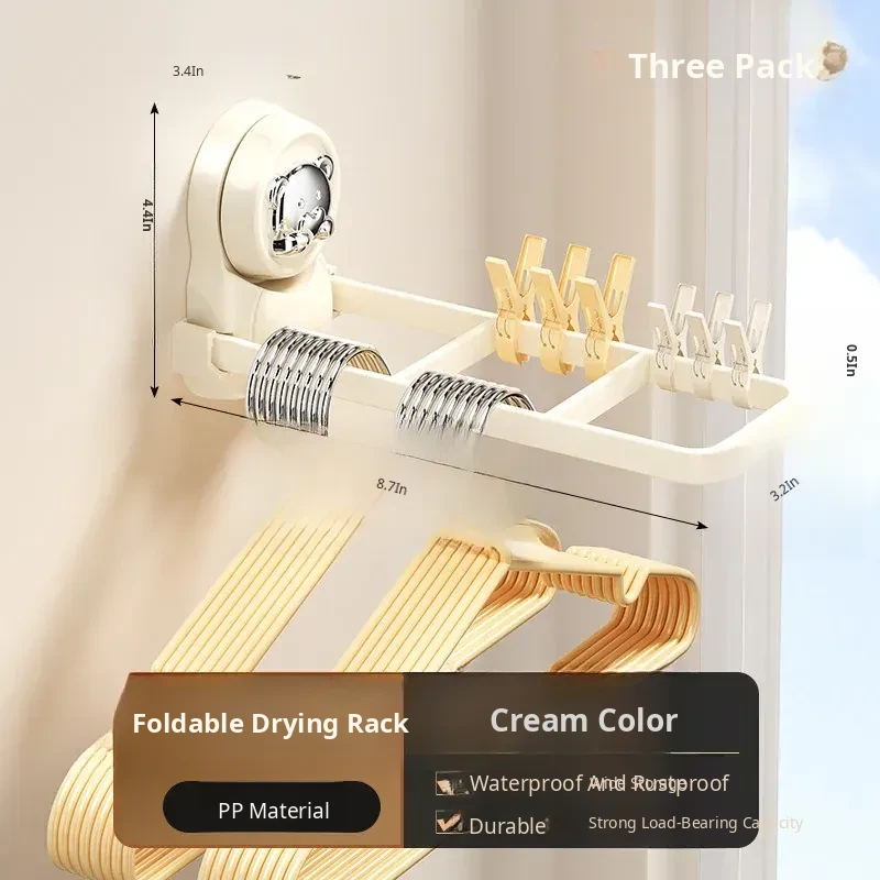 Cream Color-Suction Cup Folding Clothes Drying Rack [3 Pack]