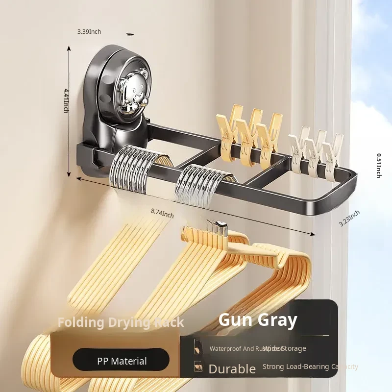 Gun Gray-Suction Cup Folding Clothes Drying Rack [1 Pack]