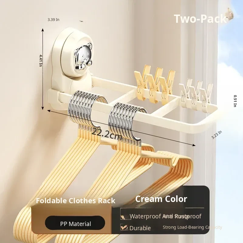 Cream Color-Suction Cup Folding Clothes Drying Rack [2 Pack]