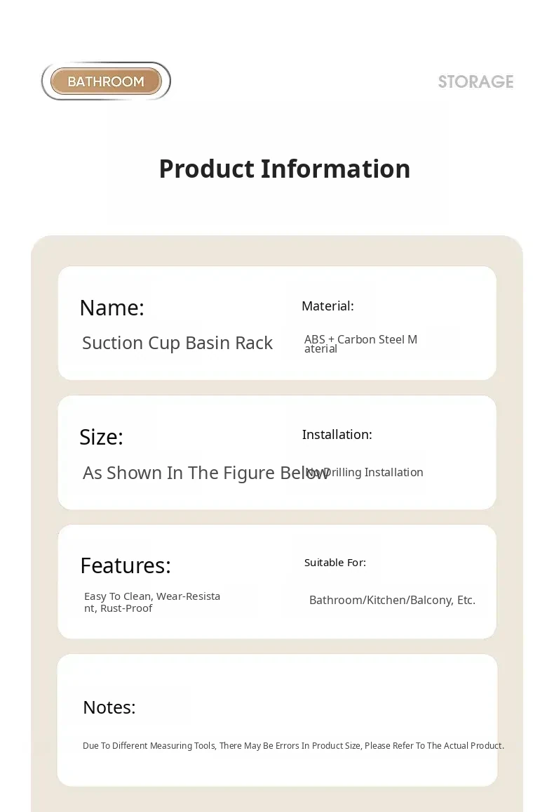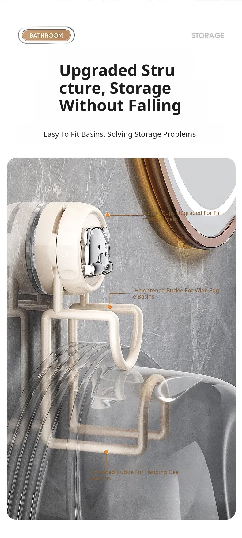 Suction Cup Bathroom Hanging Storage Rack – No Drill Required, Perfect for Shower and Sink Organization, Space-Saving Solution for Home Use