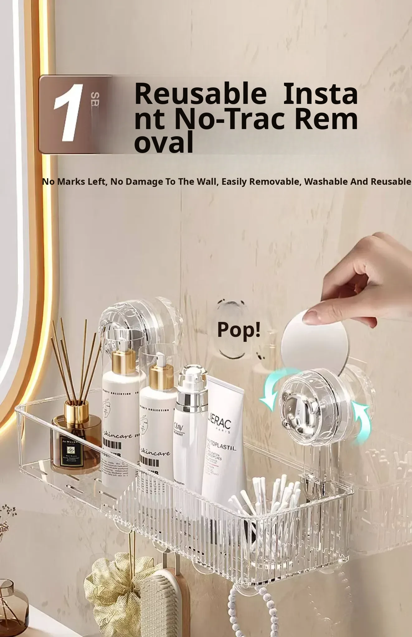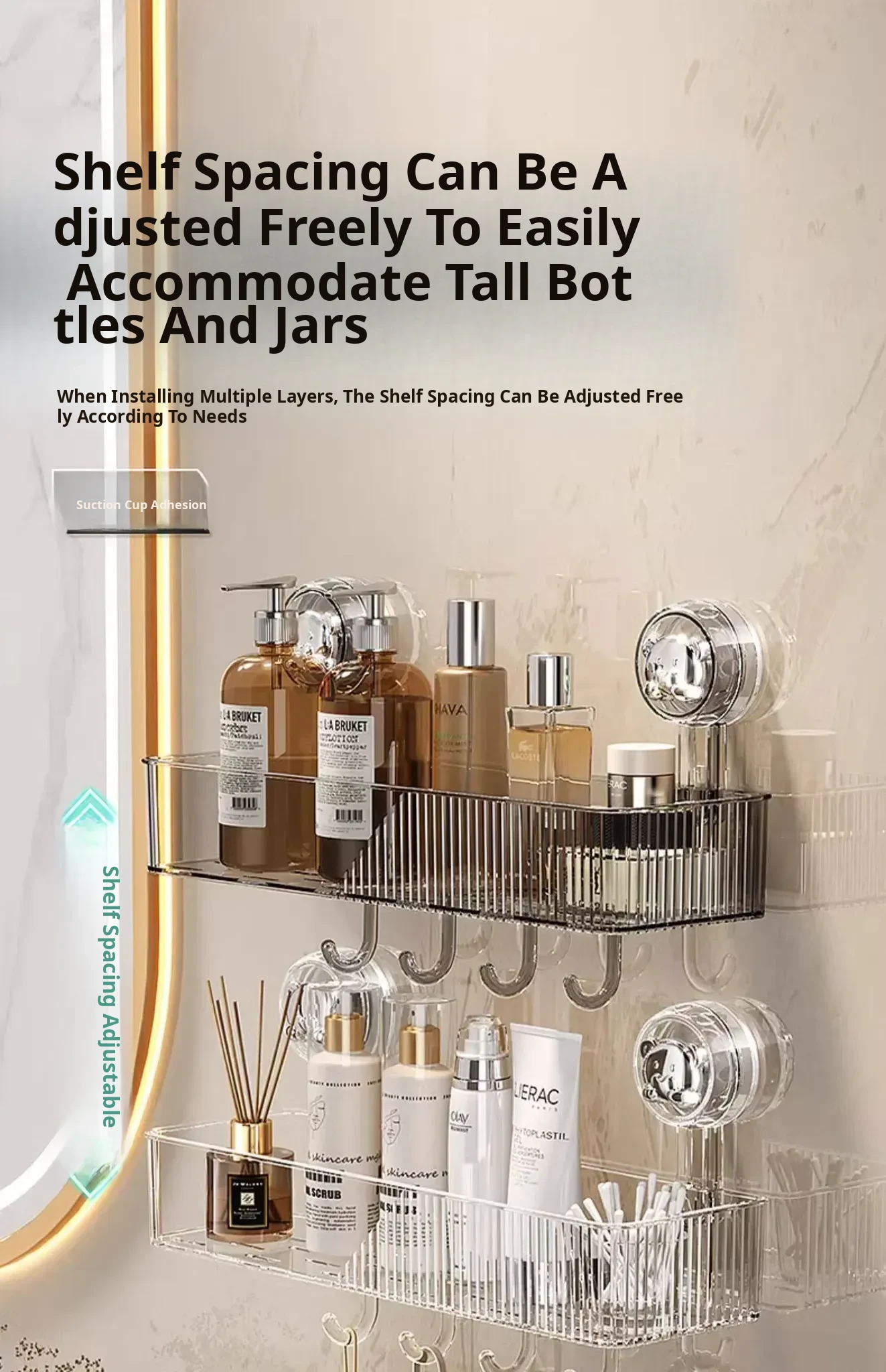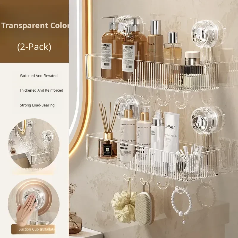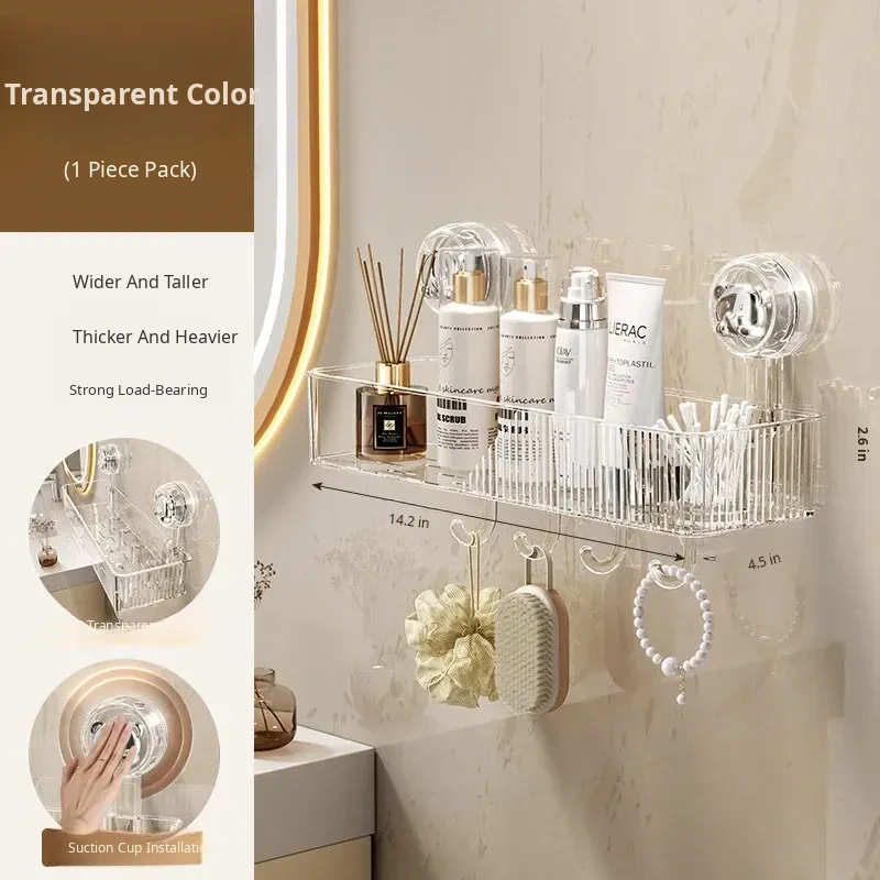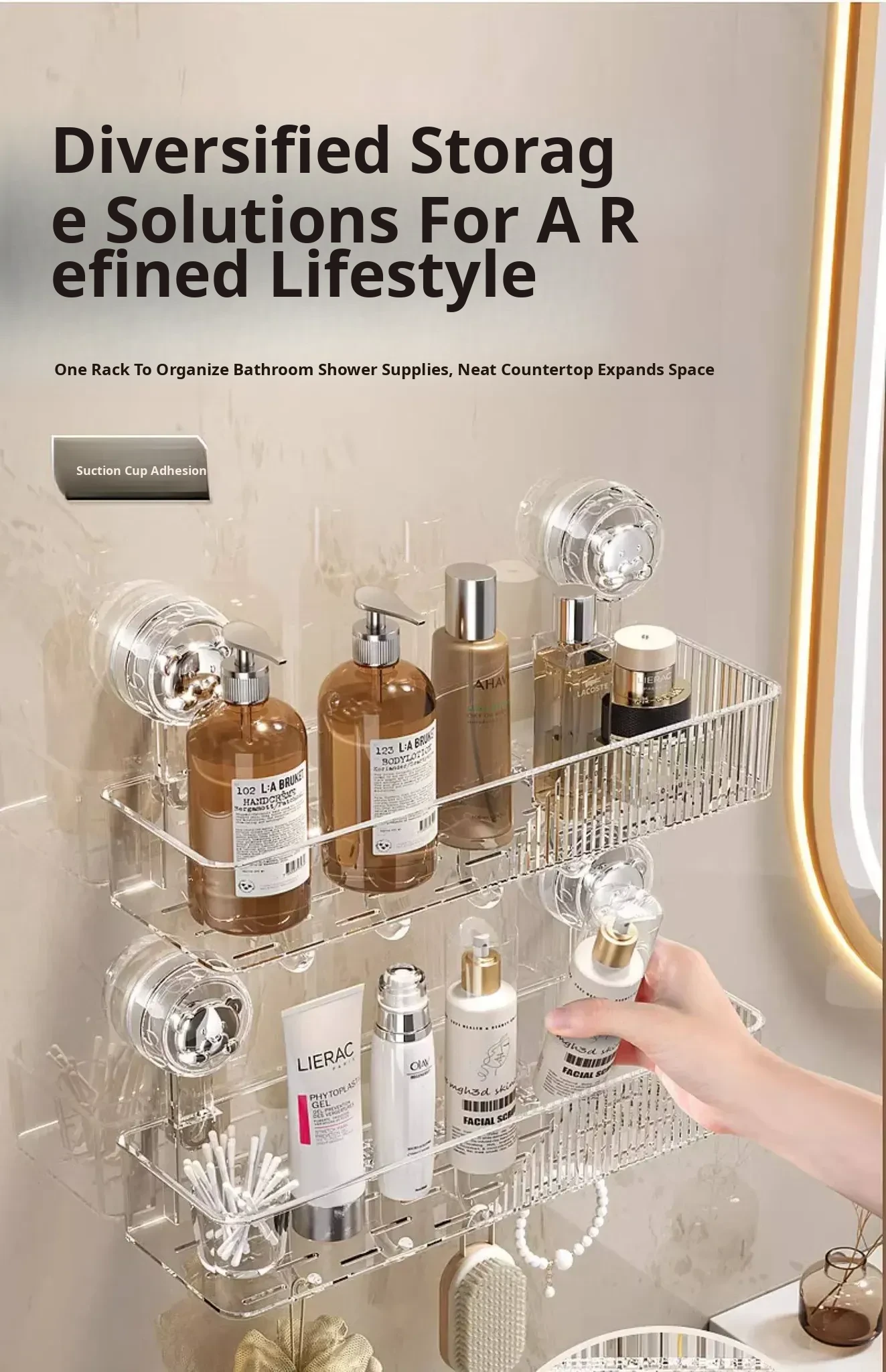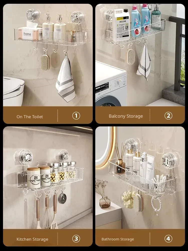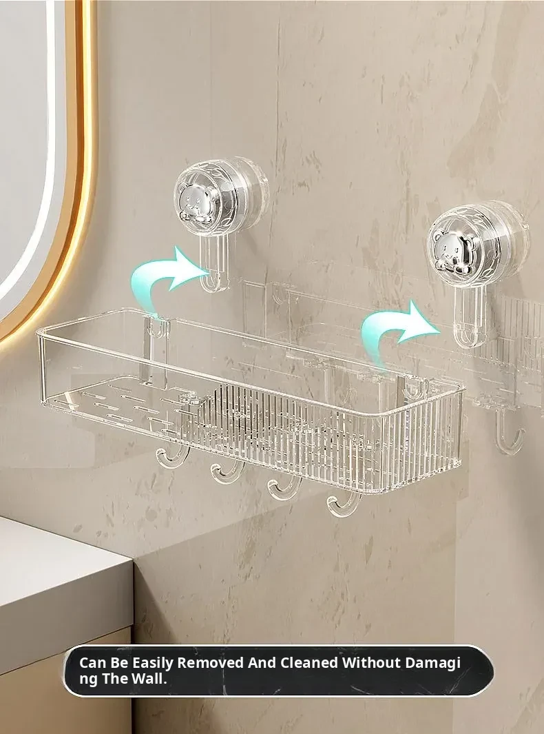 Suction Cup Bathroom Storage Rack - No Drilling Required, Wall-Mounted Organizer for Washbasin and Toilet - Perfect for Space-Saving and Easy Access!