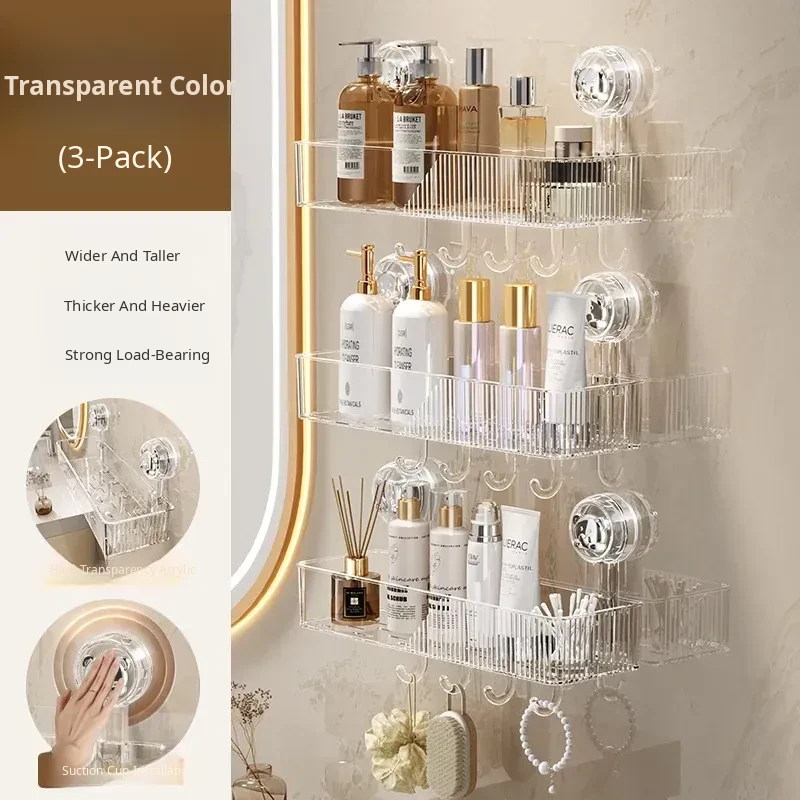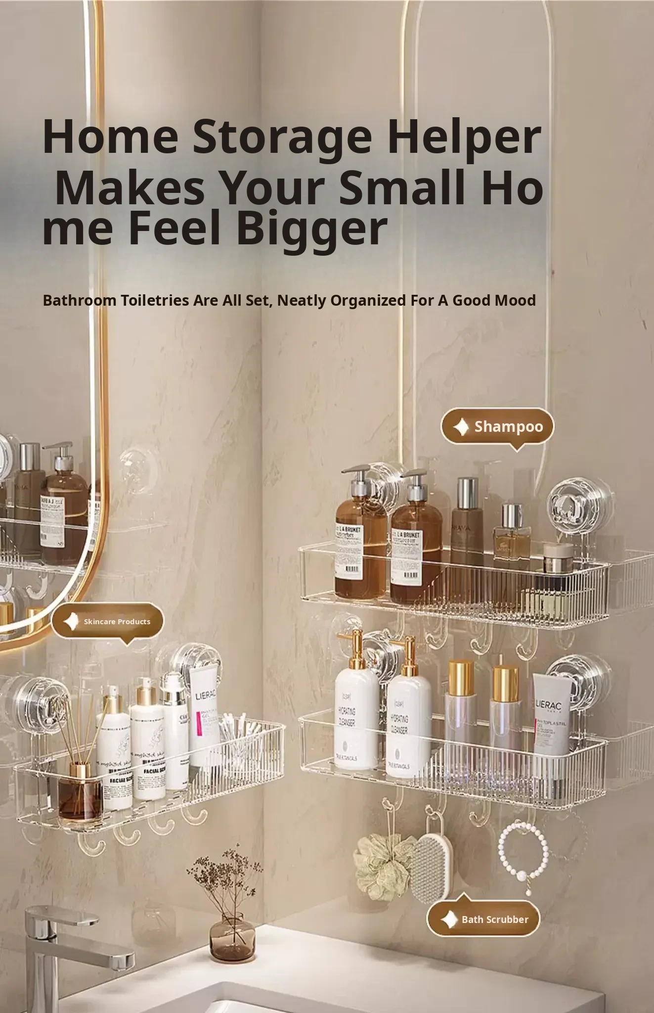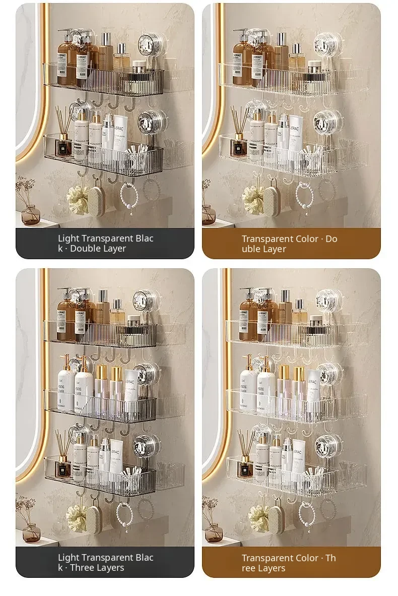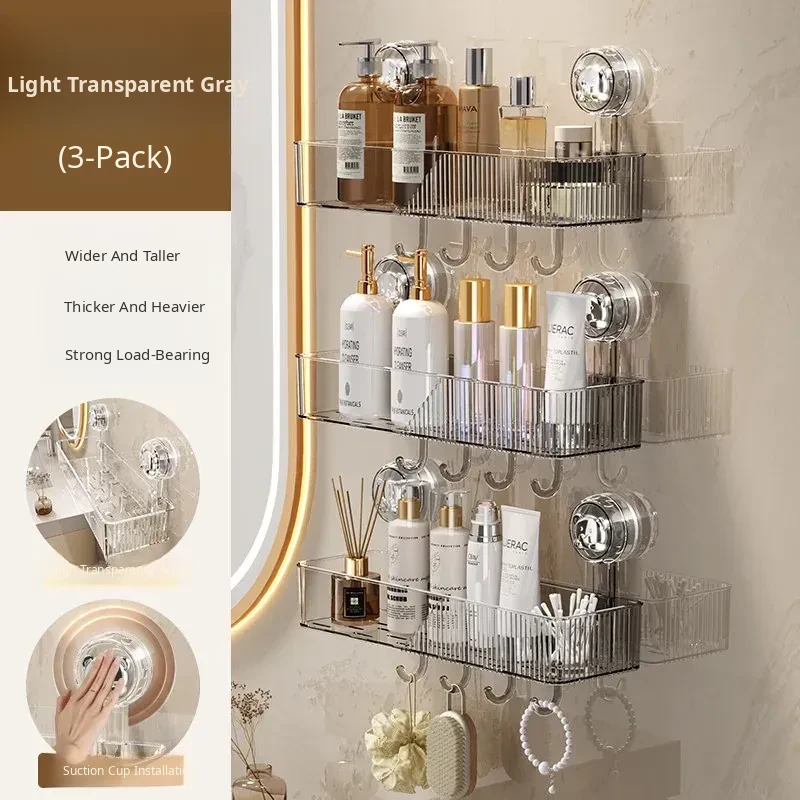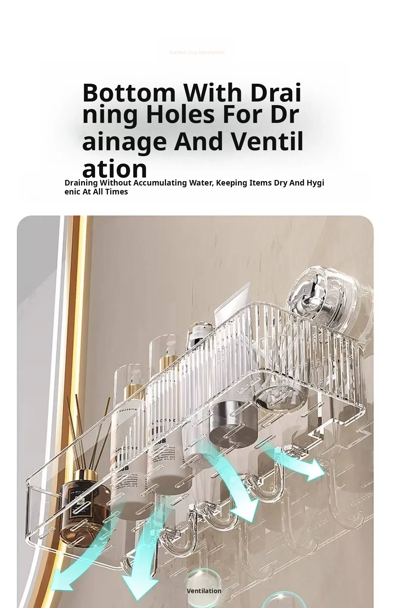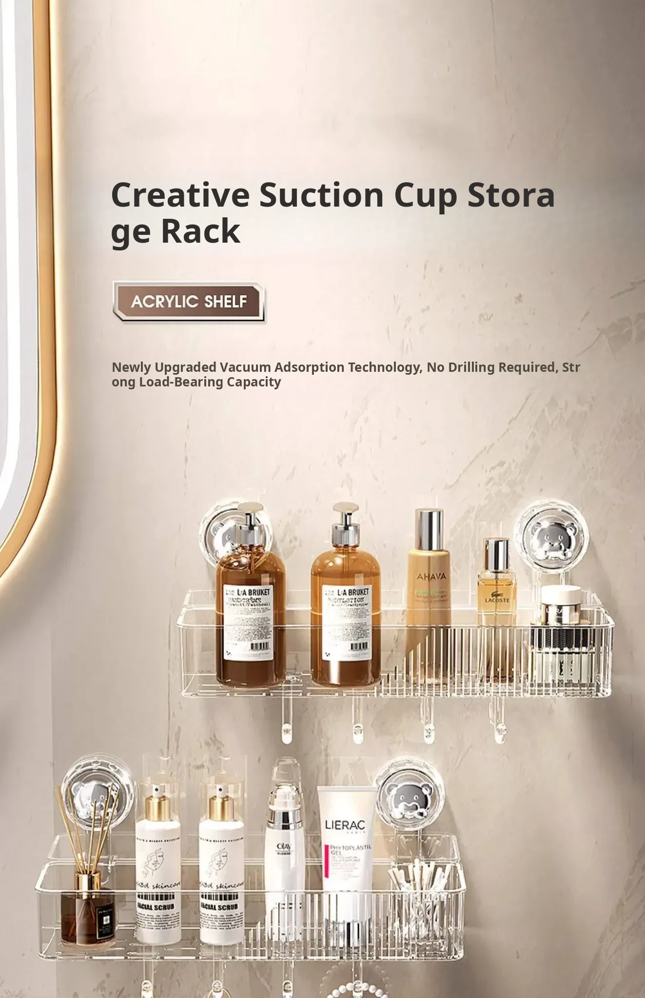 Suction Cup Bathroom Storage Rack - No Drilling Required, Wall-Mounted Organizer for Washbasin and Toilet - Perfect for Space-Saving and Easy Access!