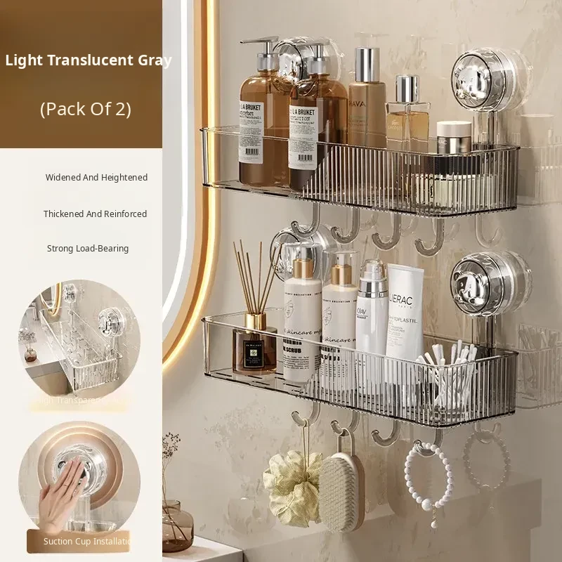 Transparent Gray [Pack of 2] Suction Cup Square Storage Rack