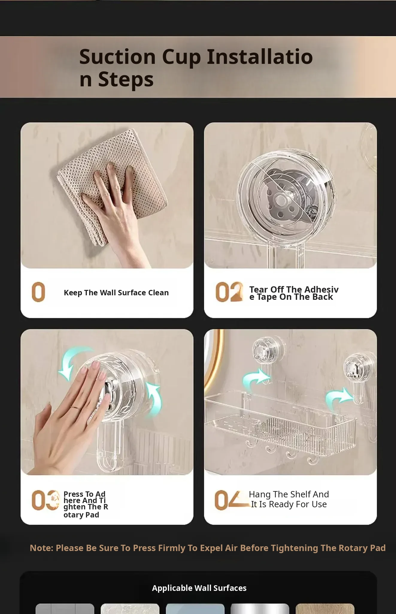 ❗ Note: "Suction Cups Can Be Used on Walls." Click to View Instructions. ⭐ Recoinended for Use on Tile Surfaces. ⭐