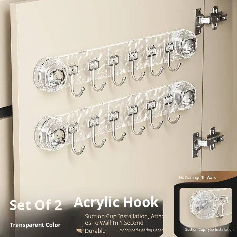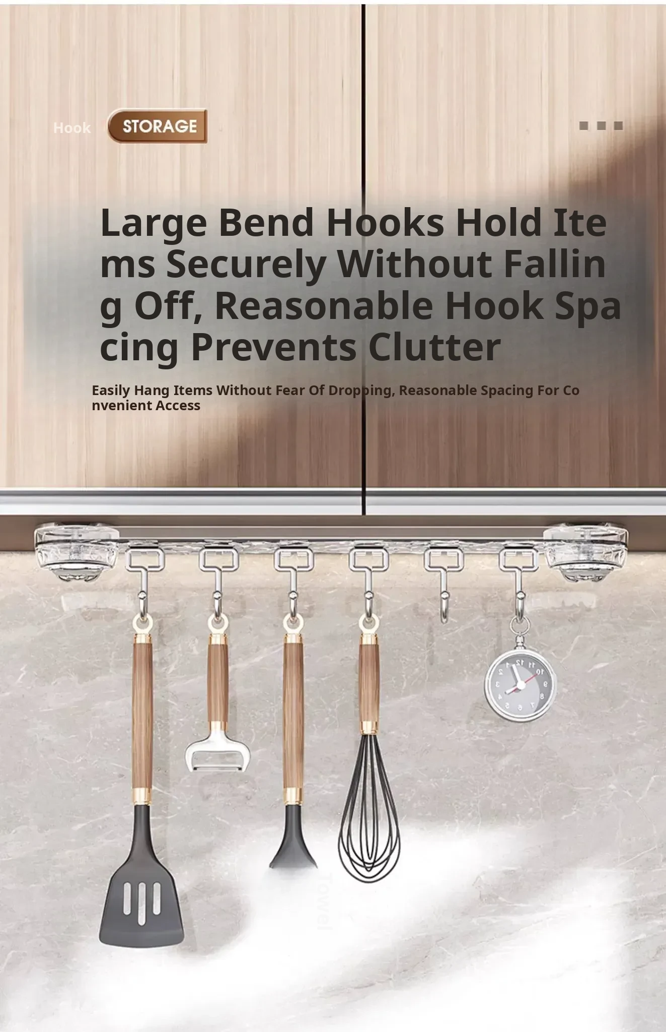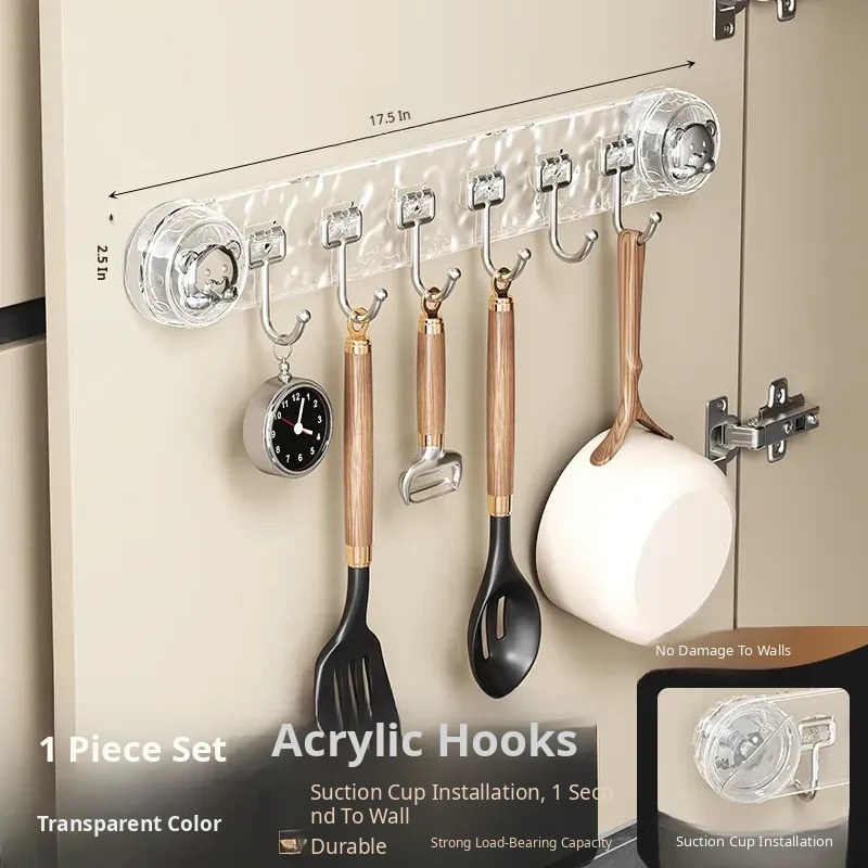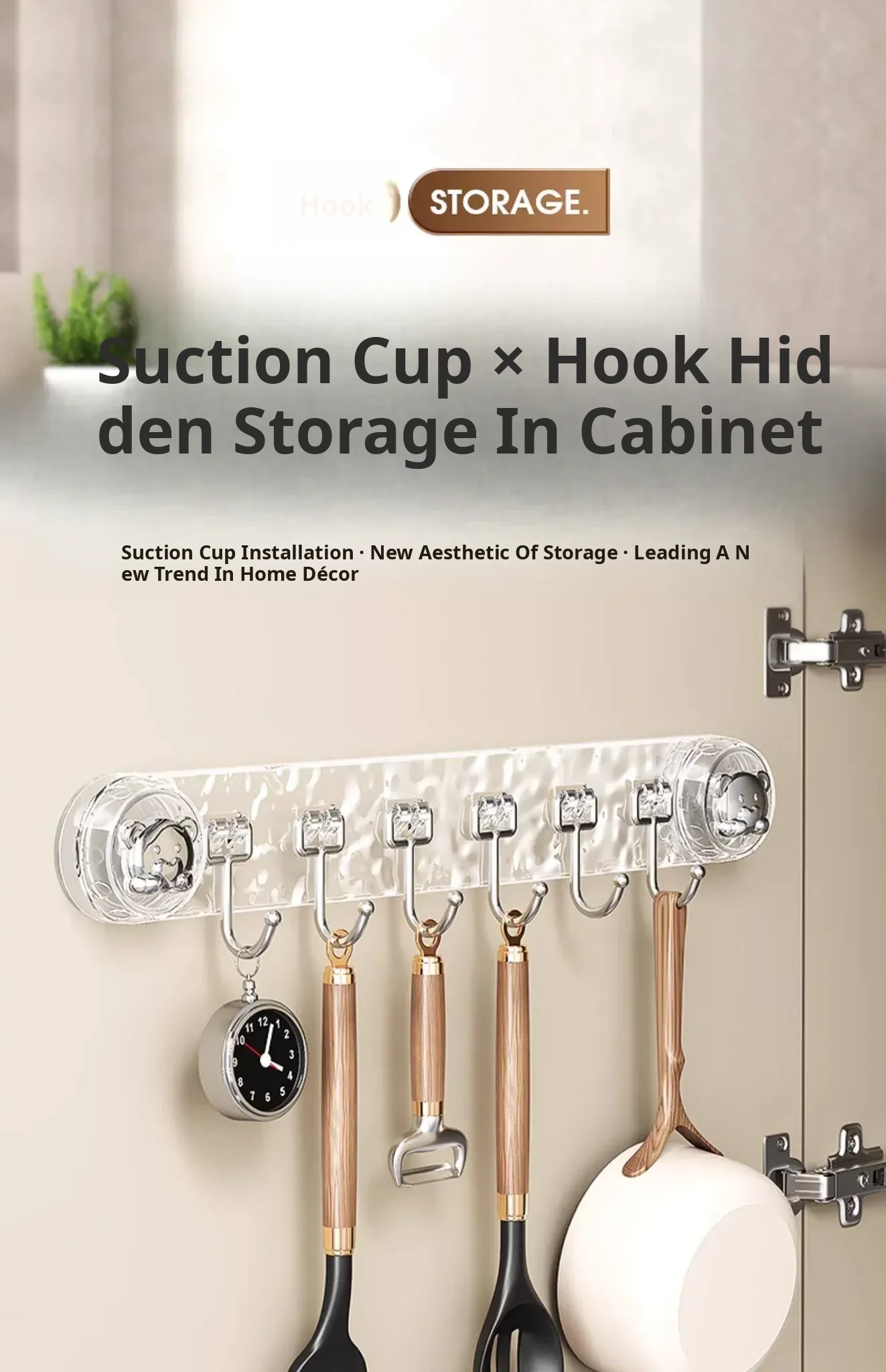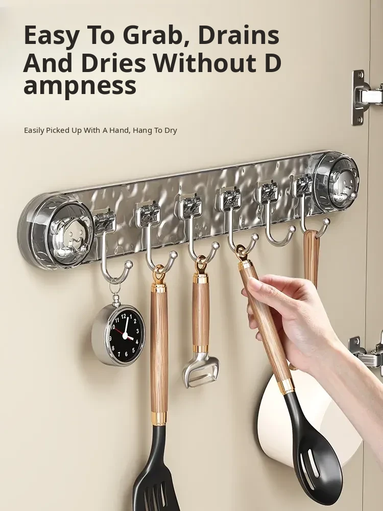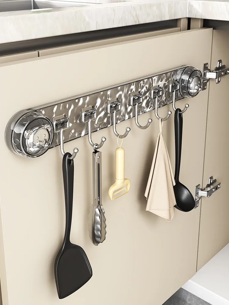 Suction Cup Kitchen Hooks - No Drill Spoon and Spatula Hanging Rack for Inside Cabinet Door - Space-Saving Storage Organizer