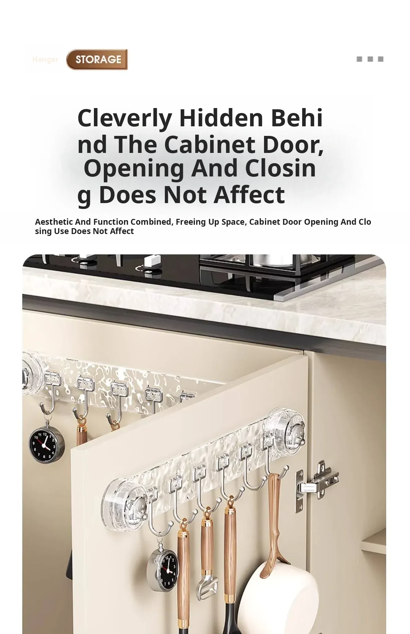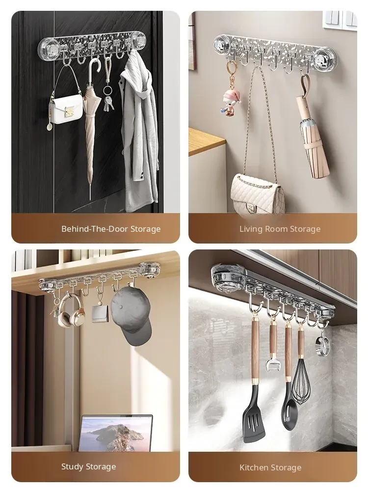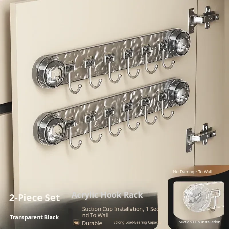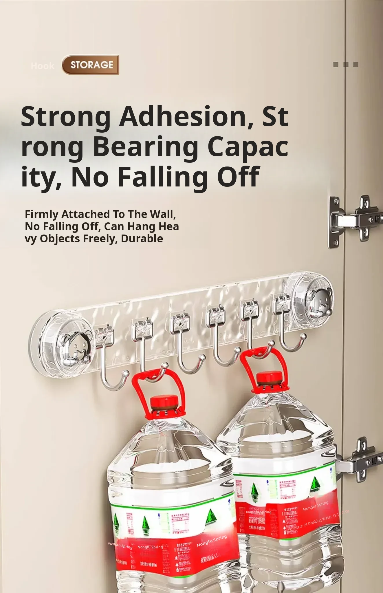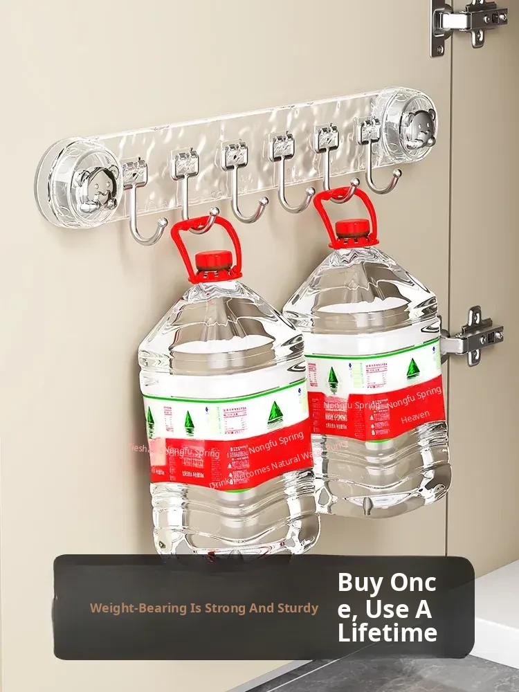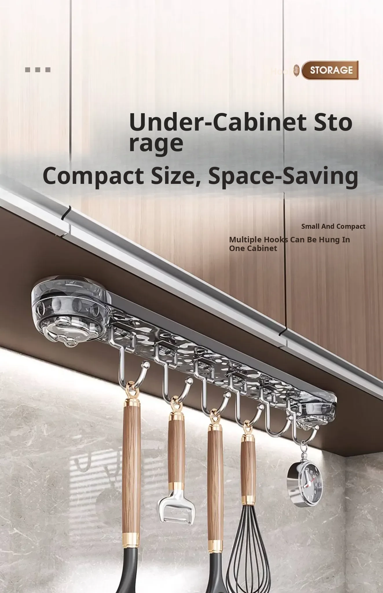 Suction Cup Kitchen Hooks - No Drill Spoon and Spatula Hanging Rack for Inside Cabinet Door - Space-Saving Storage Organizer