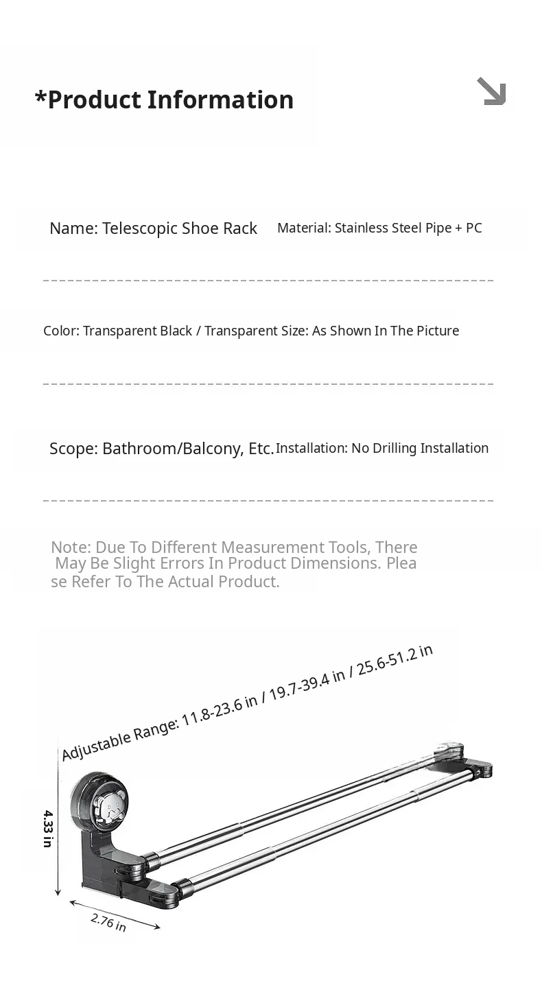Transparent Black●Suction Cup Double Pole 25.59in-51.18in [Can Hang 9 Pairs]