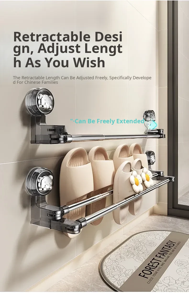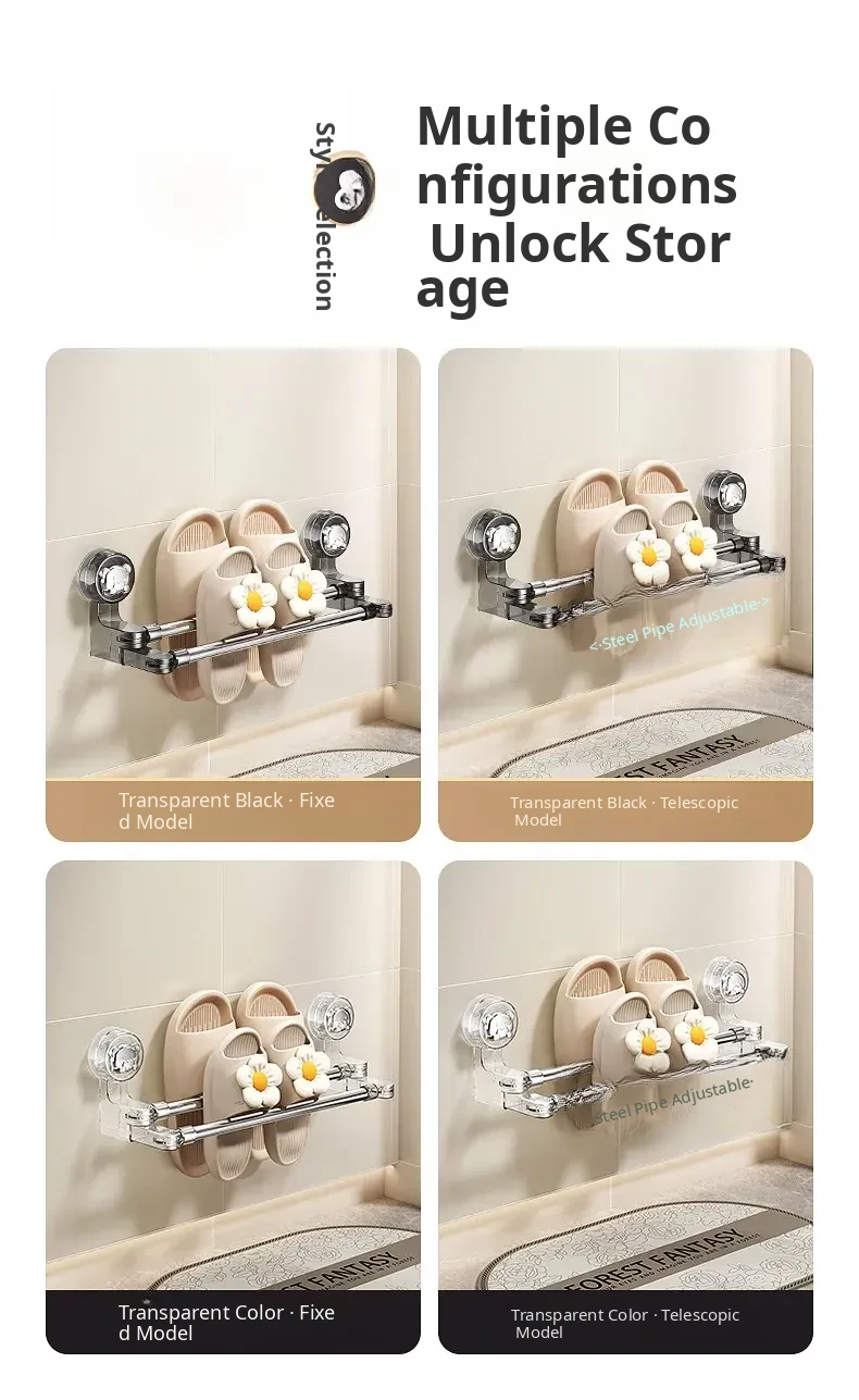 Transparent Black●Suction Cup Double Pole 11.81in-23.62in [Can Hang 4 Pairs]